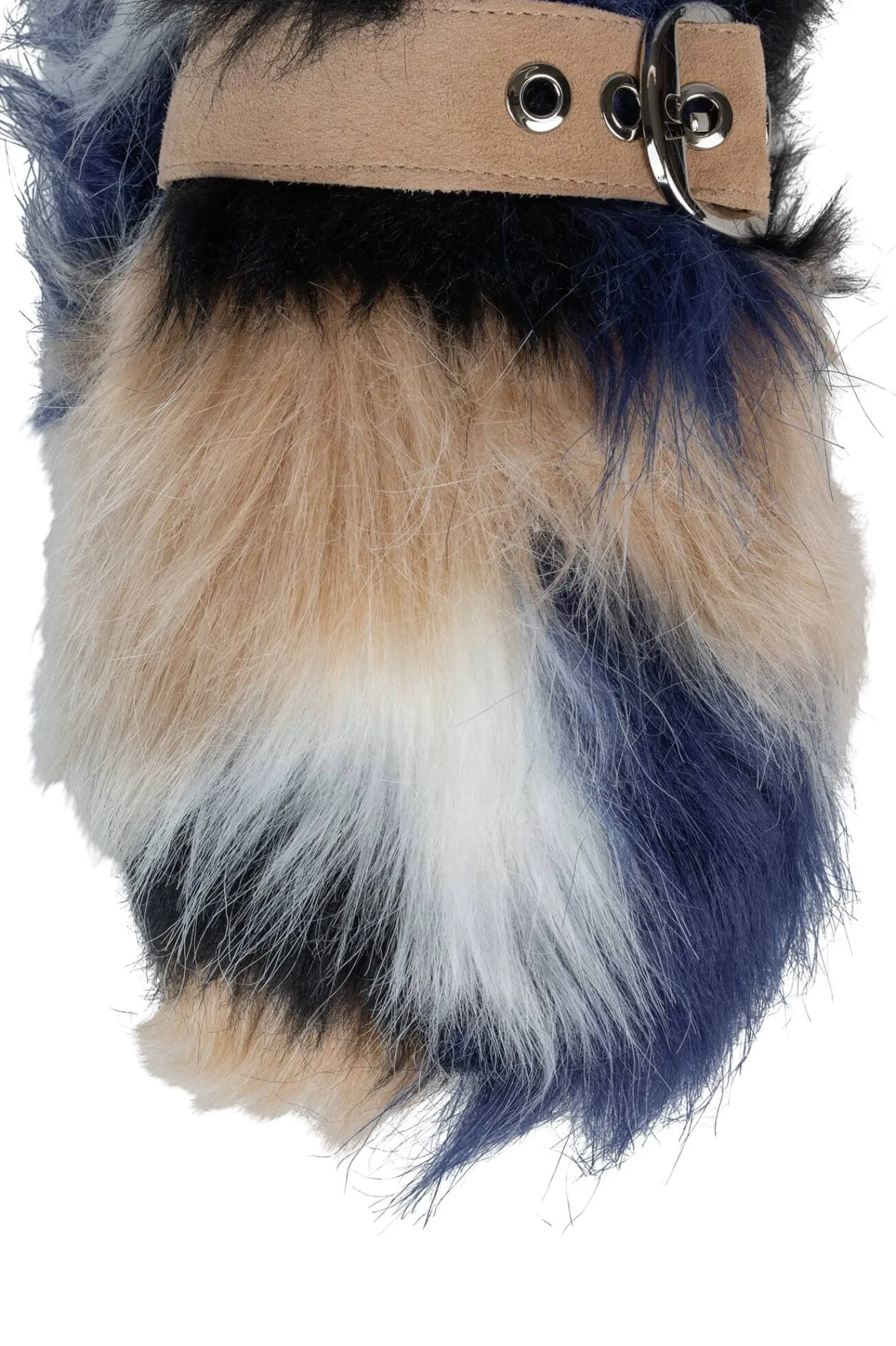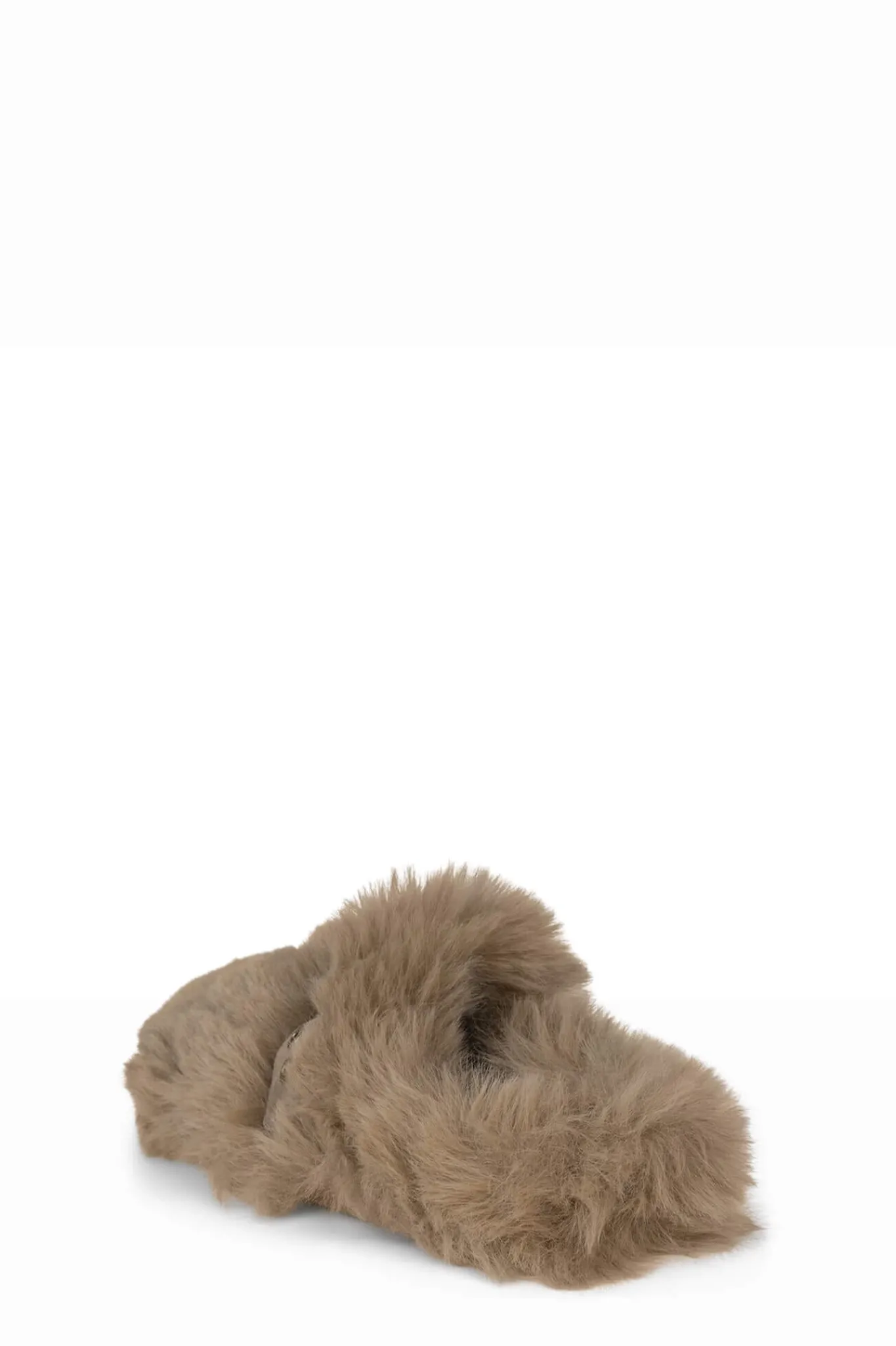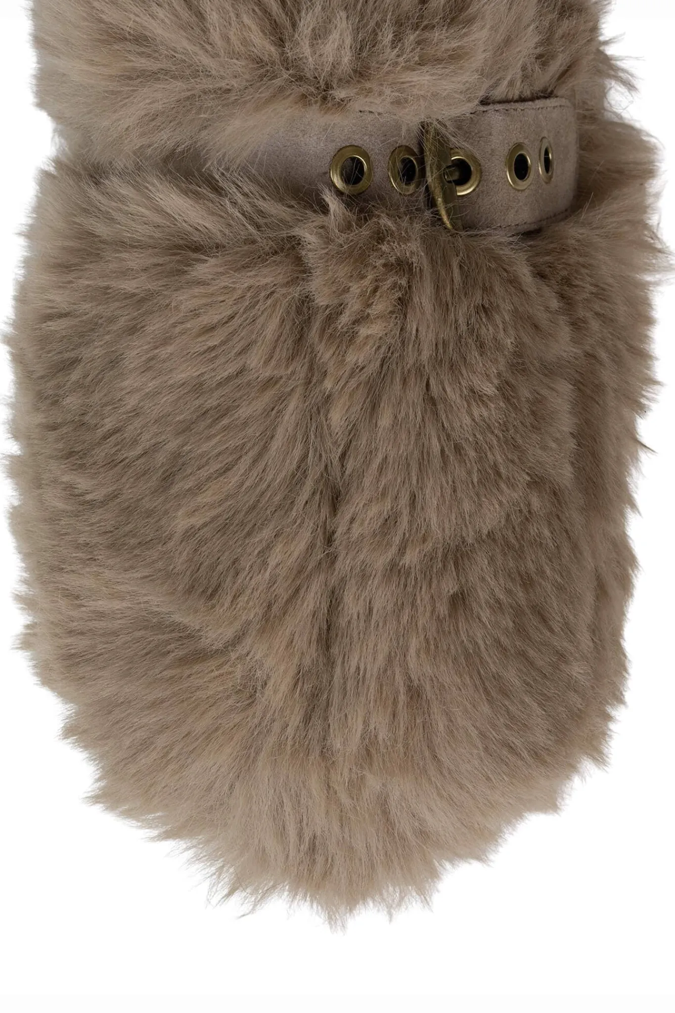 Faux-fur mule slide with buckle detail