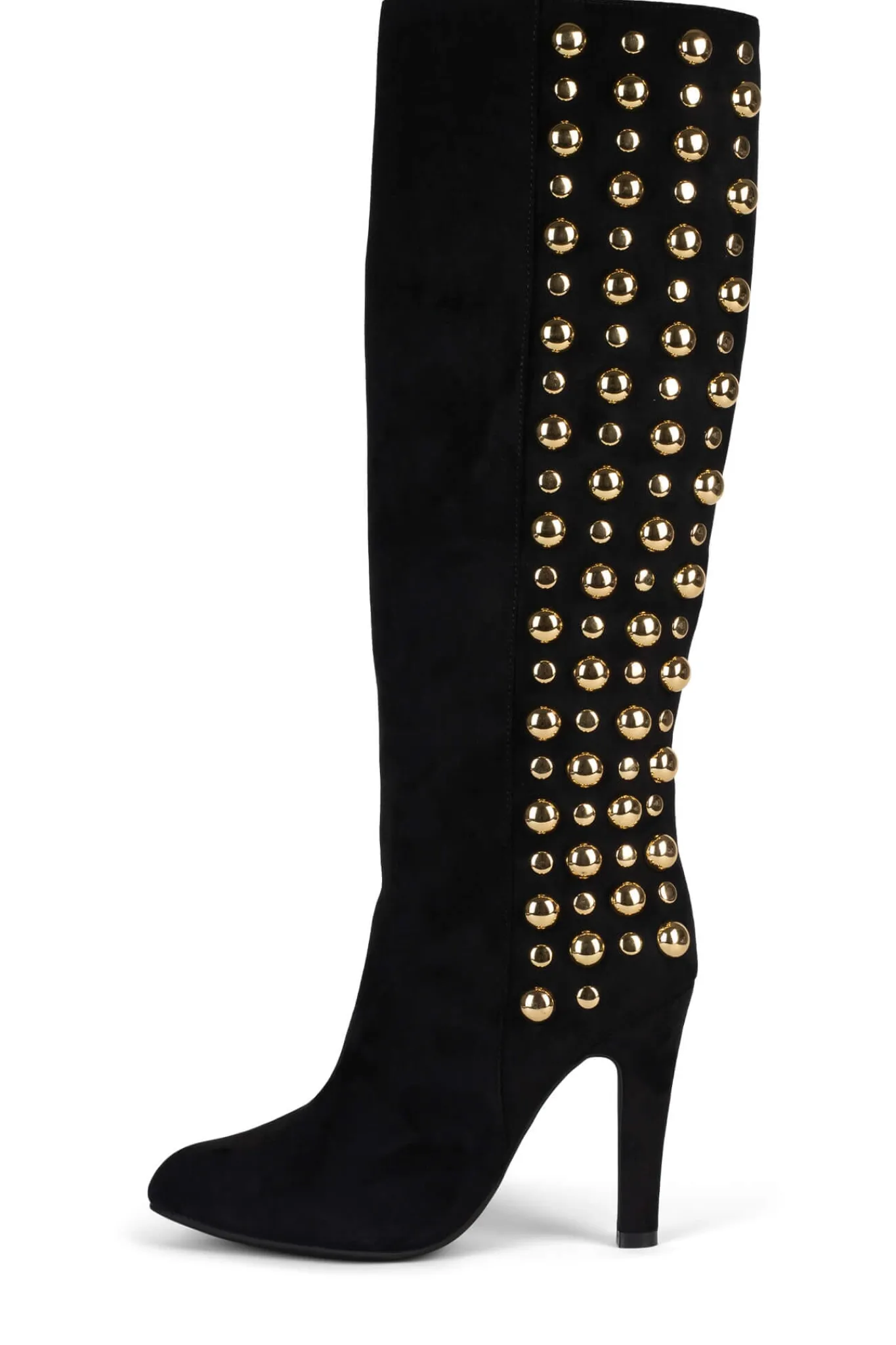 Knee-high almond-toe heeled boot with round stud detail