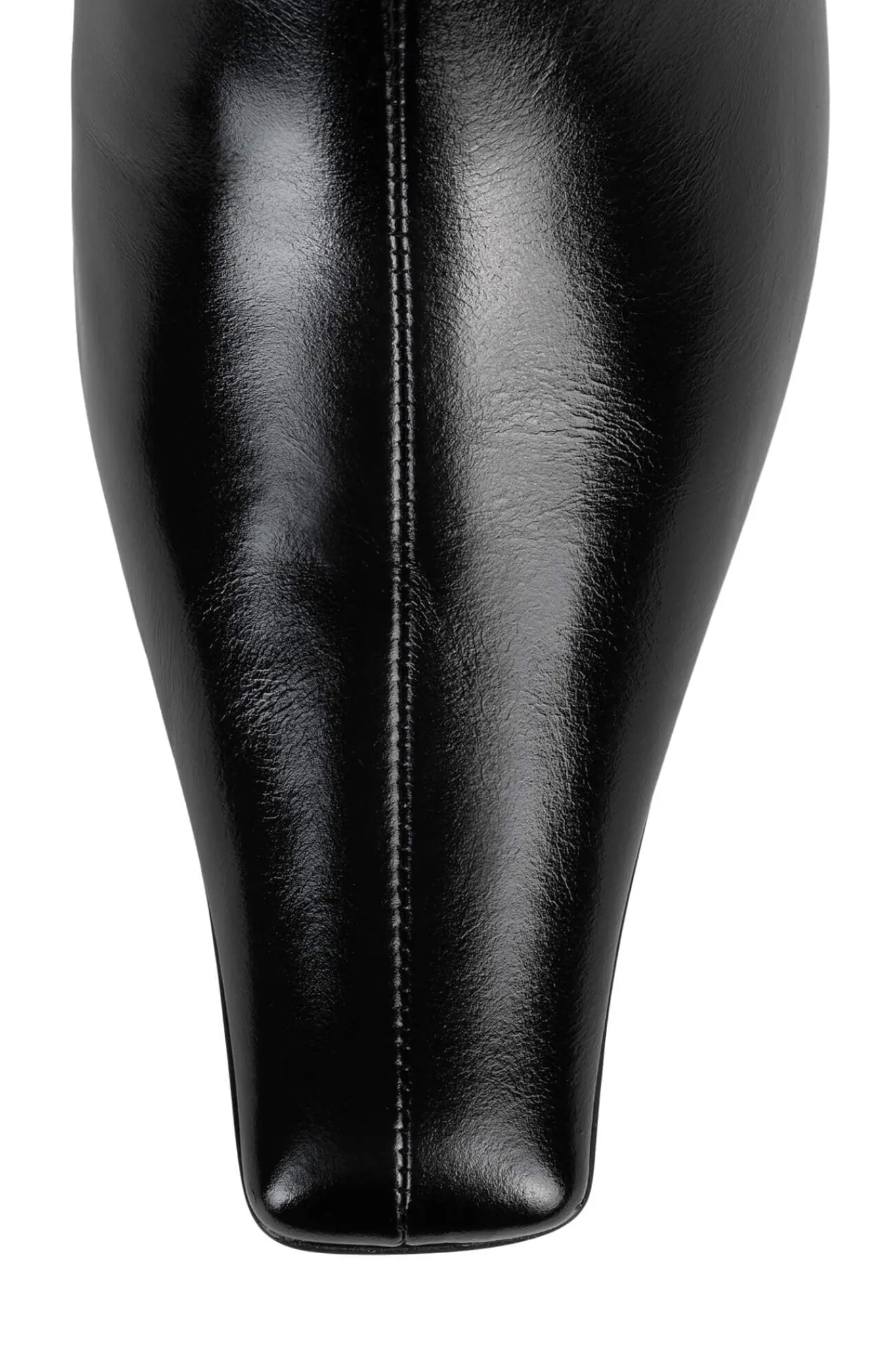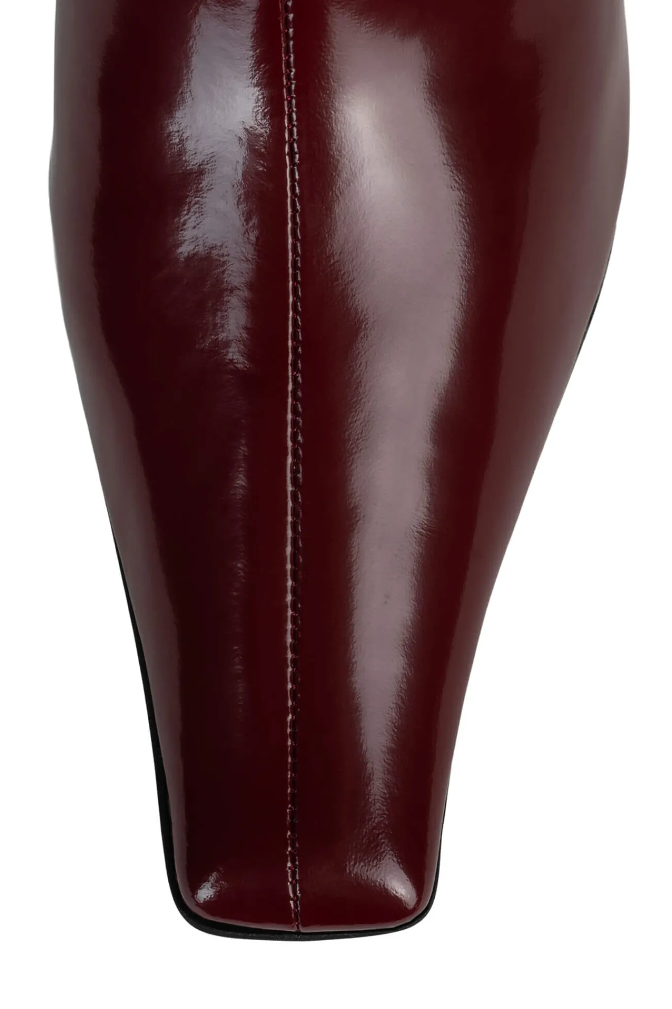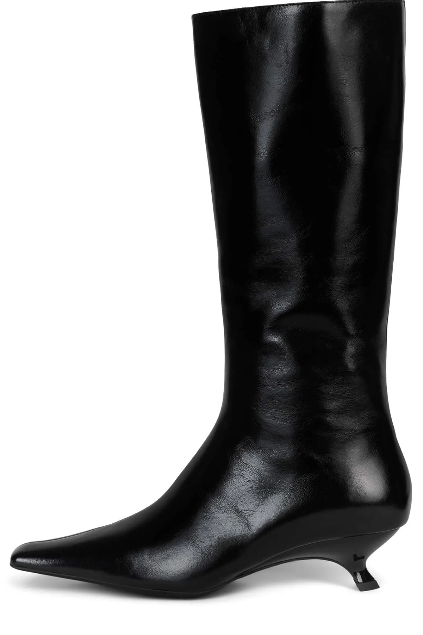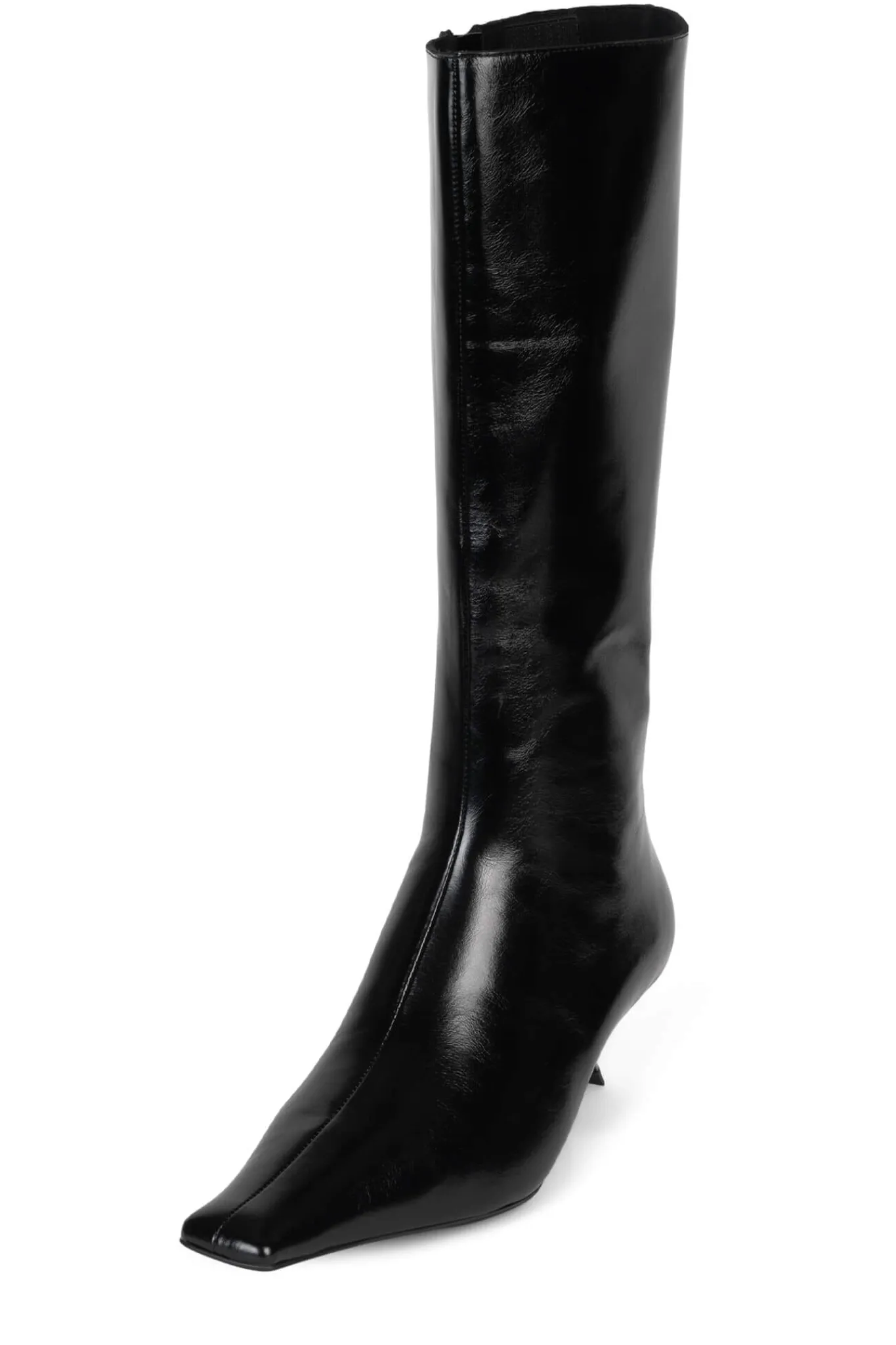 Elongated square-toe knee-high sculpted kitten-heel boot