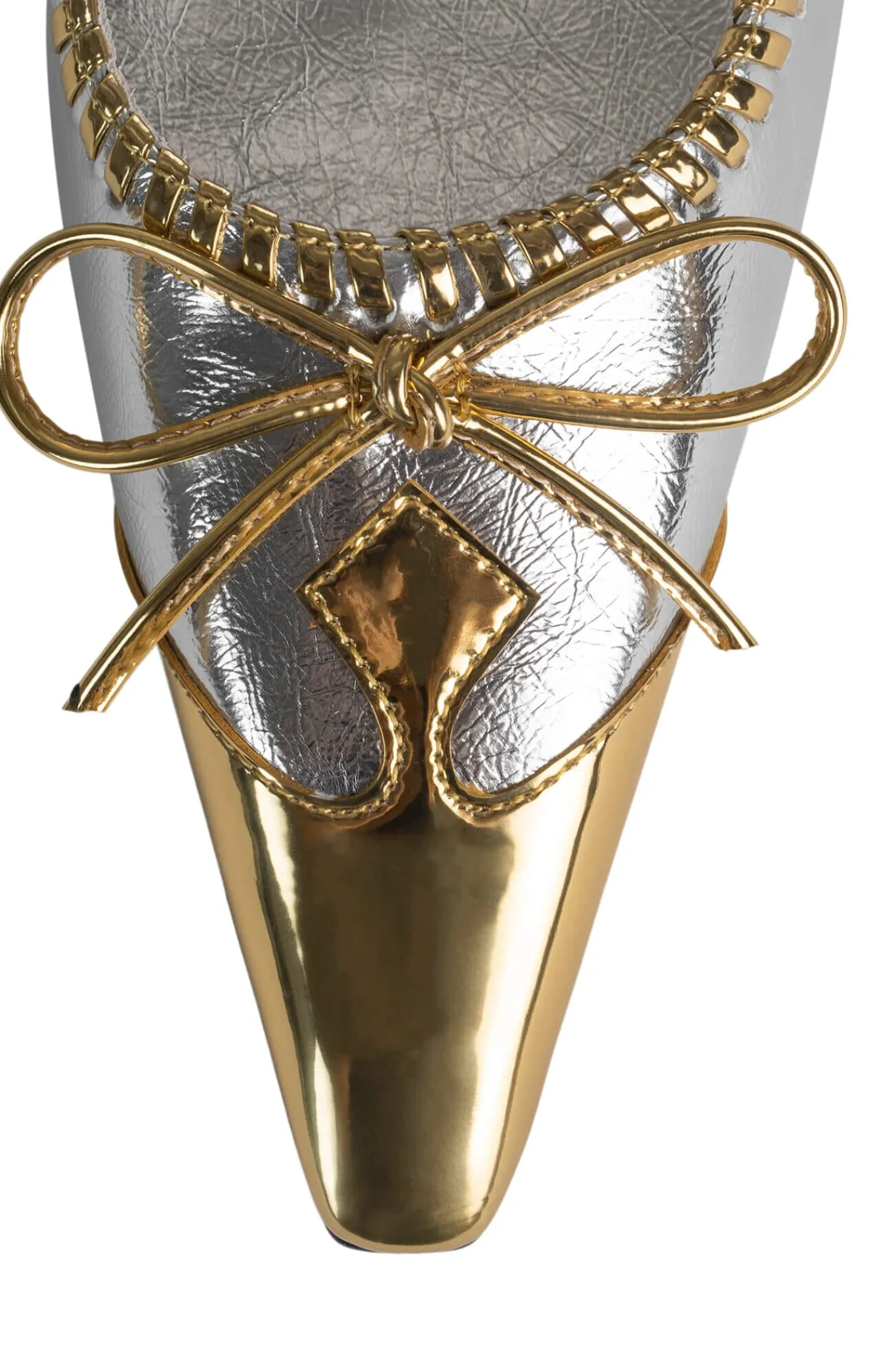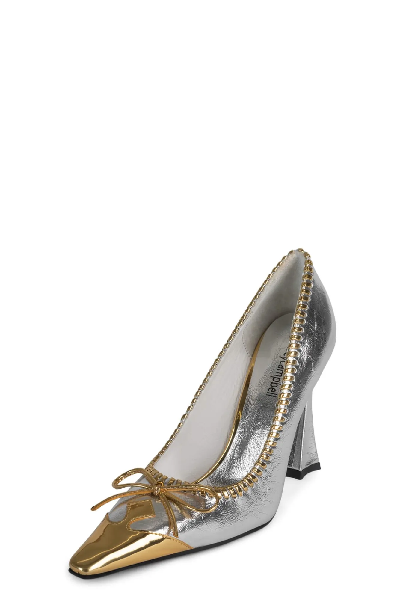 Pointed-toe sculpted pump with eyelet and bow detail