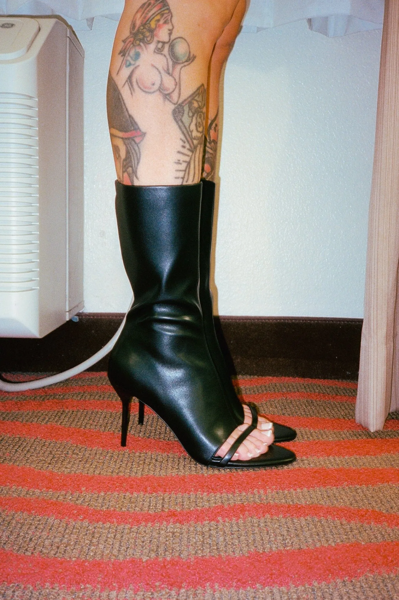 Open-toe stiletto mid-calf sock boot Fits true to sizeMeasurements taken from size 7 3.75″ Heel, 0.25″ Platform9″ Shaf…