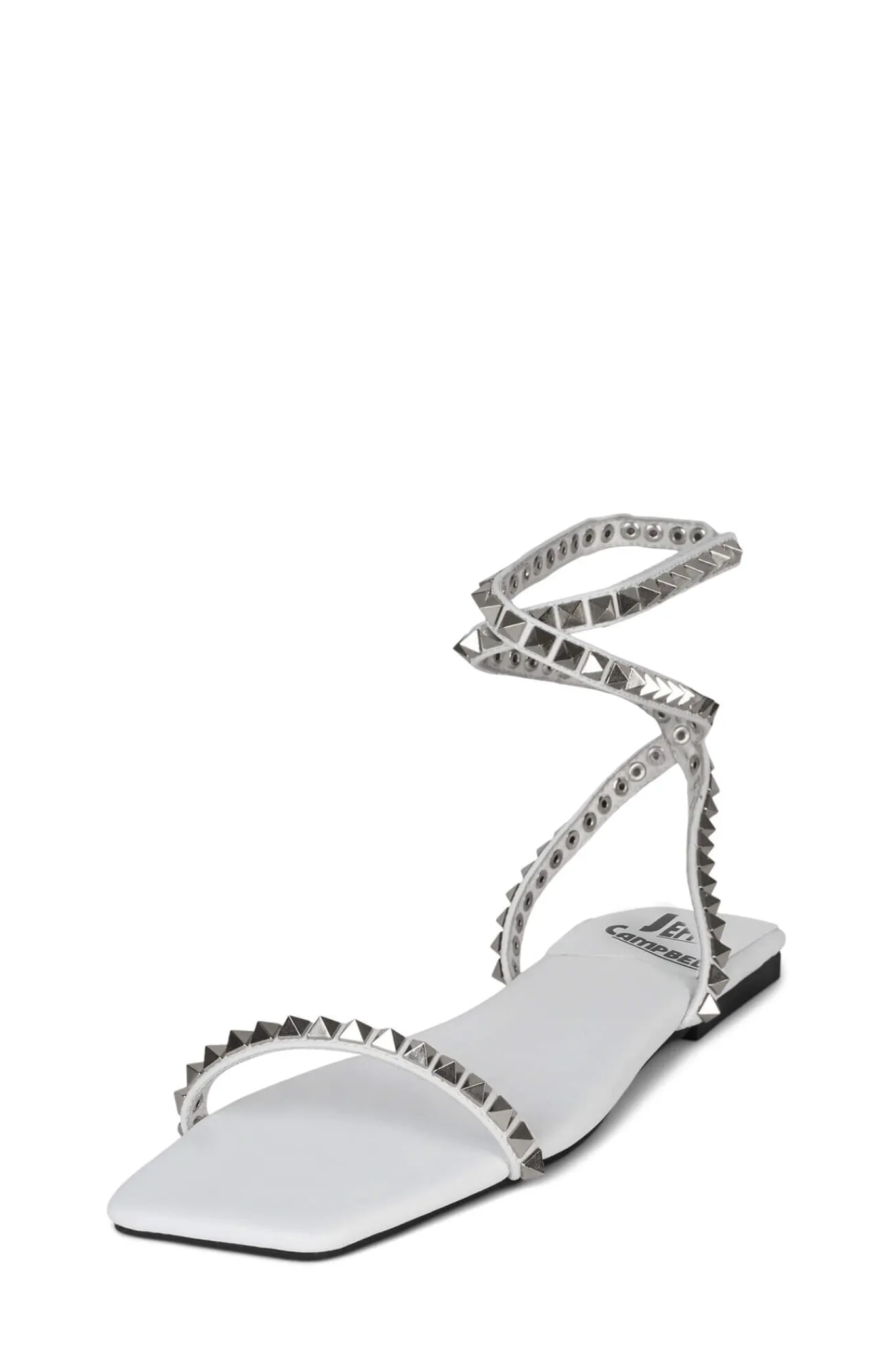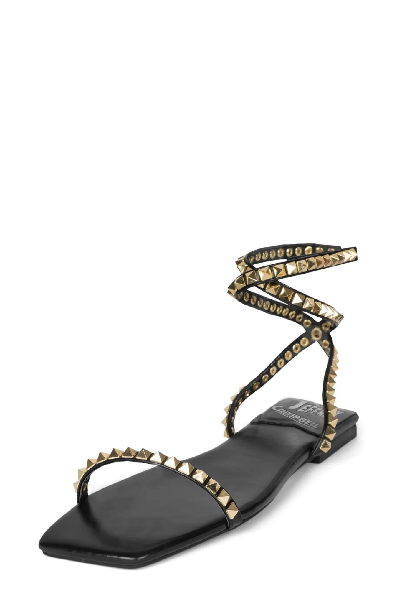 Flat sandal with stud and wrap-around ankle