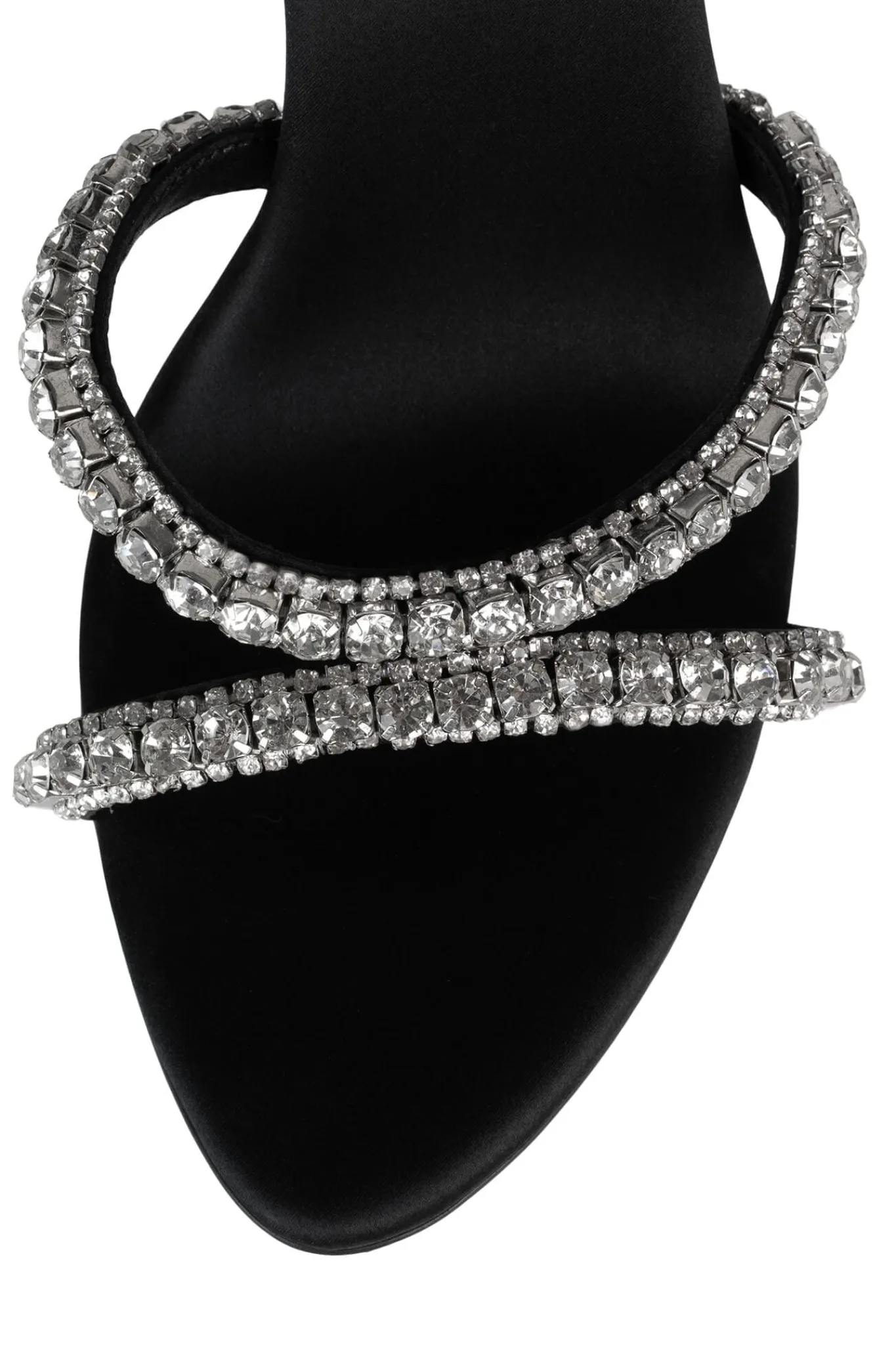 Jeweled strappy heeled sandal Fits true to sizeMeasurements taken from size 7 3.5″ Heel, 0.25″ PlatformFabric Upper, F…