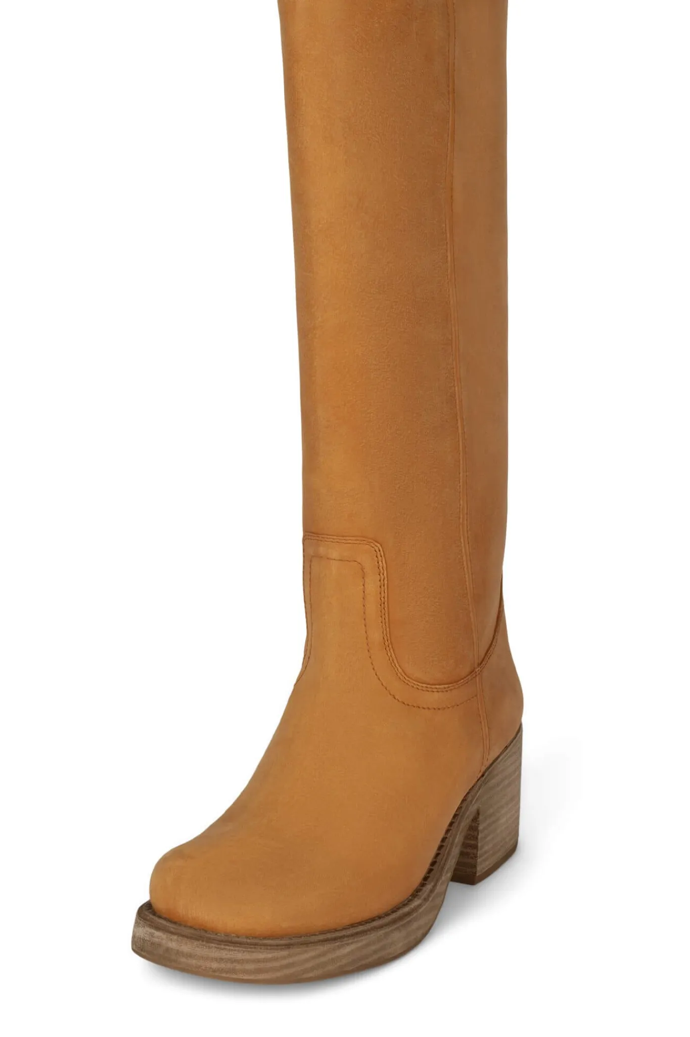 Knee-high stacked-heeled boot