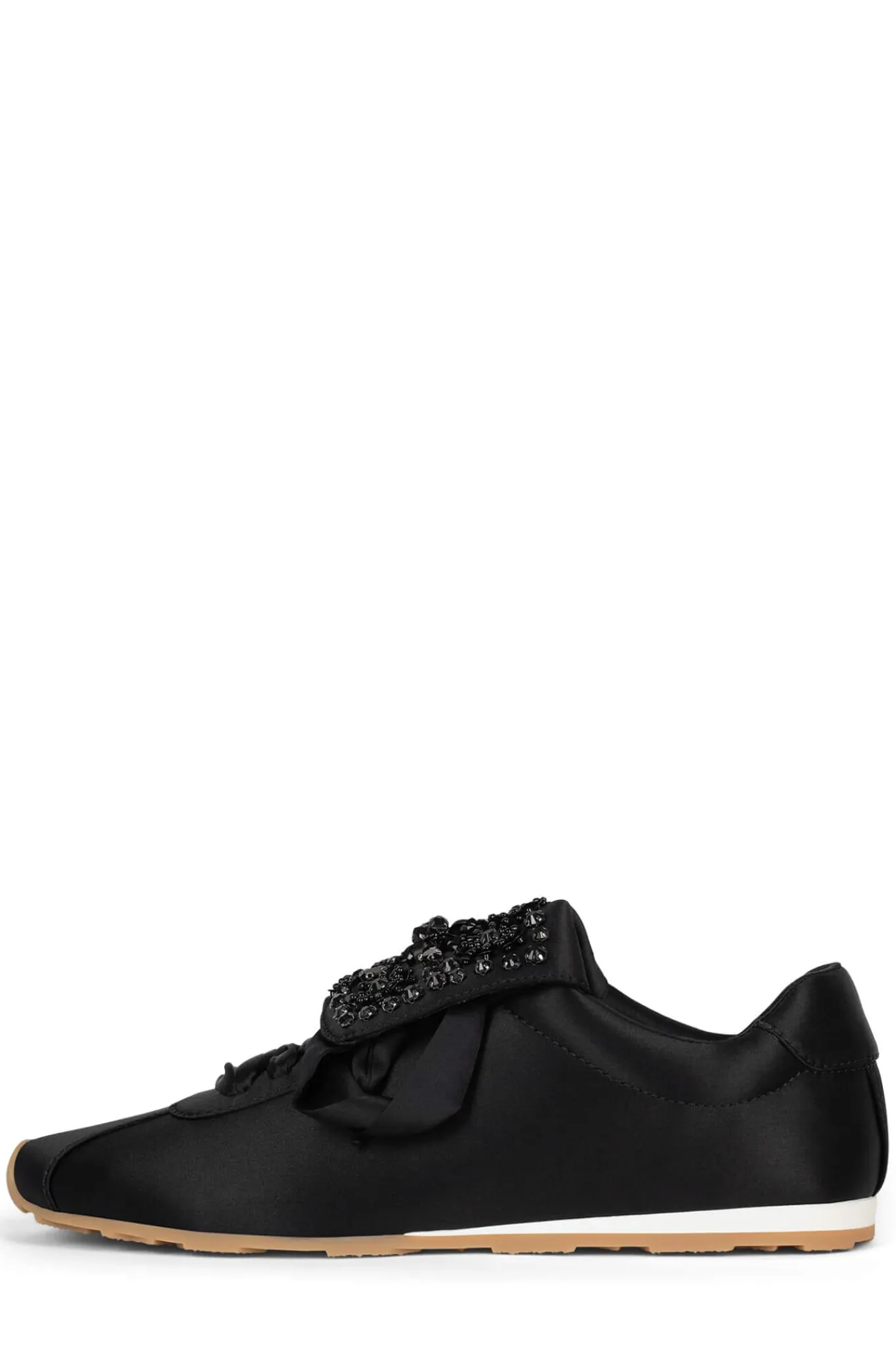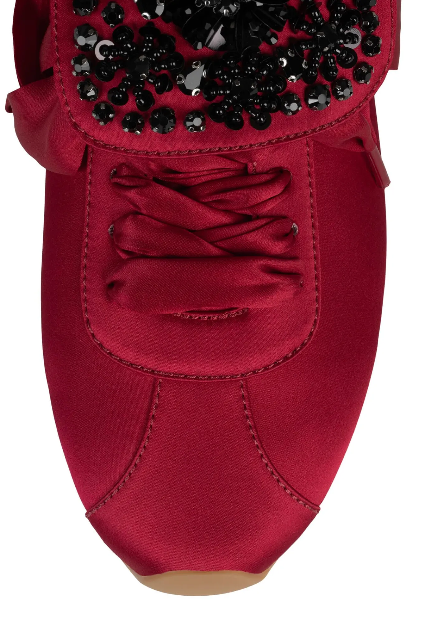 Satin sneaker with embellished fold-over tongue.Fits true to sizeMeasurements taken from size 70.5″ Heel. 0.25″ Platform…