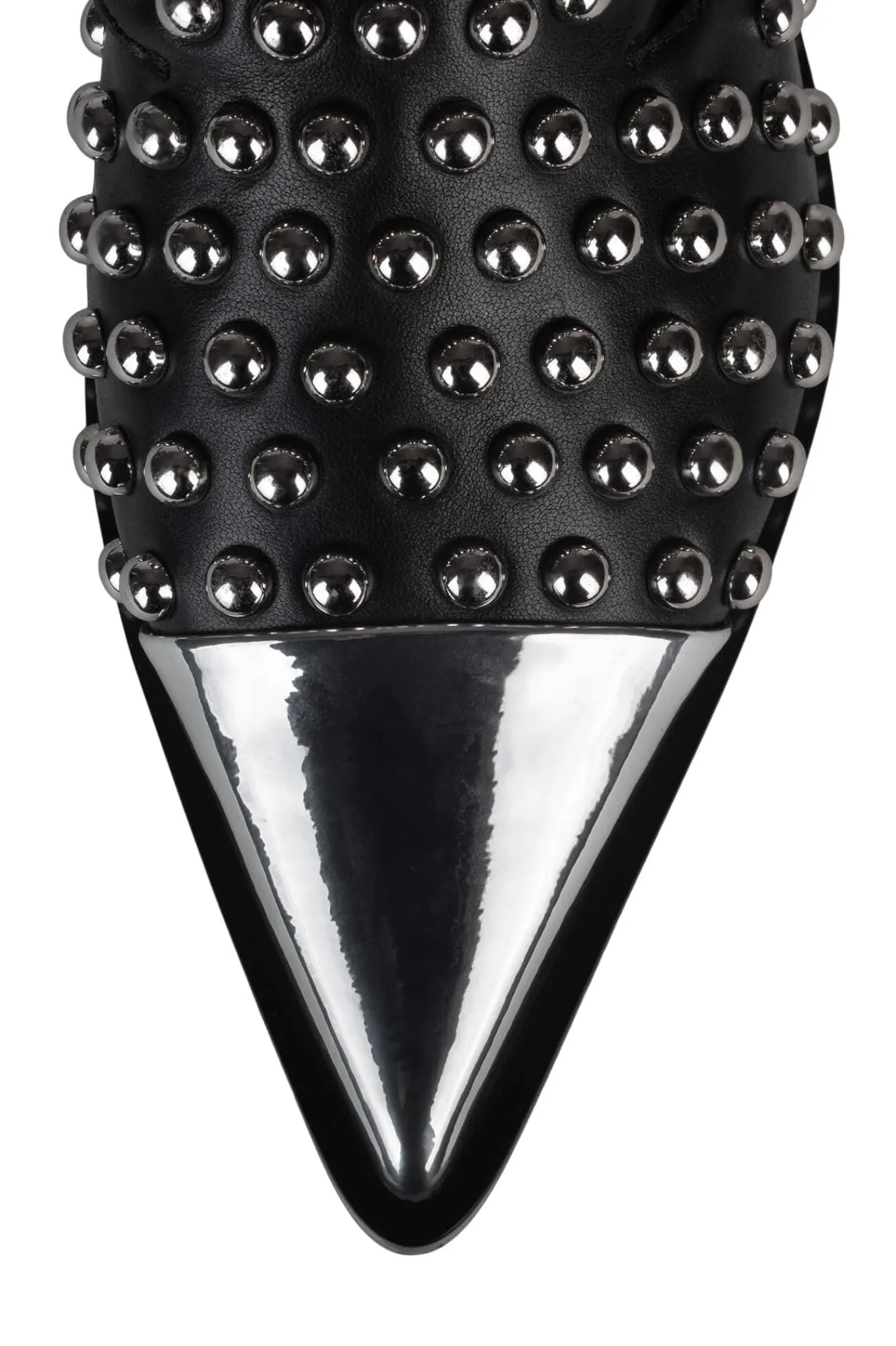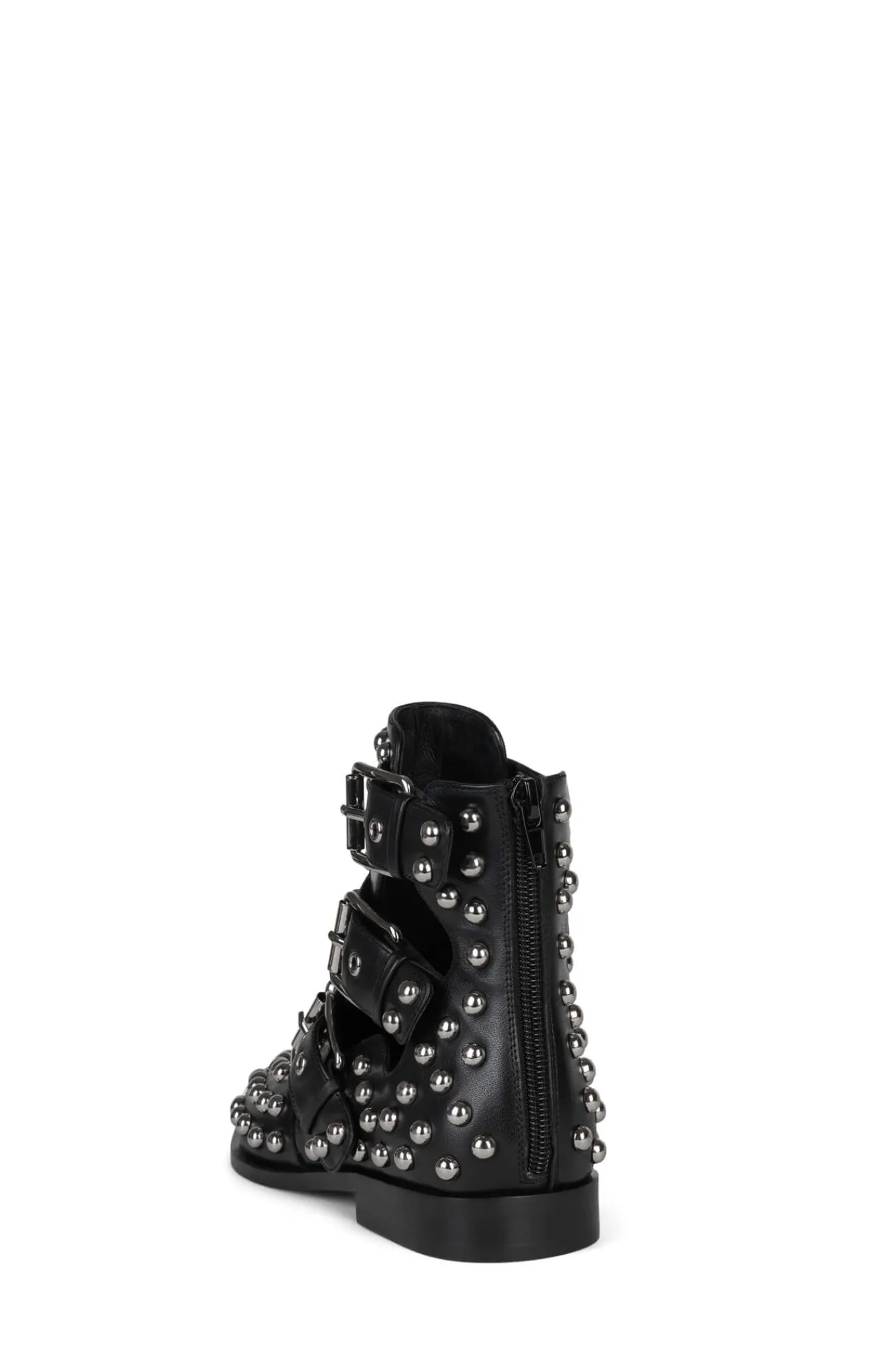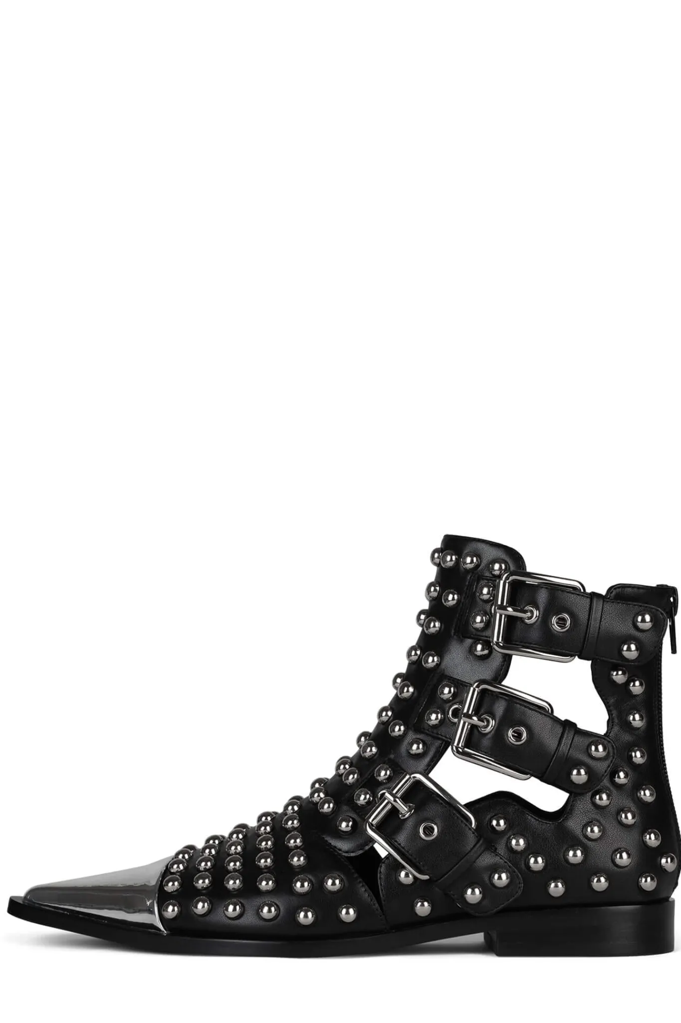 Metal-capped pointed-toe cut-out bootie with stud and buckle detail