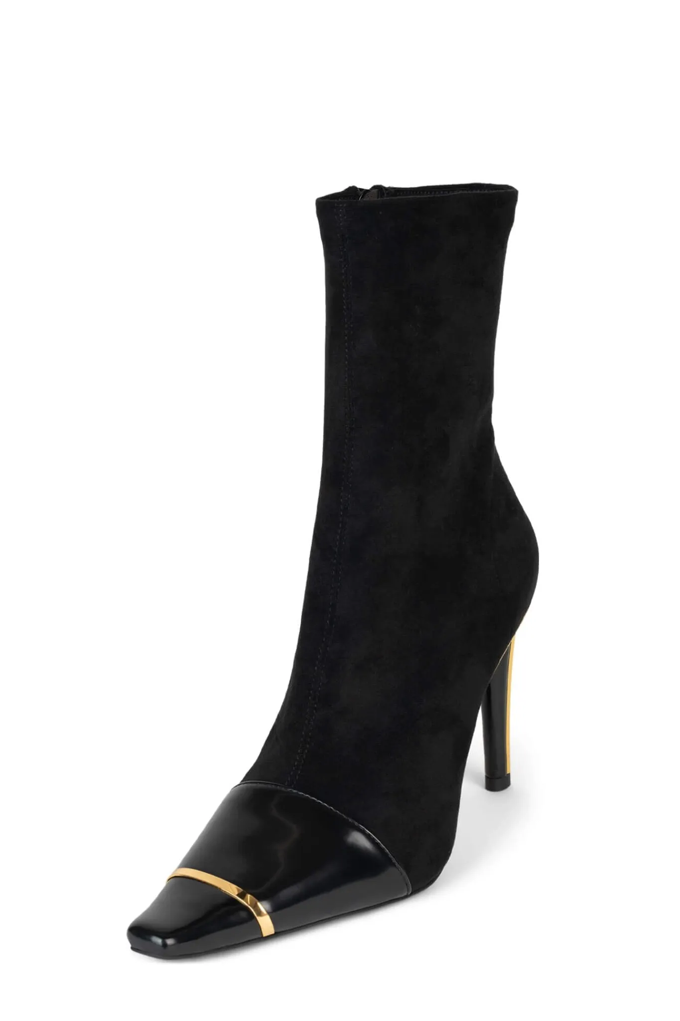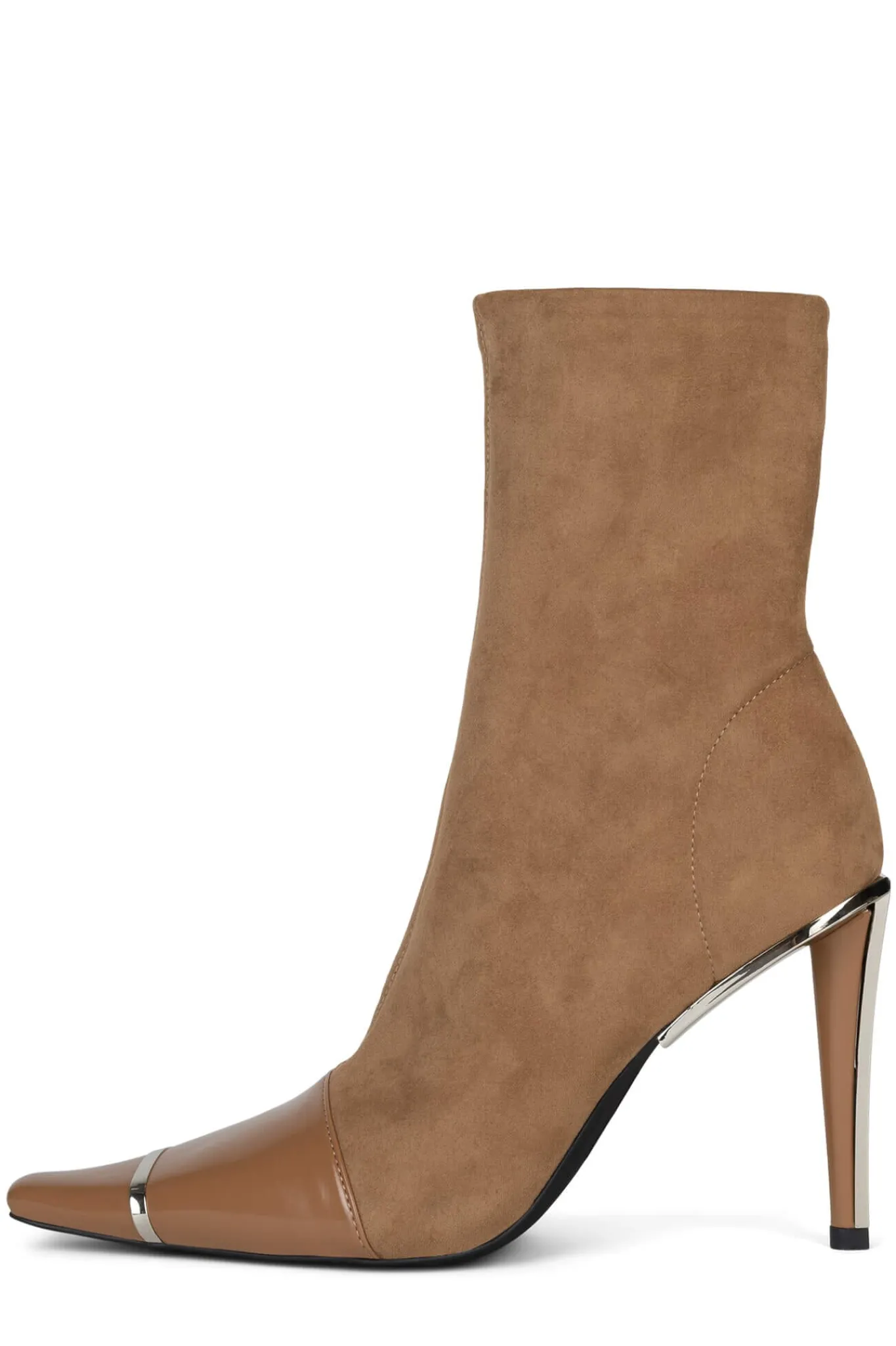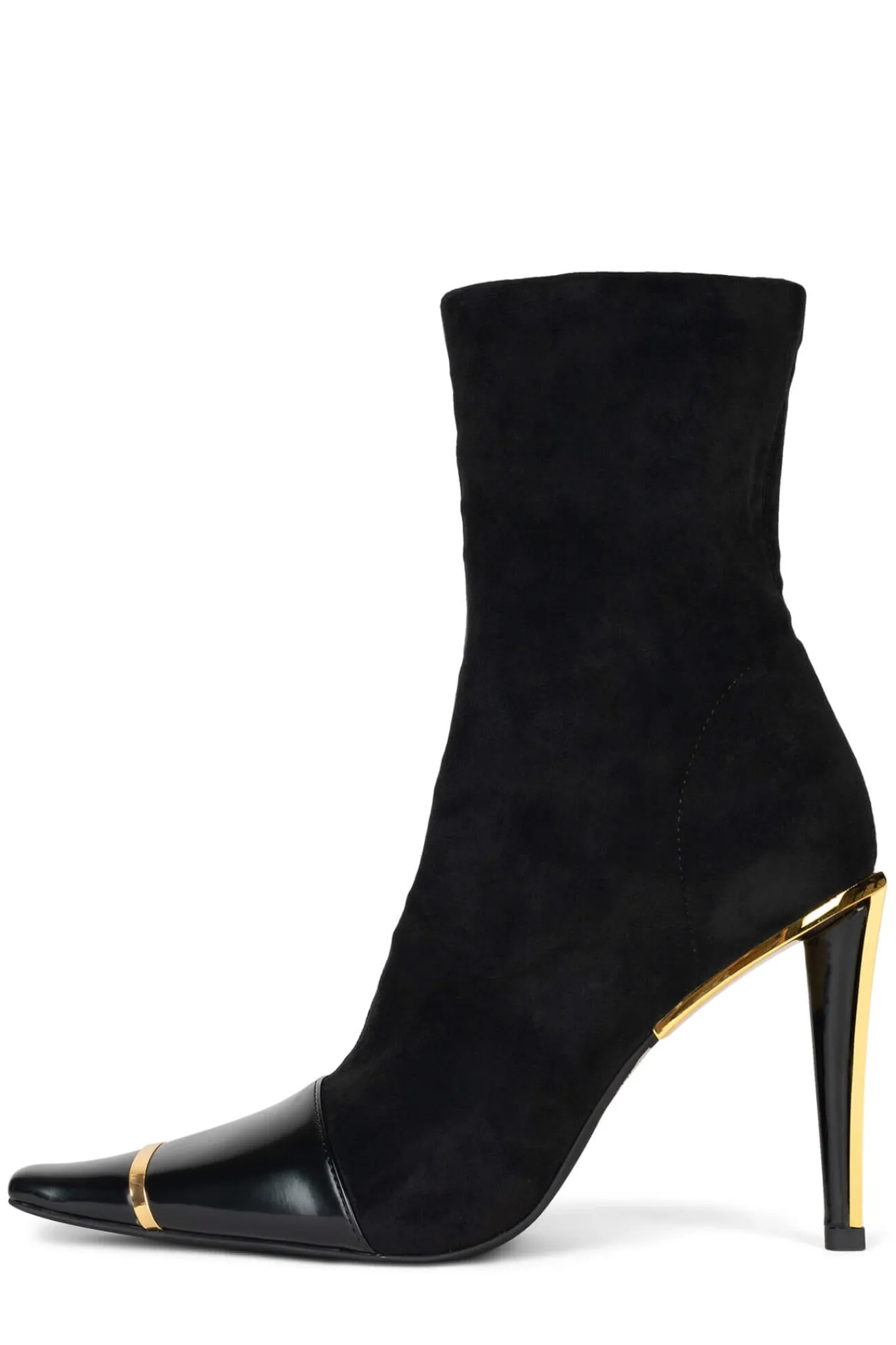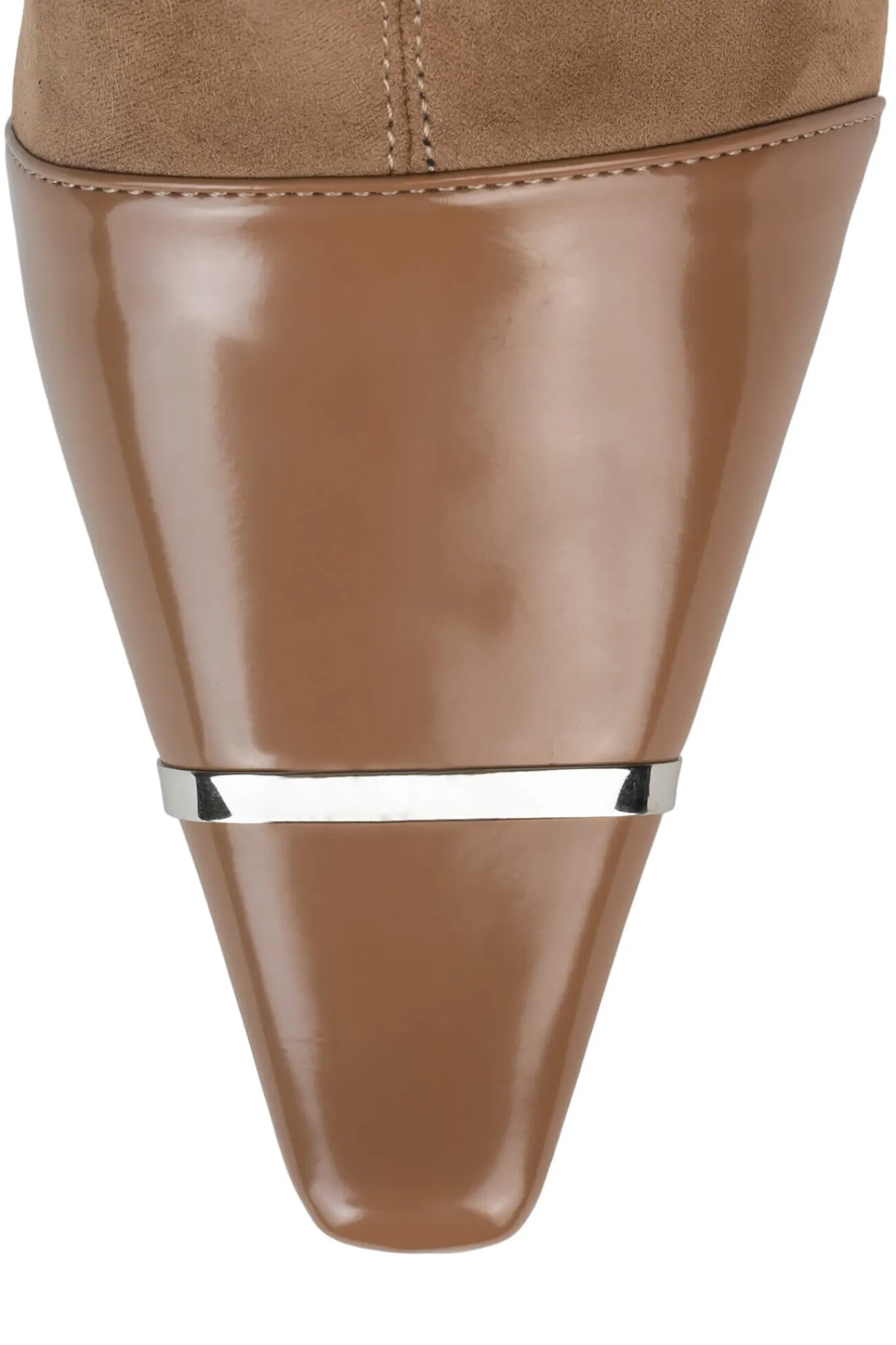 Mid-calf stiletto pointed-toe boot with metal contrast