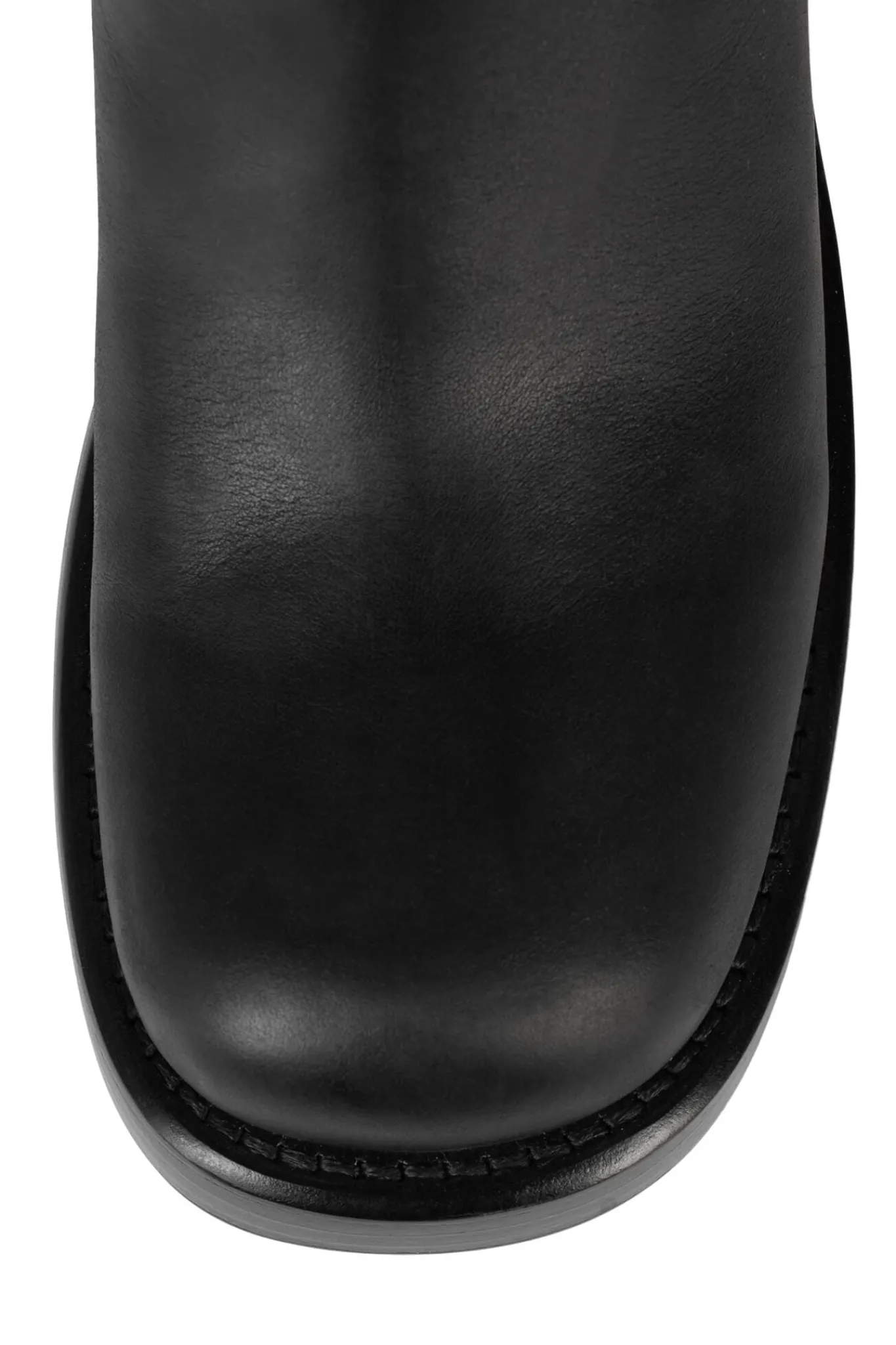Stacked heel boot; can be worn cuffed for knee high or uncuffed for over the knee