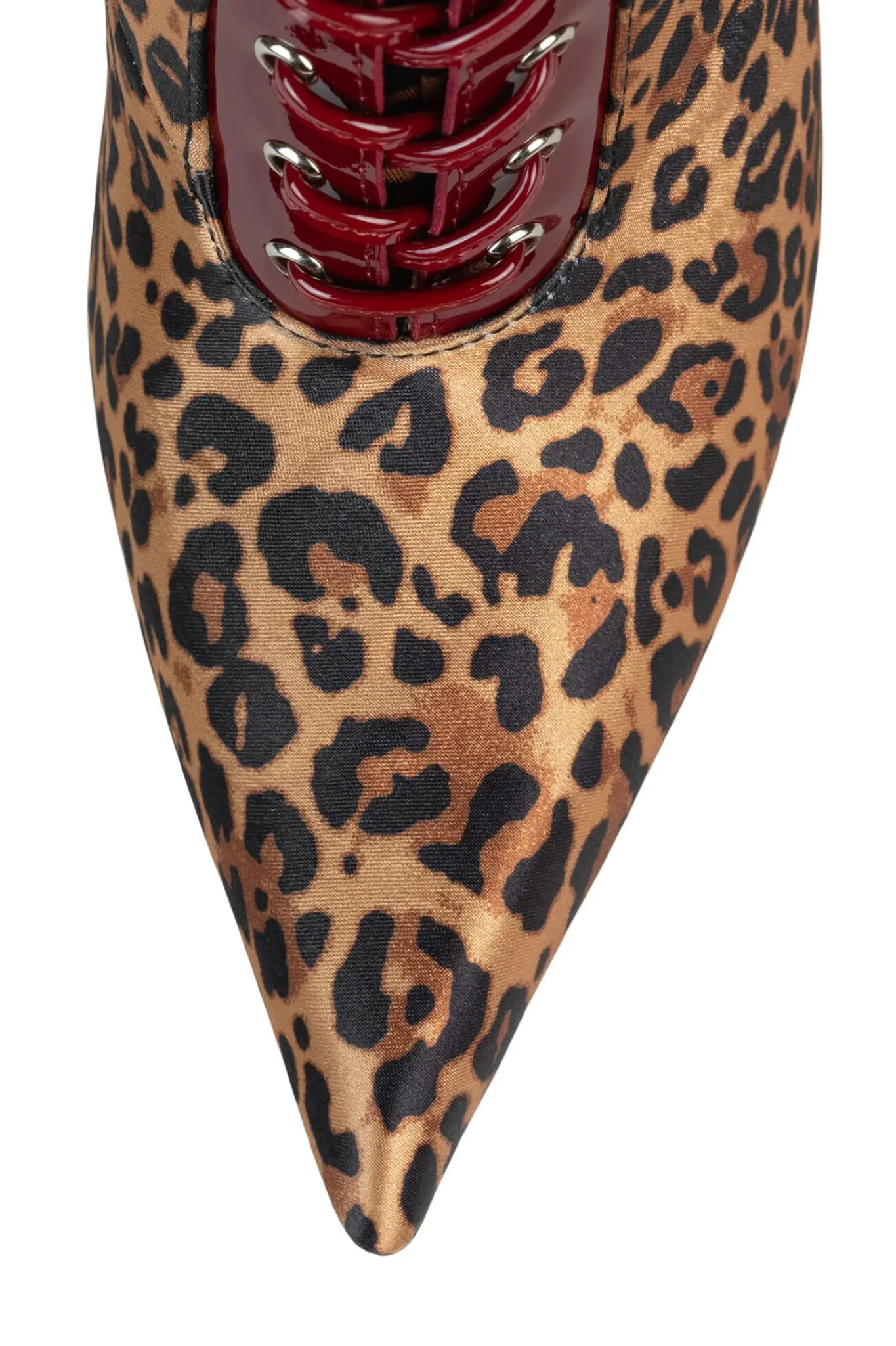Pointed-toe lace-up knee-high stiletto bootFits true to size3.75″ Heel, 0.25″ Platform12.75″ Shaft, 14″ Leg OpeningFabri…