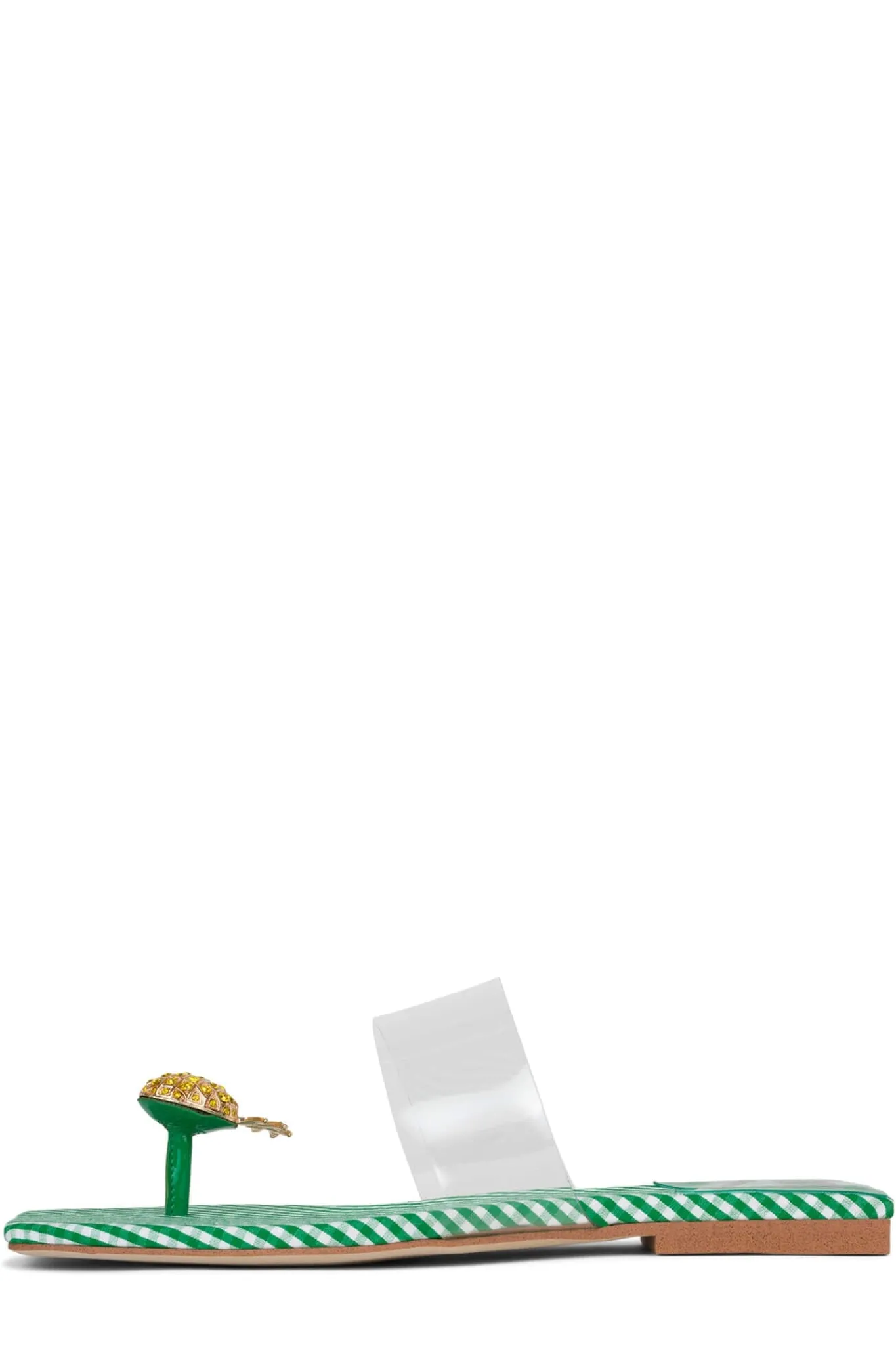 Flat sandal with pineapple toe detail and clear strap