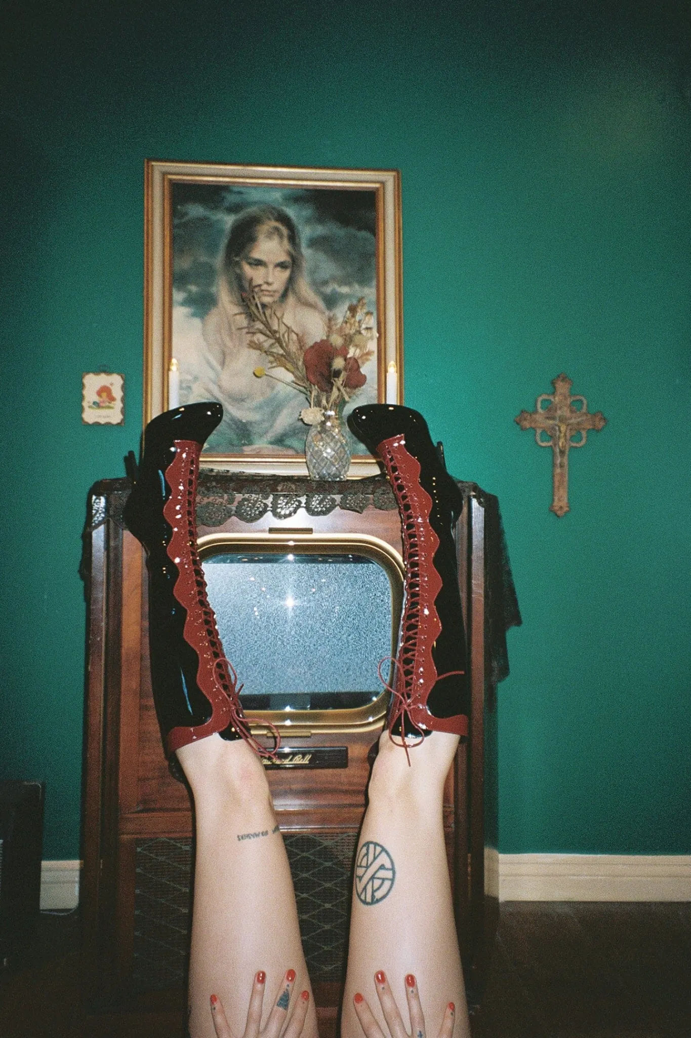 Knee-high Victorian-inspired stiletto riding boot Fits true to sizeMeasurements taken from size 7 4.24″ Heel, 0.25″ Pl…
