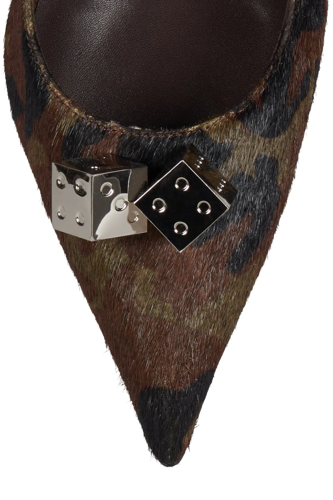 Calf-hair pump with metal dice detail Fits true to sizeMeasurements taken from size 73.65″ heel, 0.25″ PlatformCalf-hai…