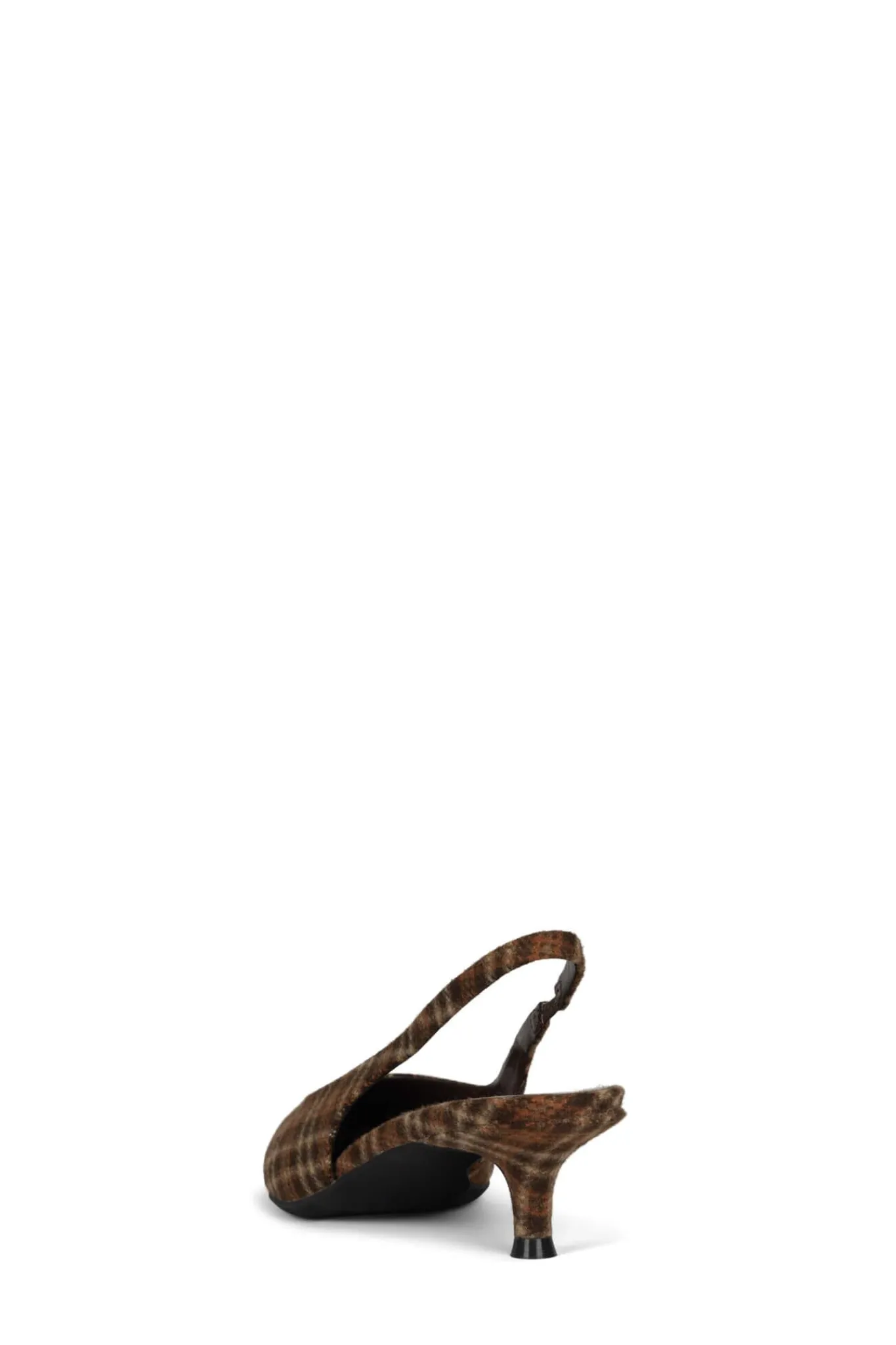 Slingback pointed toe kitten heel.