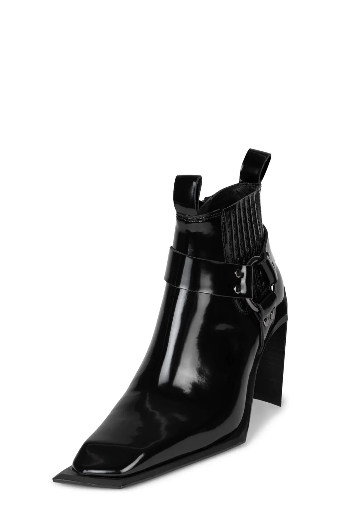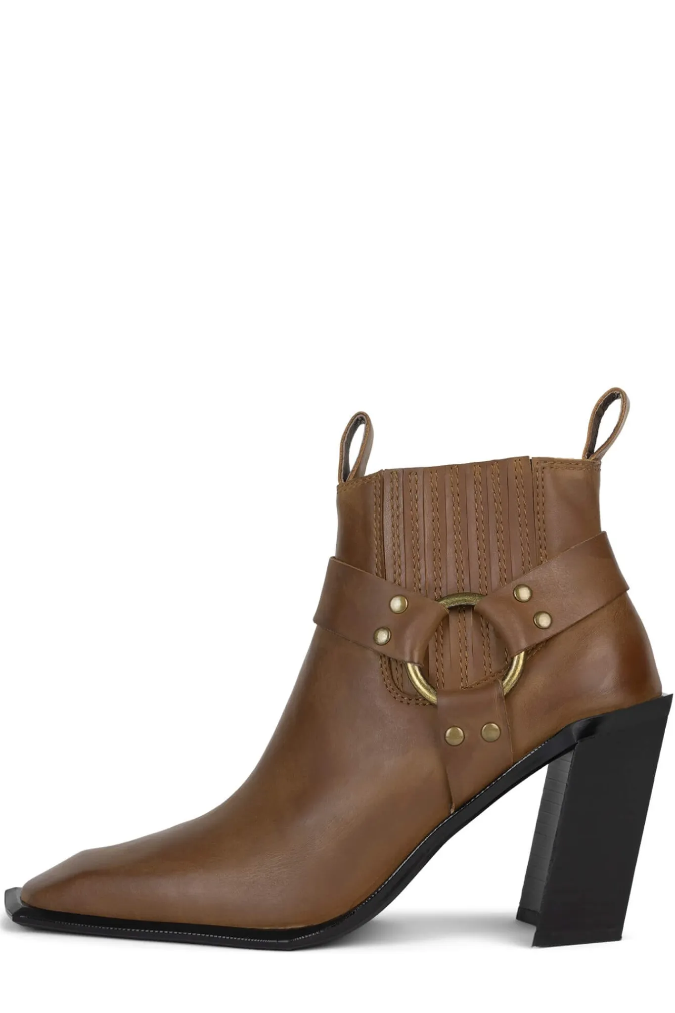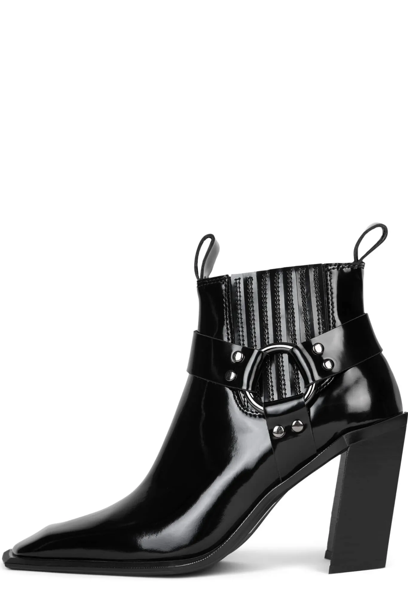 Sculpted heeled western-inspired booth with harness