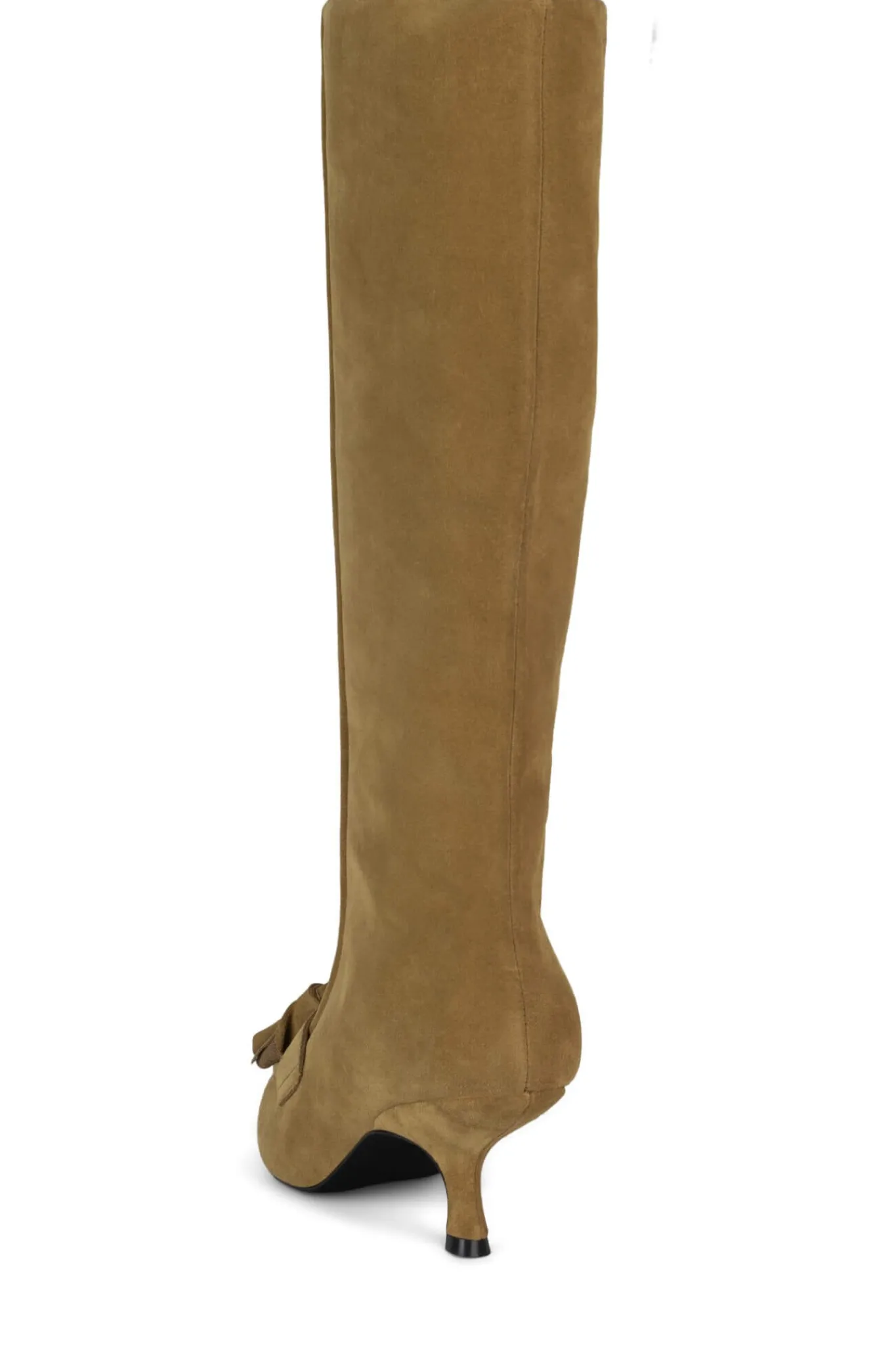 Sculpted kitten heel knee-high boot with loafer tassel detail