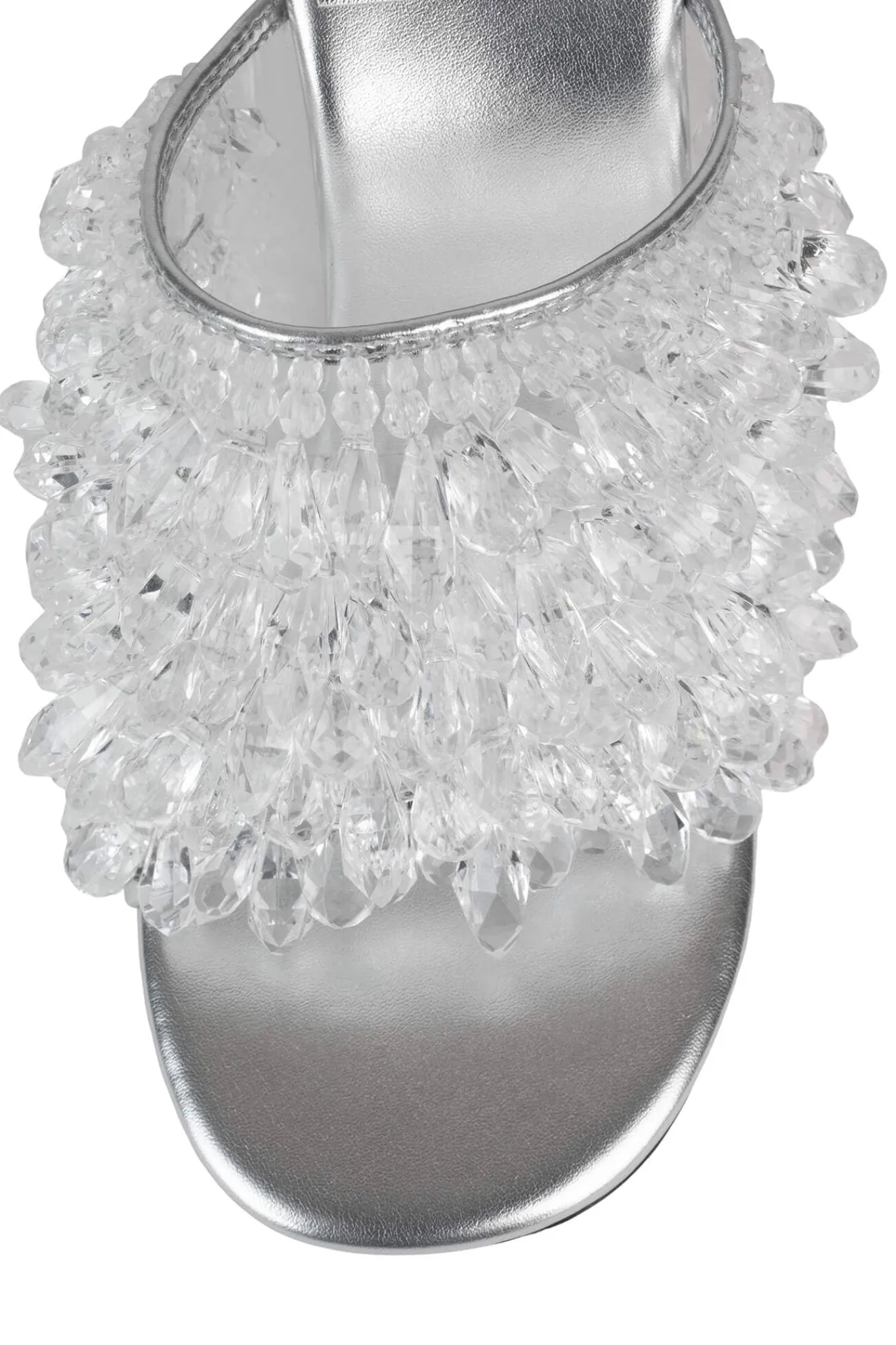 Heeled sandal with clear bead embellishmentsFits true to sizeMeasurements taken from a size 7 4″ Heel, 0.25″ PlatformSy…