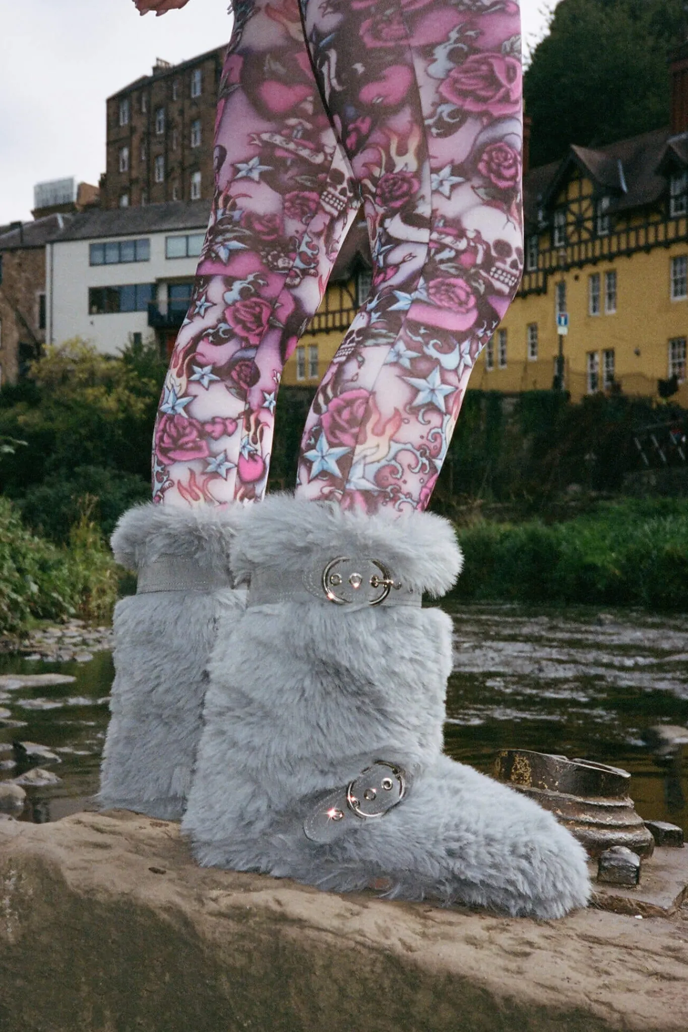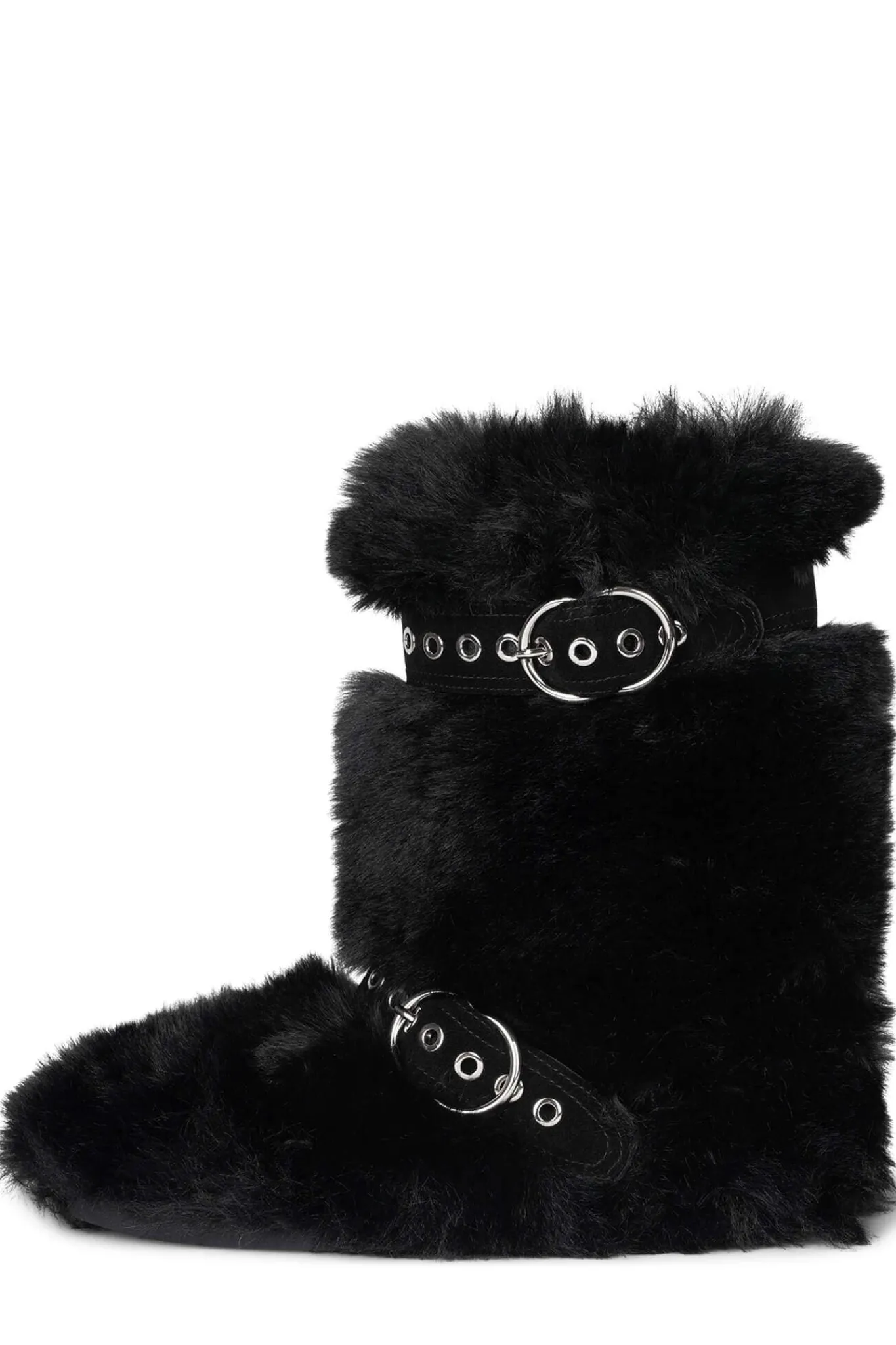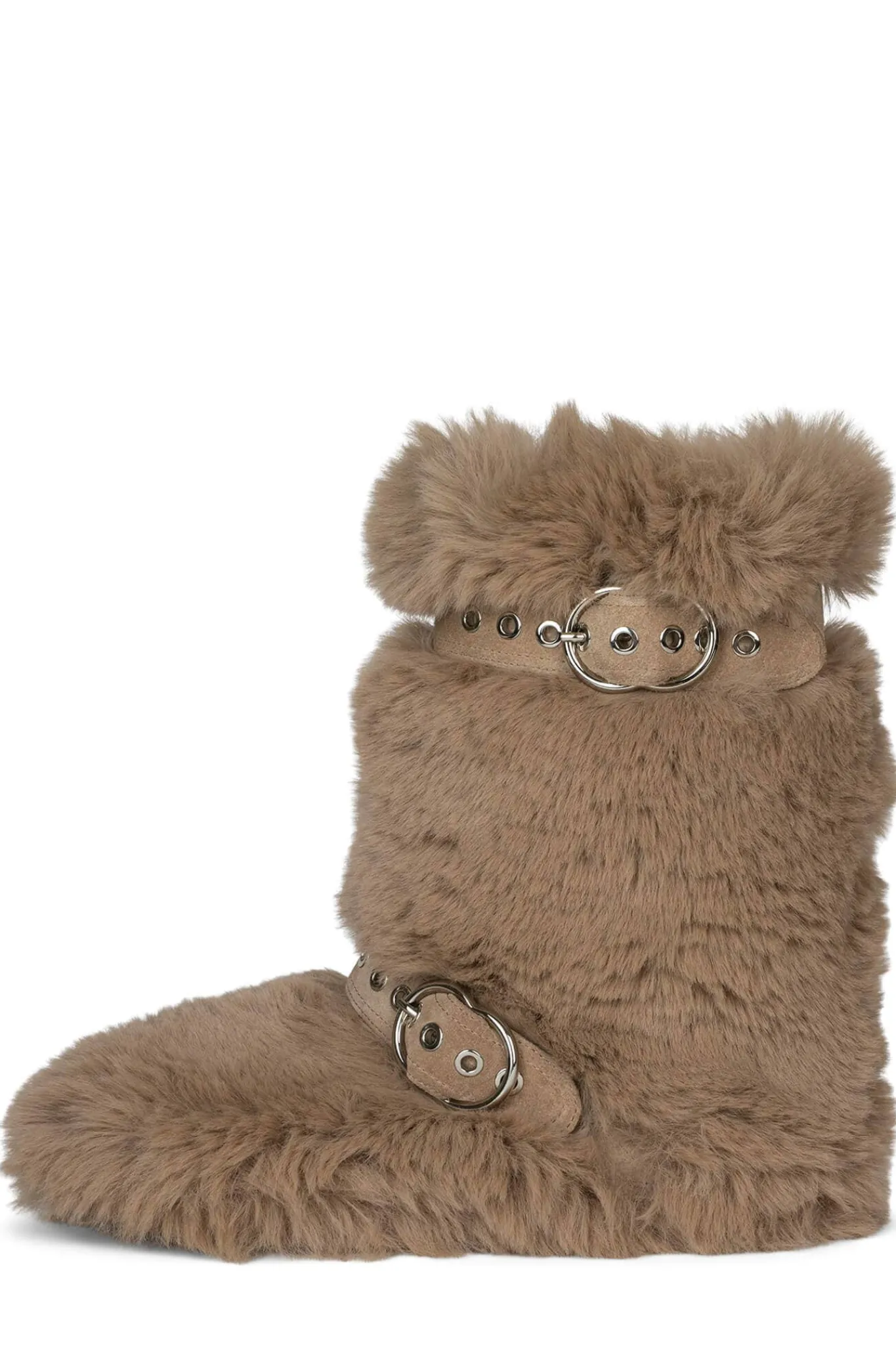 Faux-fur mid-calf boot with buckle detail