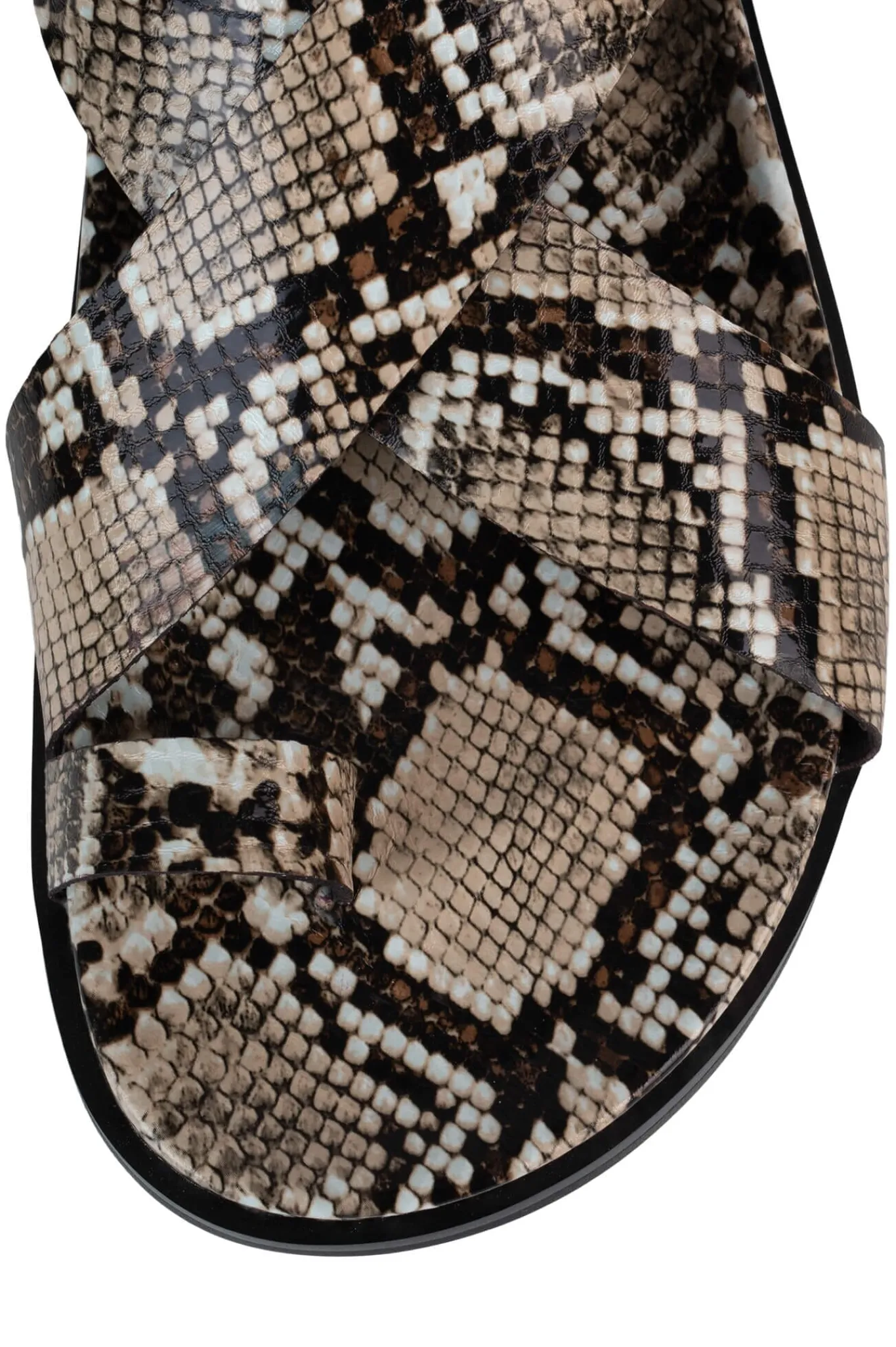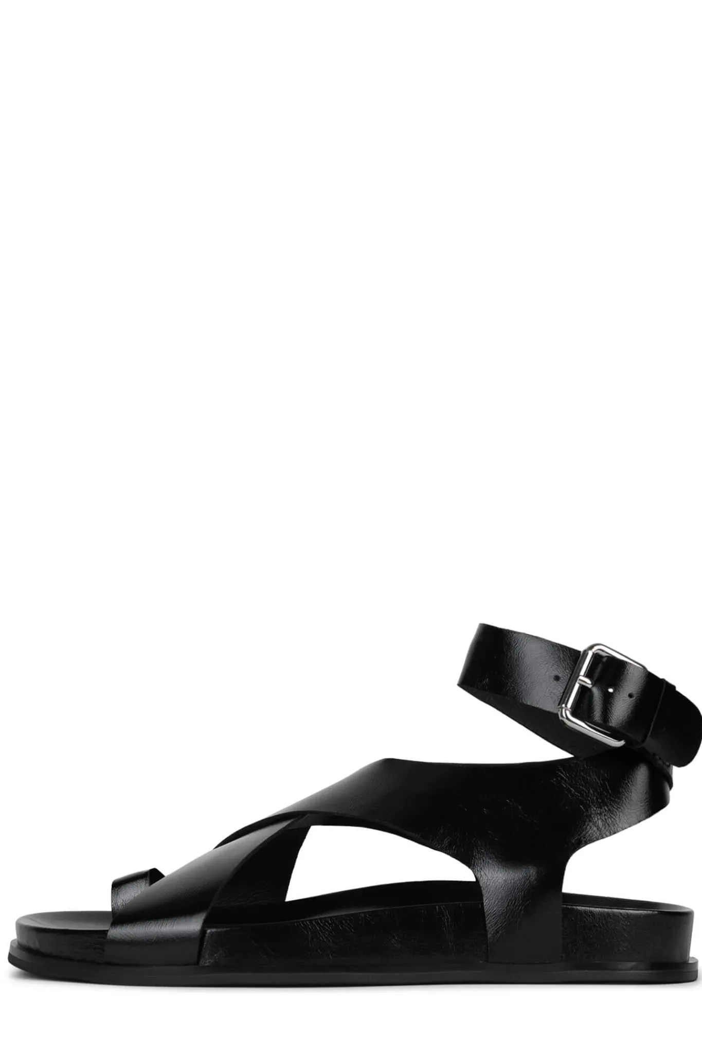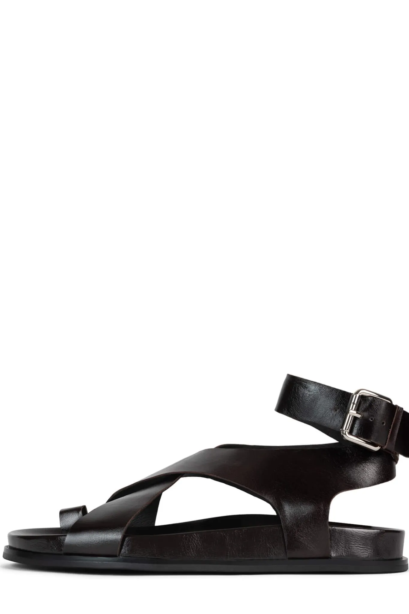 Crossband sandal with toe-loop and ankle-strap