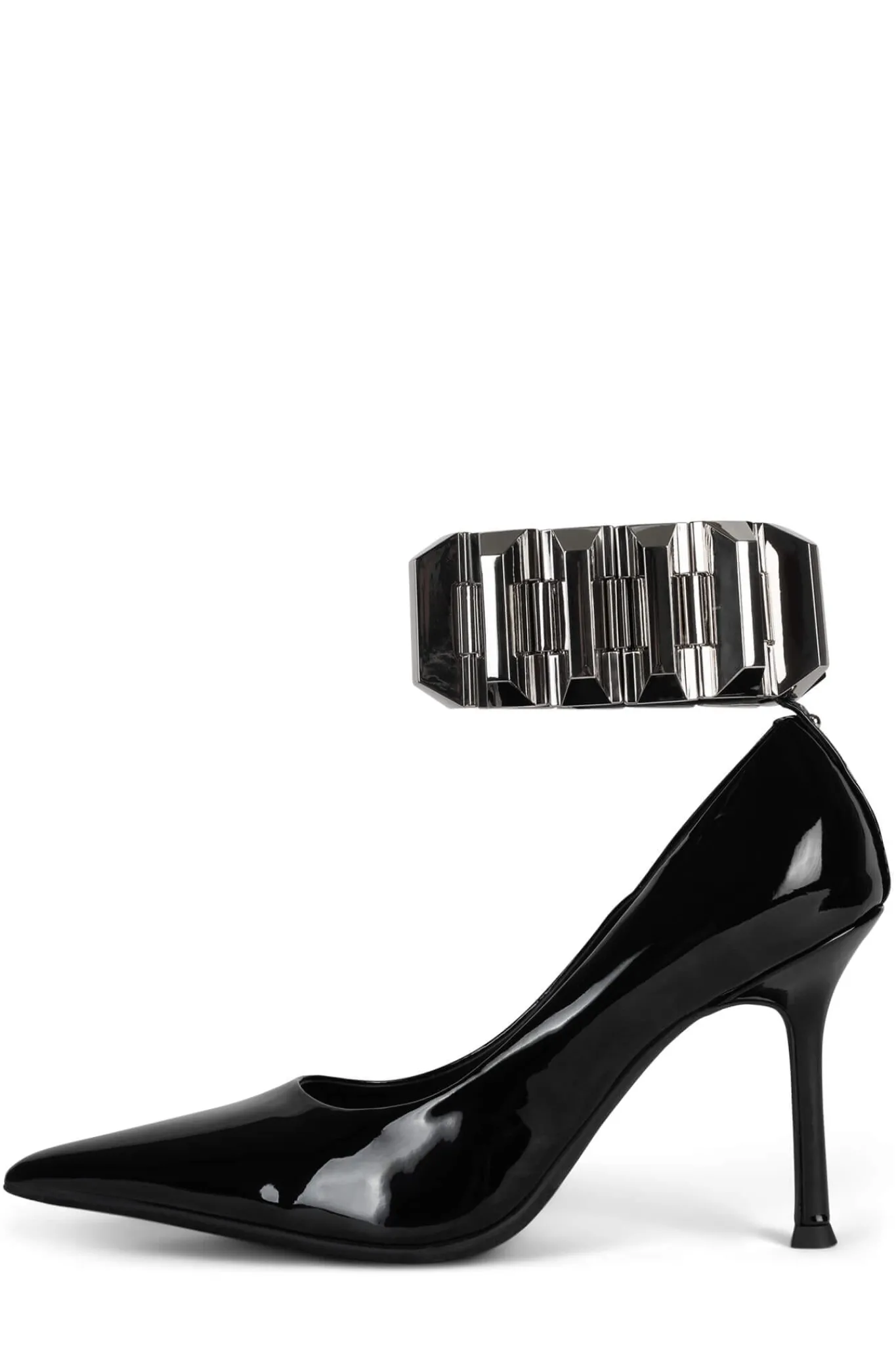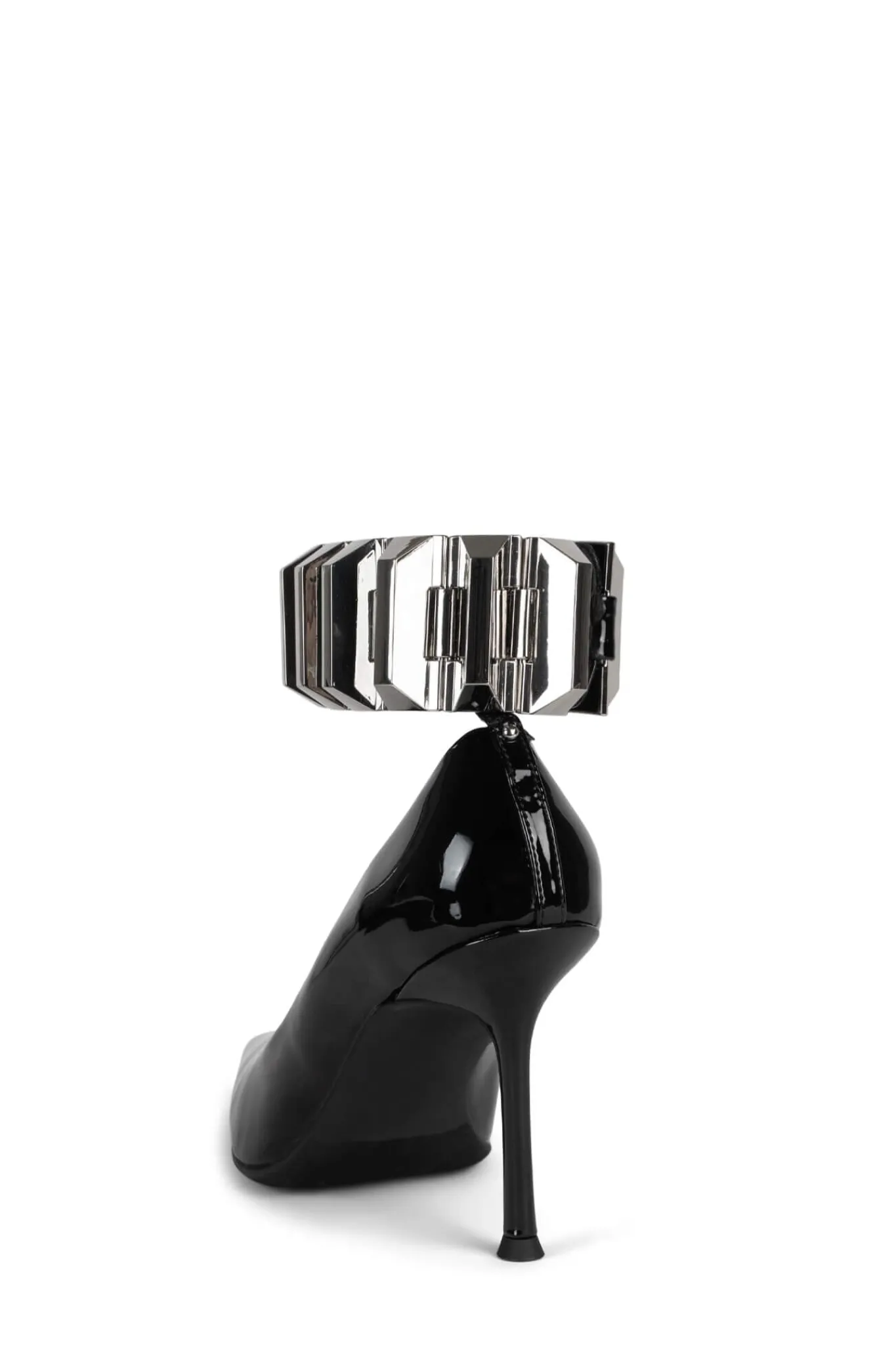 High-heel pointed-toe pump with metal-cuff ankle strap