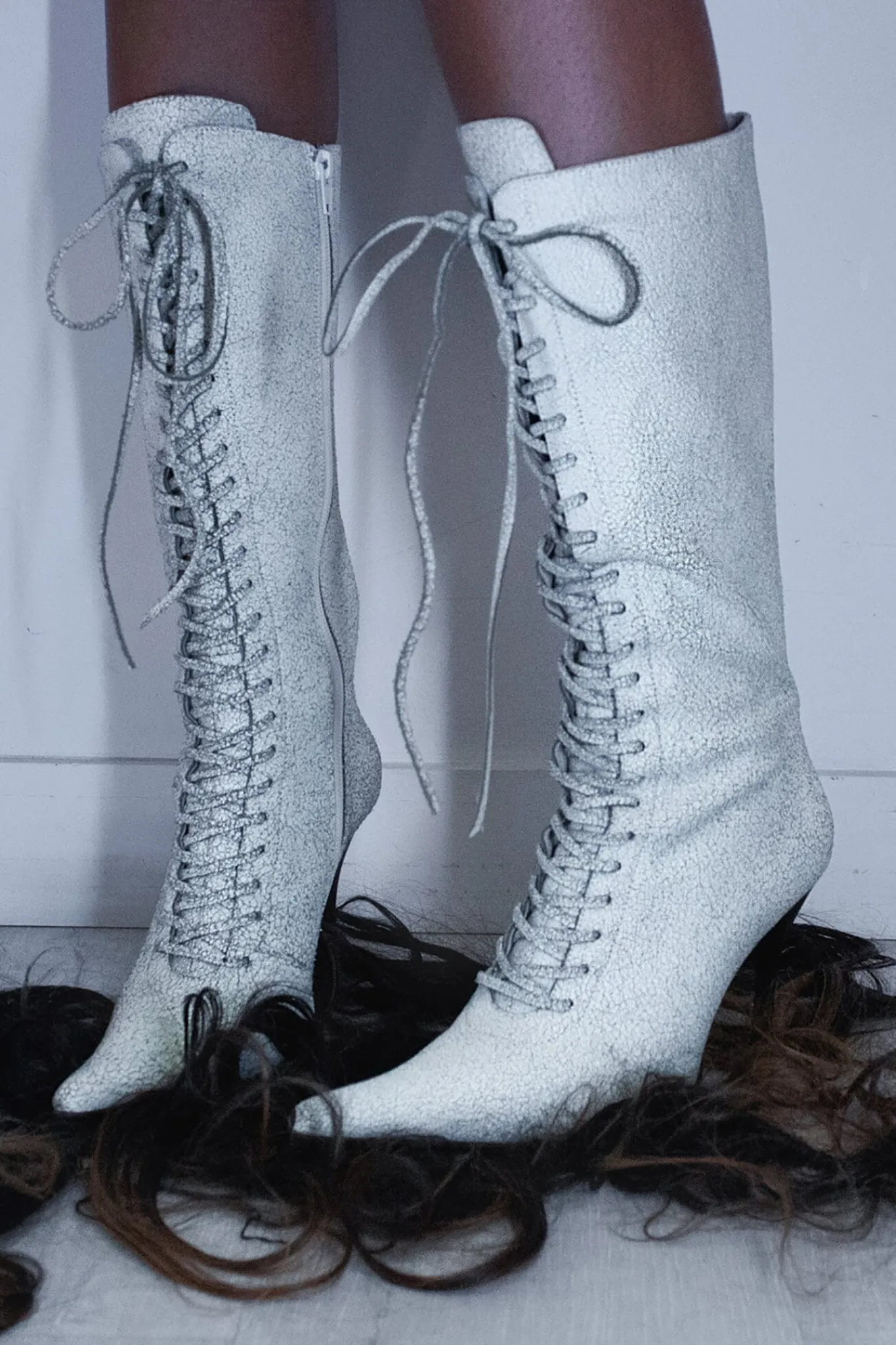 Knee-high lace-up stiletto boot