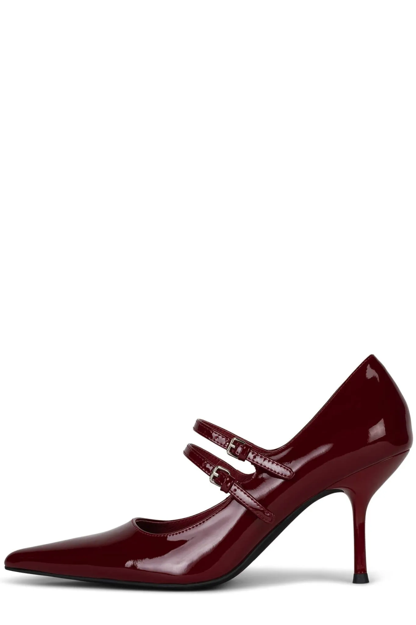 Pointed-toe stiletto double-strap Mary-Jane pump