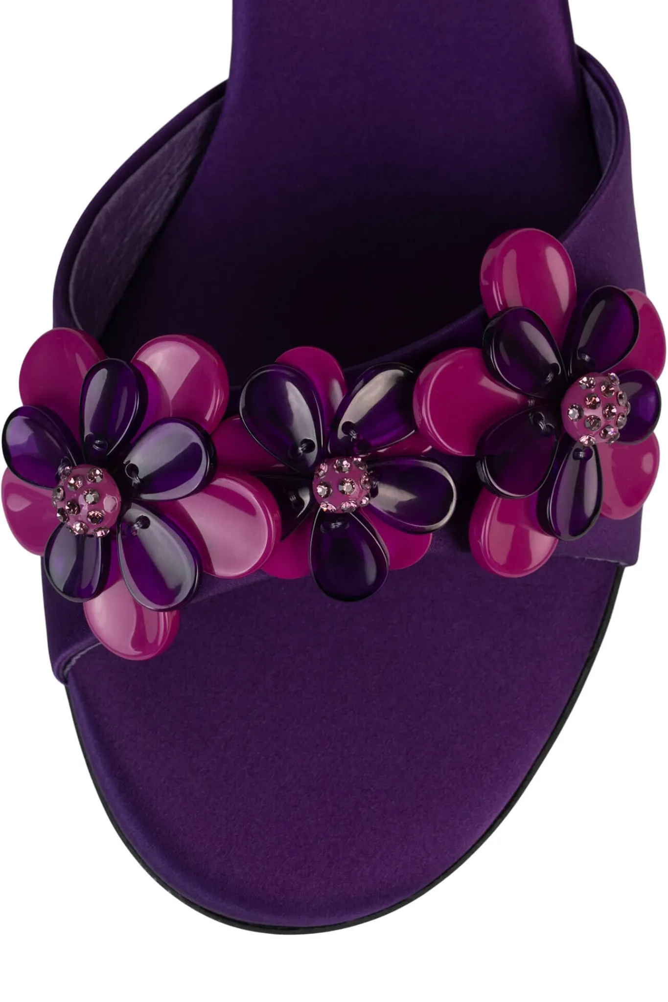 Sculpted kitten heel sandal with floral embellishments