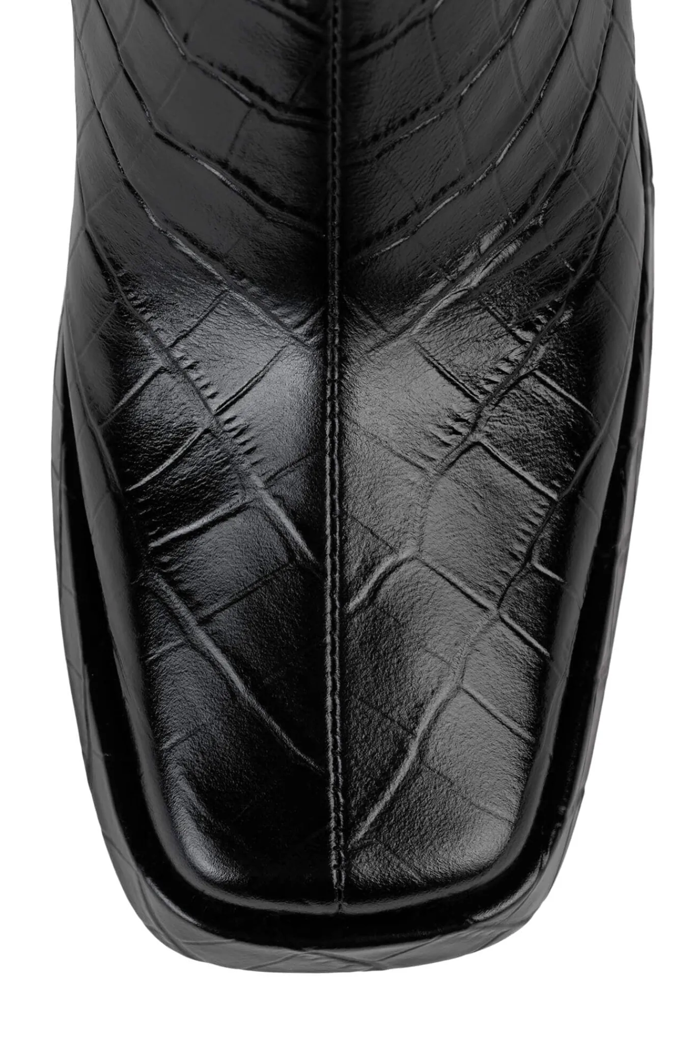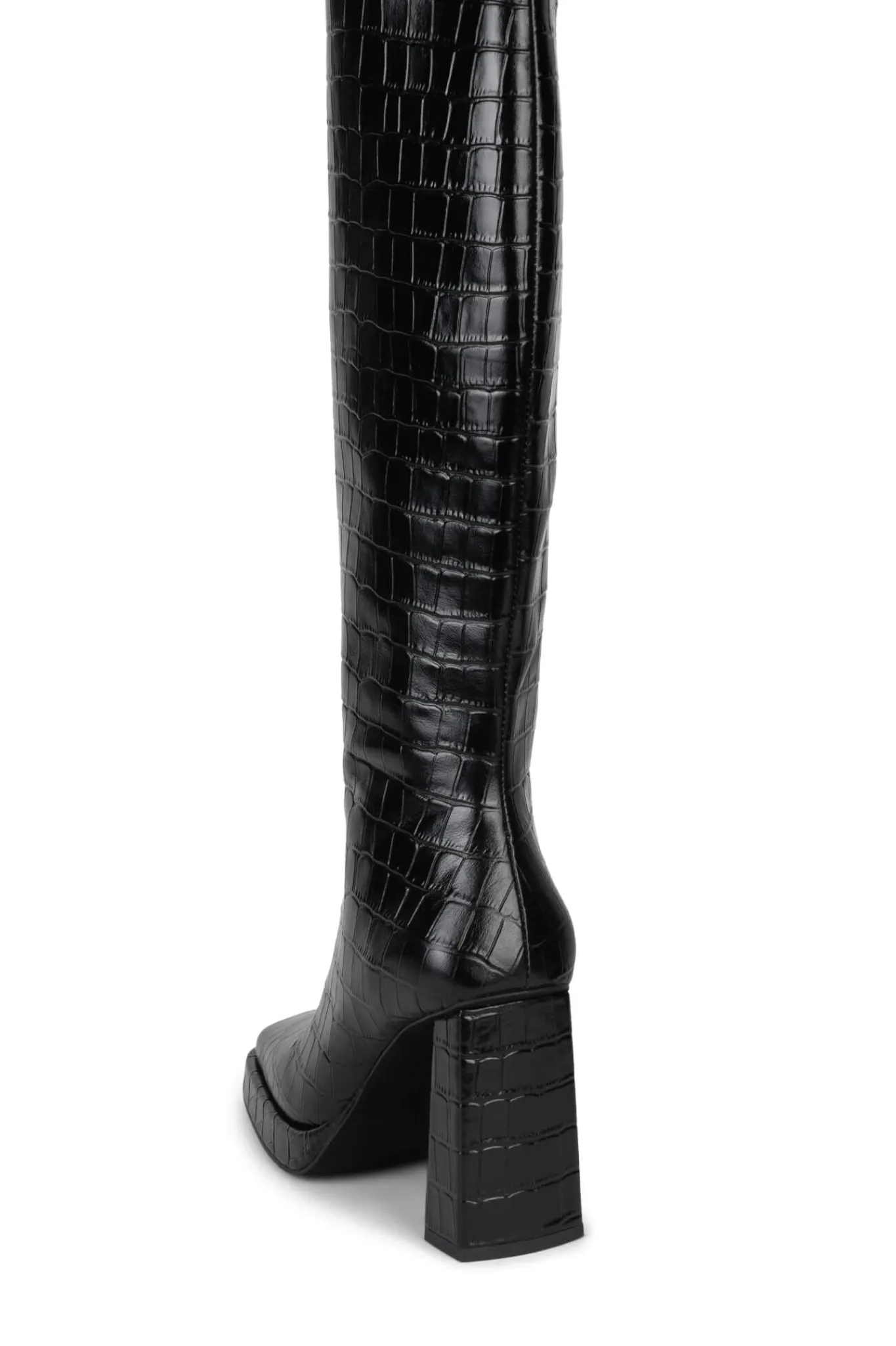 Square-toe platform knee-high boot.