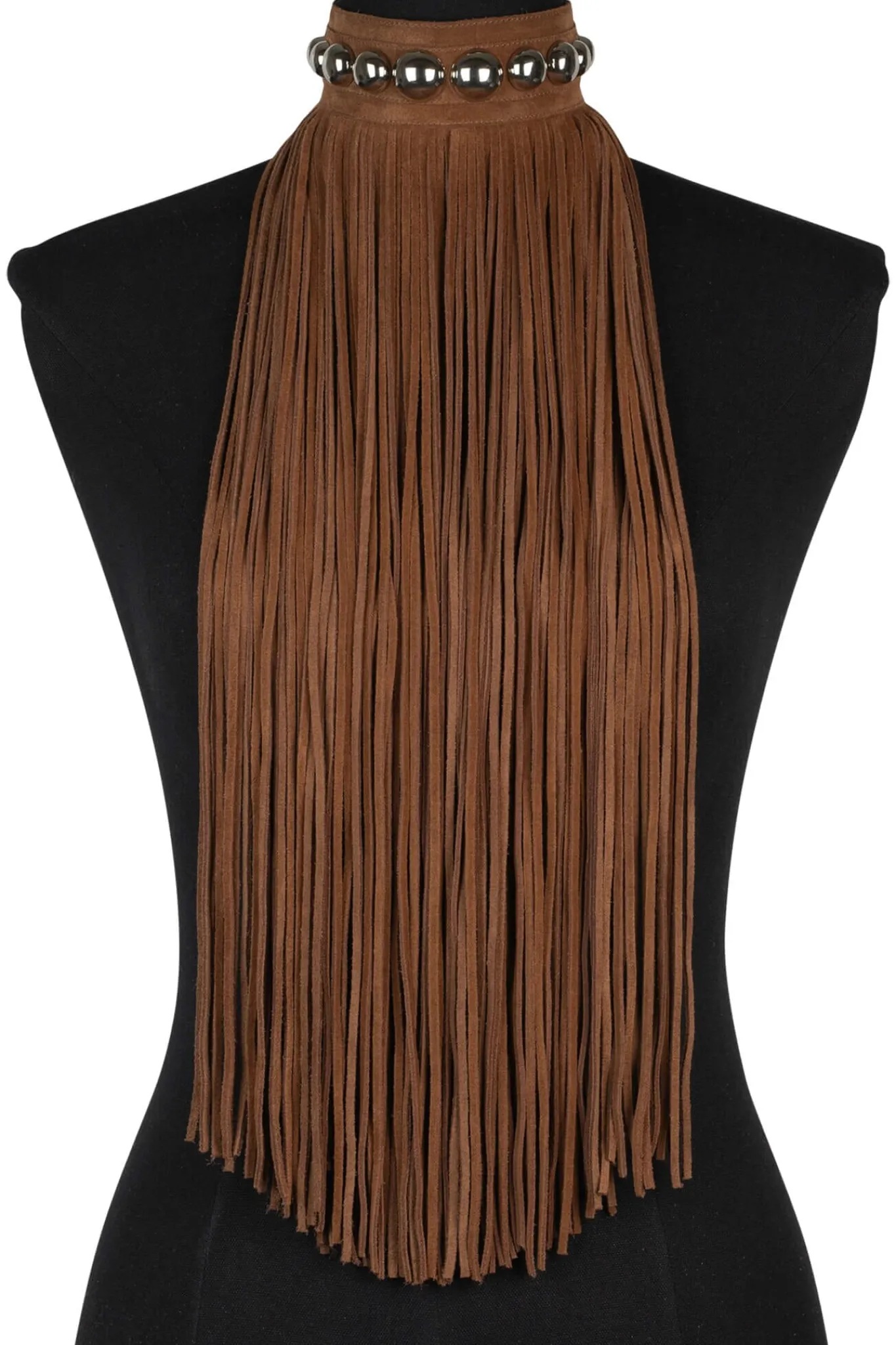 Fringe necklace with stud detail Measurements guide:S/M fits 12″ – 13.5″ circumferenceM/L fits 13″ – 14.5″ circumferenc…