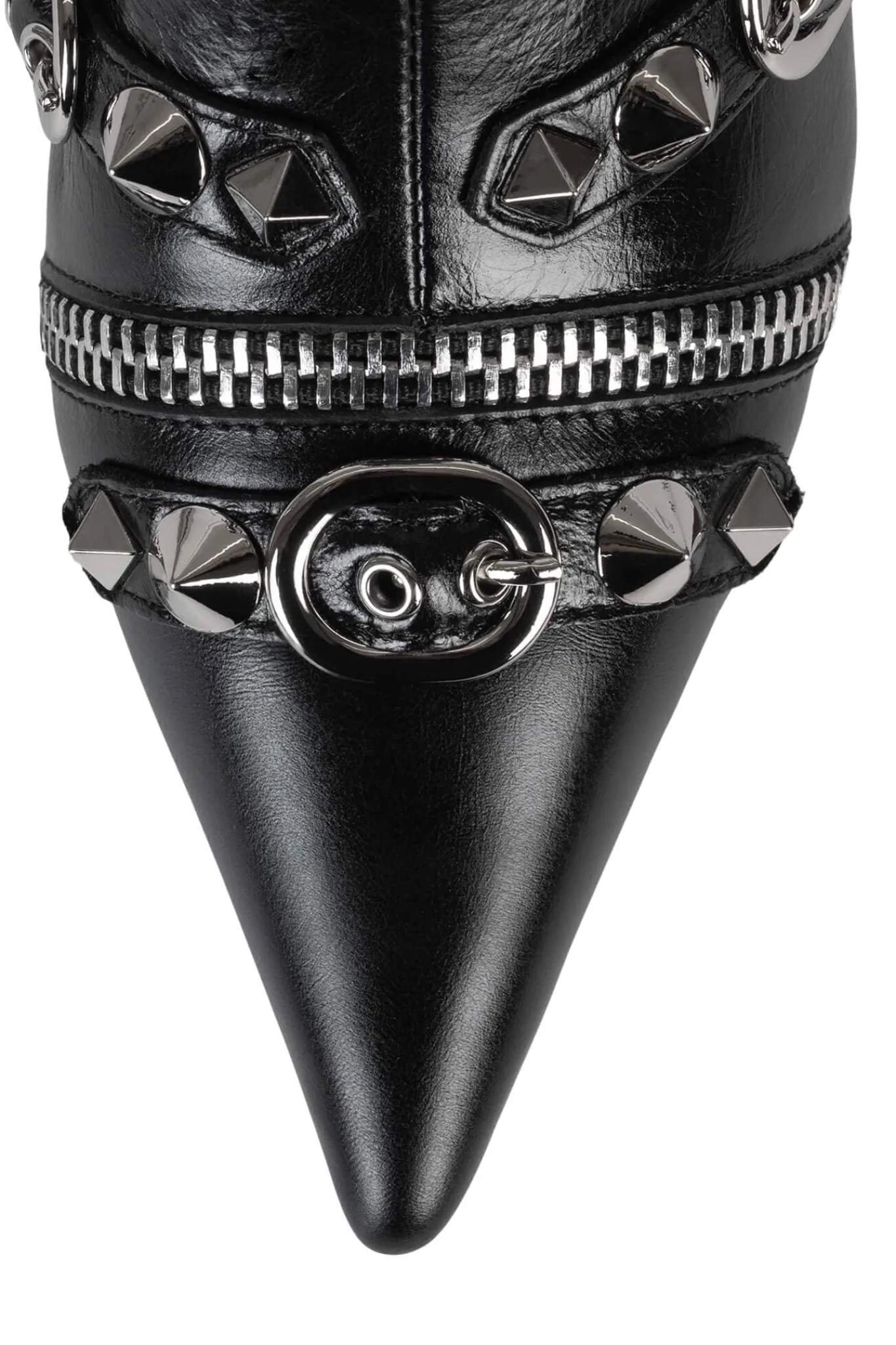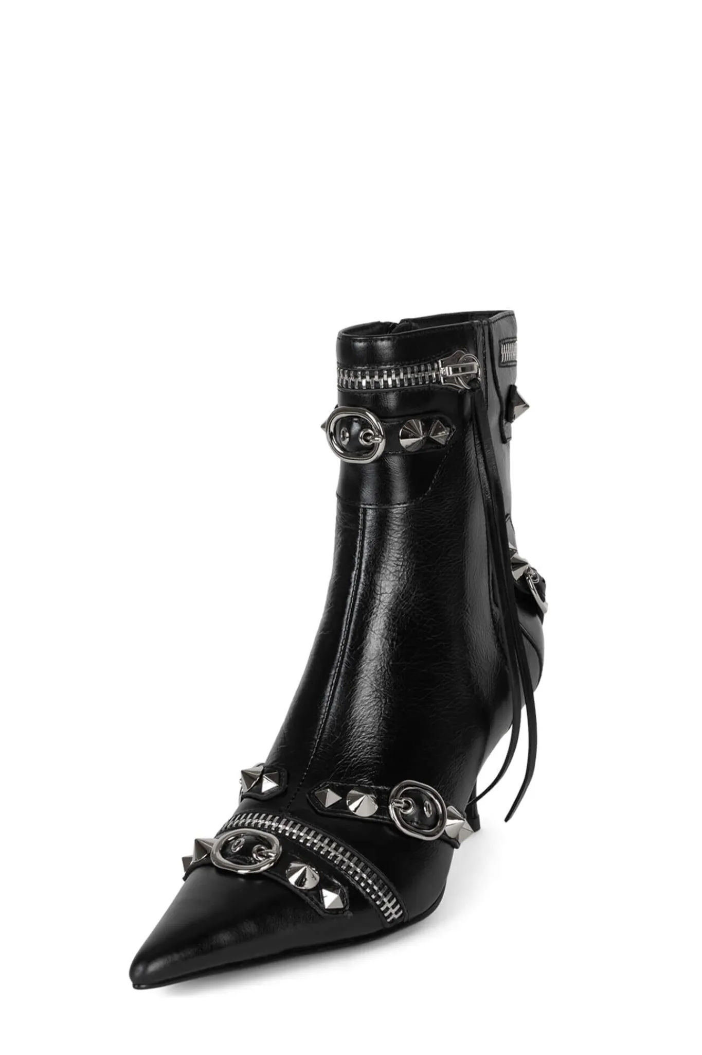 Moto-inspired kitten-heeled boot with zipper and stud detail