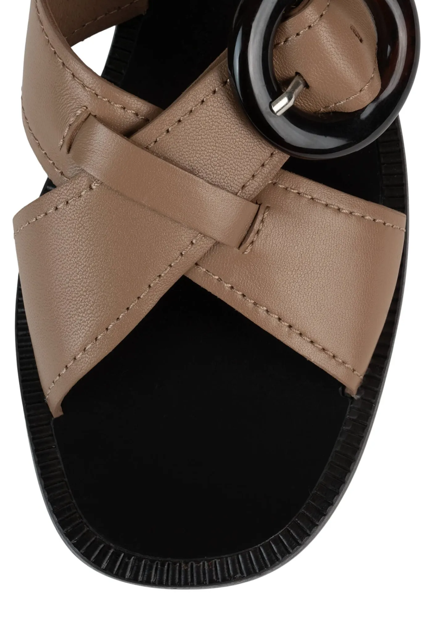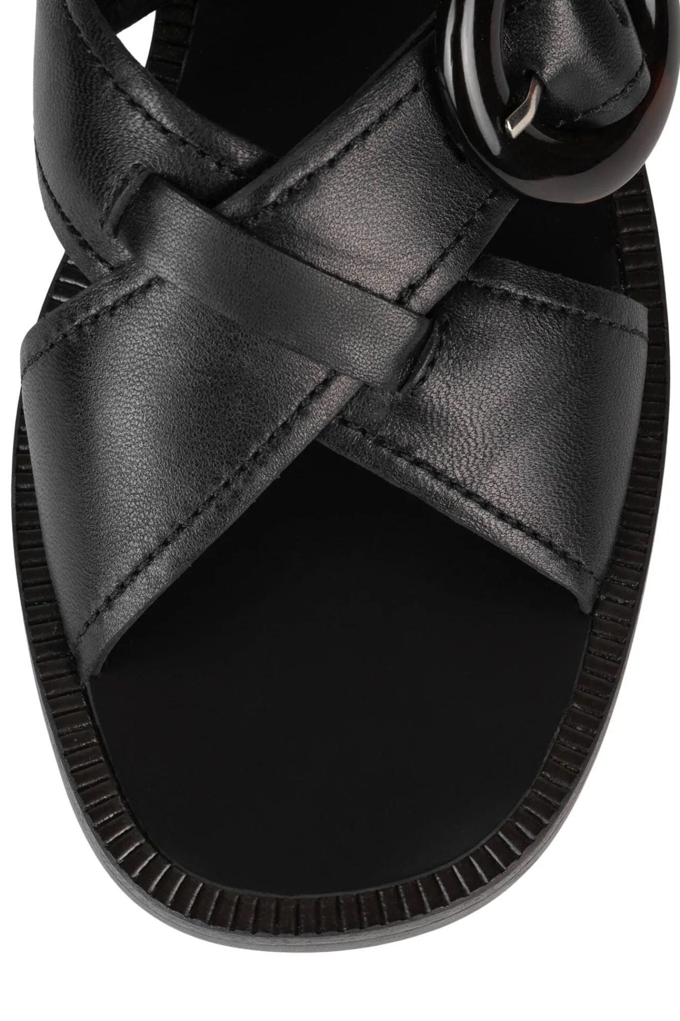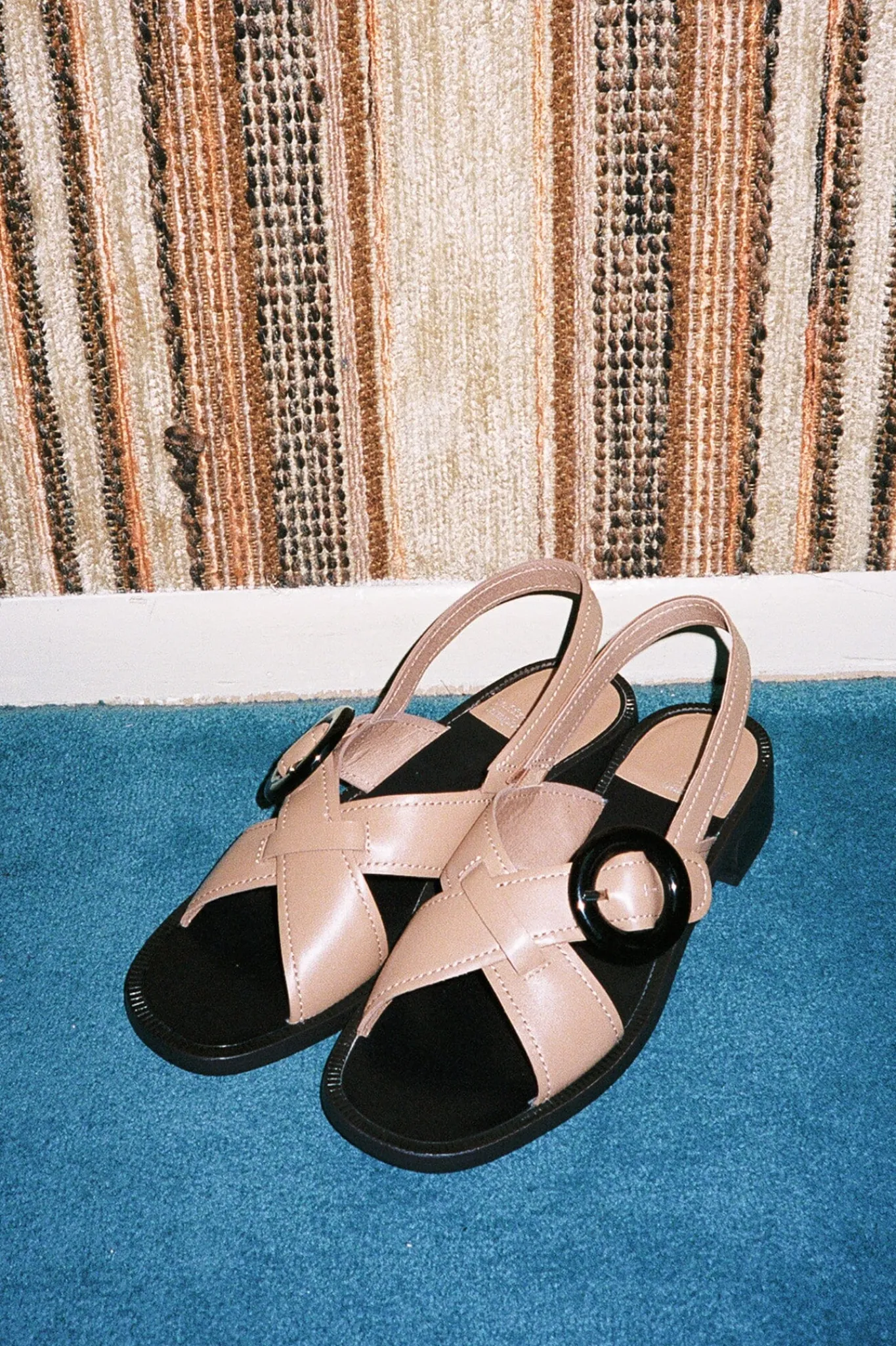 Crossband stacked heel slingback sandal Fits true to sizeMeasurements taken from a size 7 1.25″ Heel, 0.25″ PlatformLe…