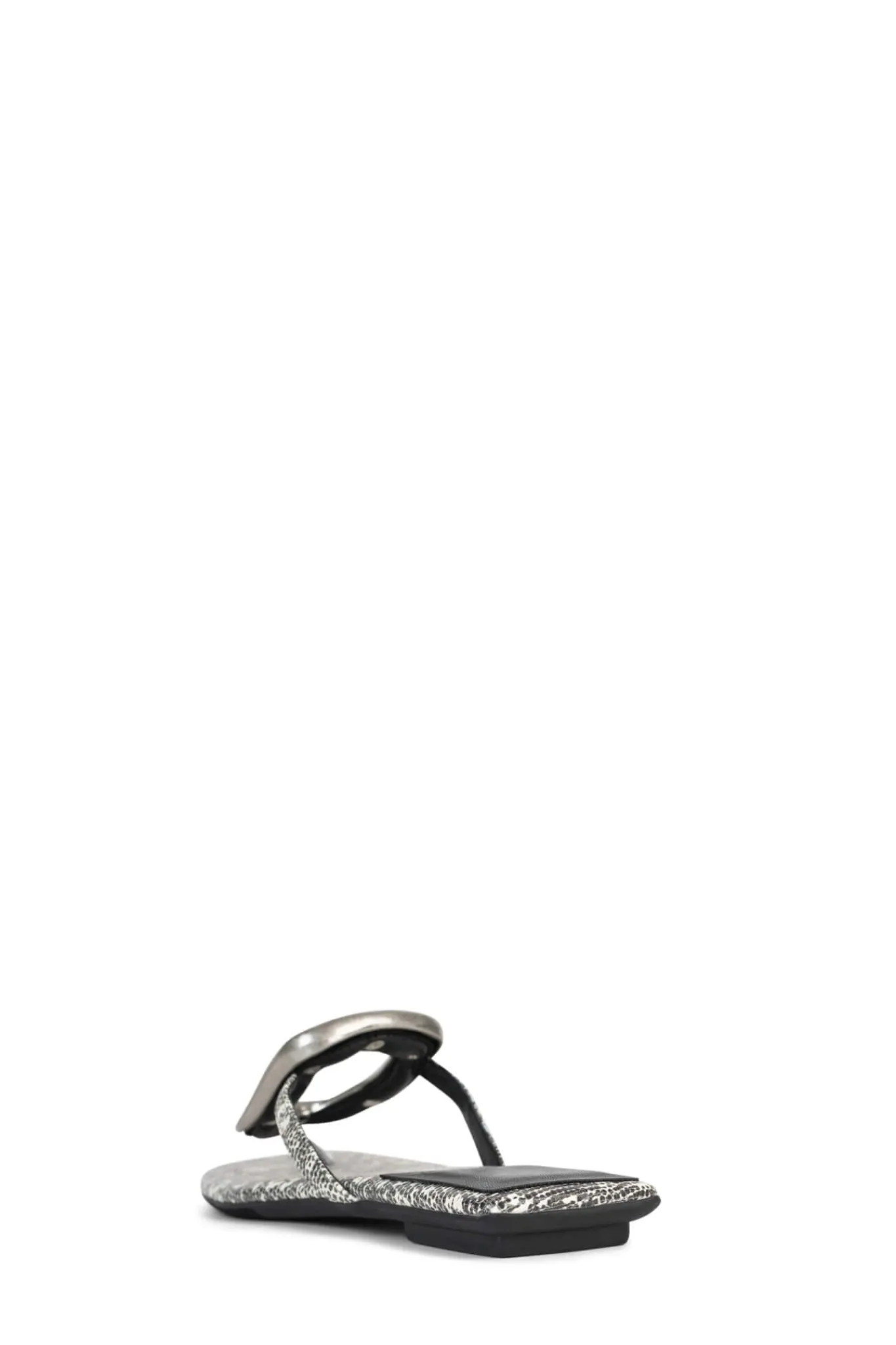 Flat thong sandal with metal embellishmentFits true to sizeMeasurements taken from a size 7Fabric upper, Fabric / Leathe…