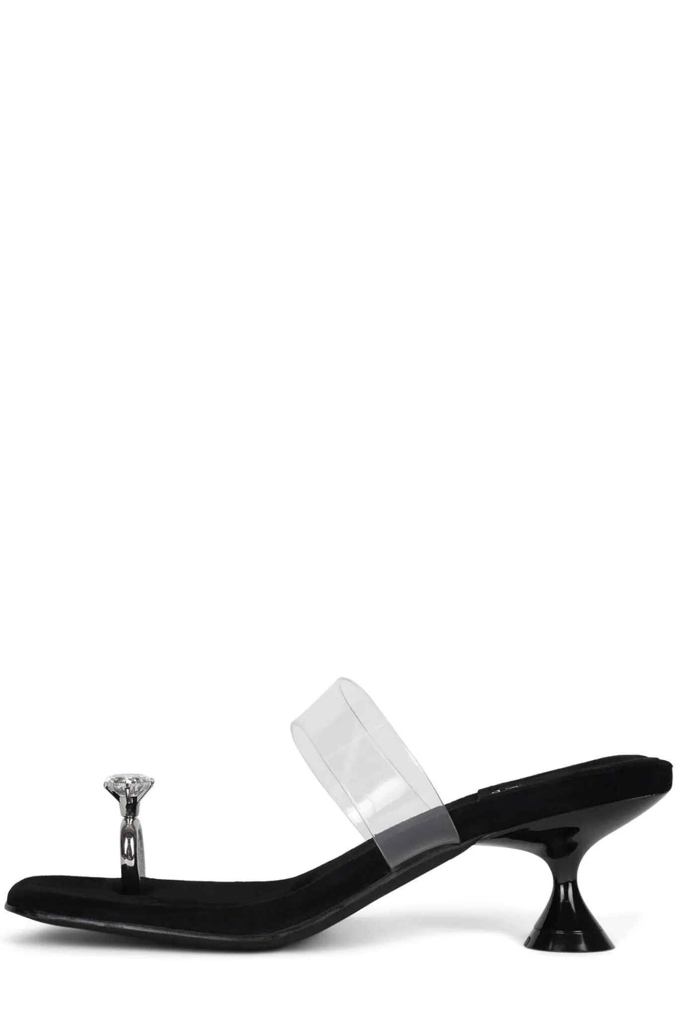 Kitten heel sandal with clear vinyl strap & embellished toe-ring