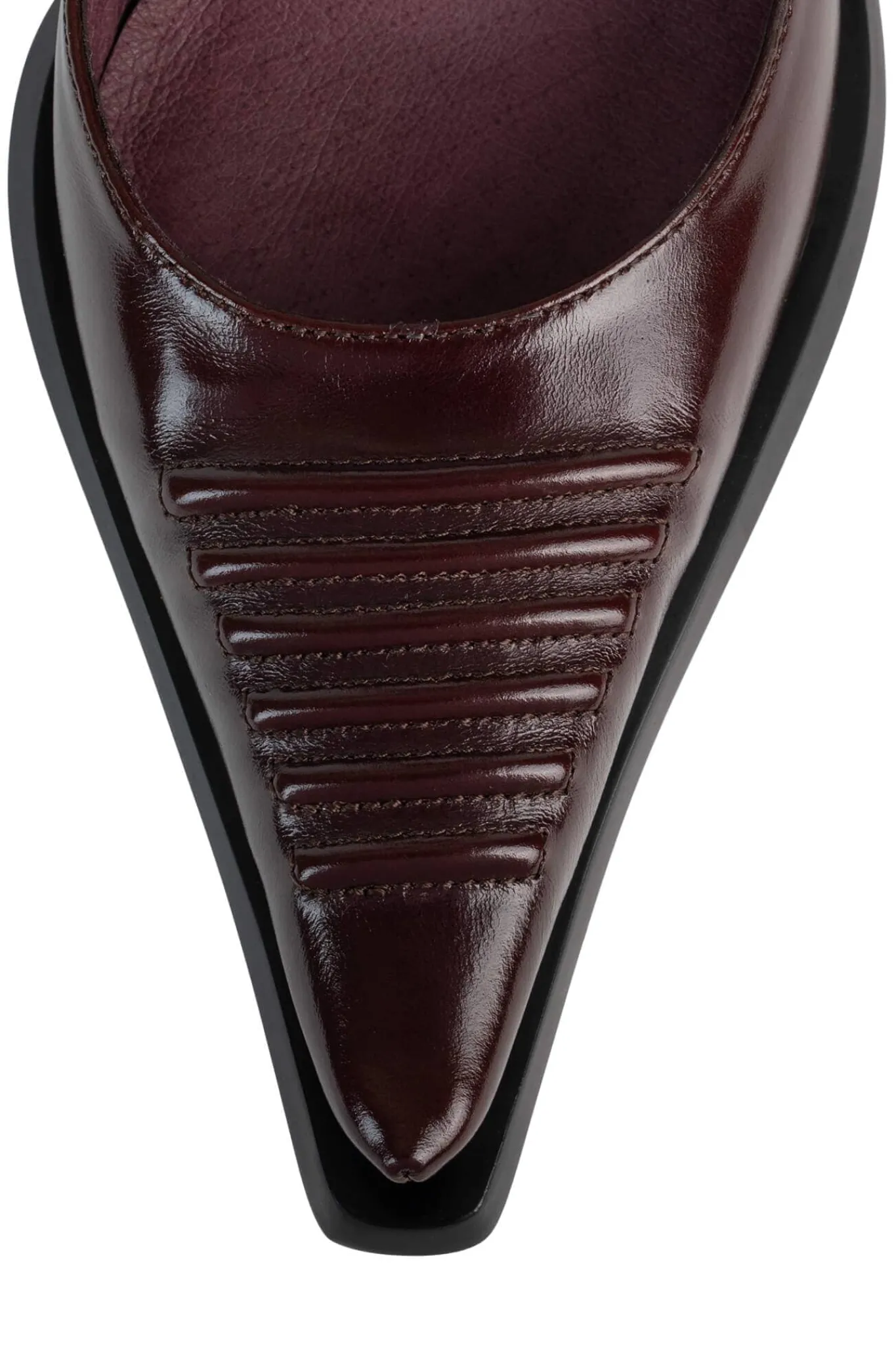 Moto-inspired pump with ankle strap