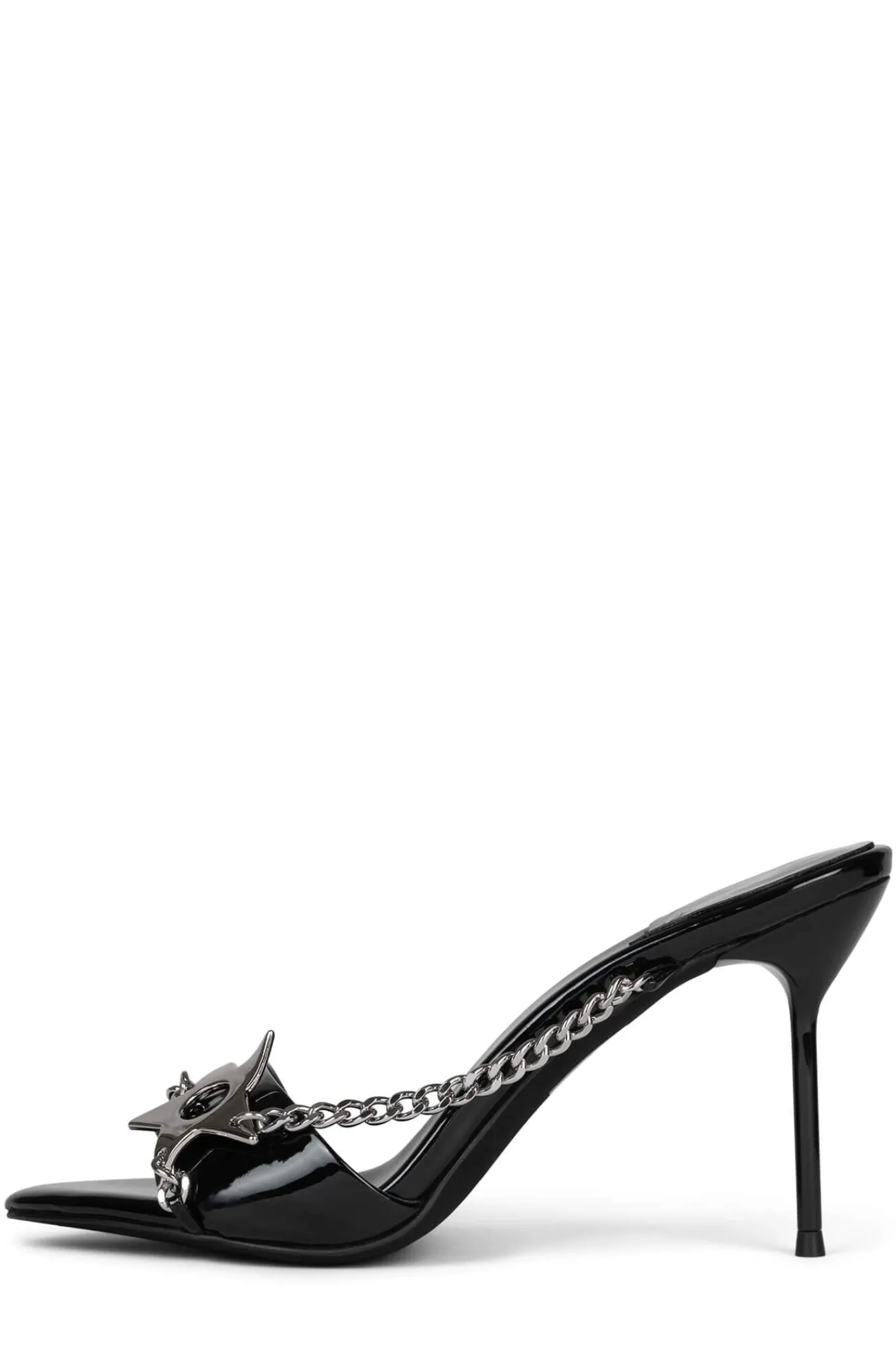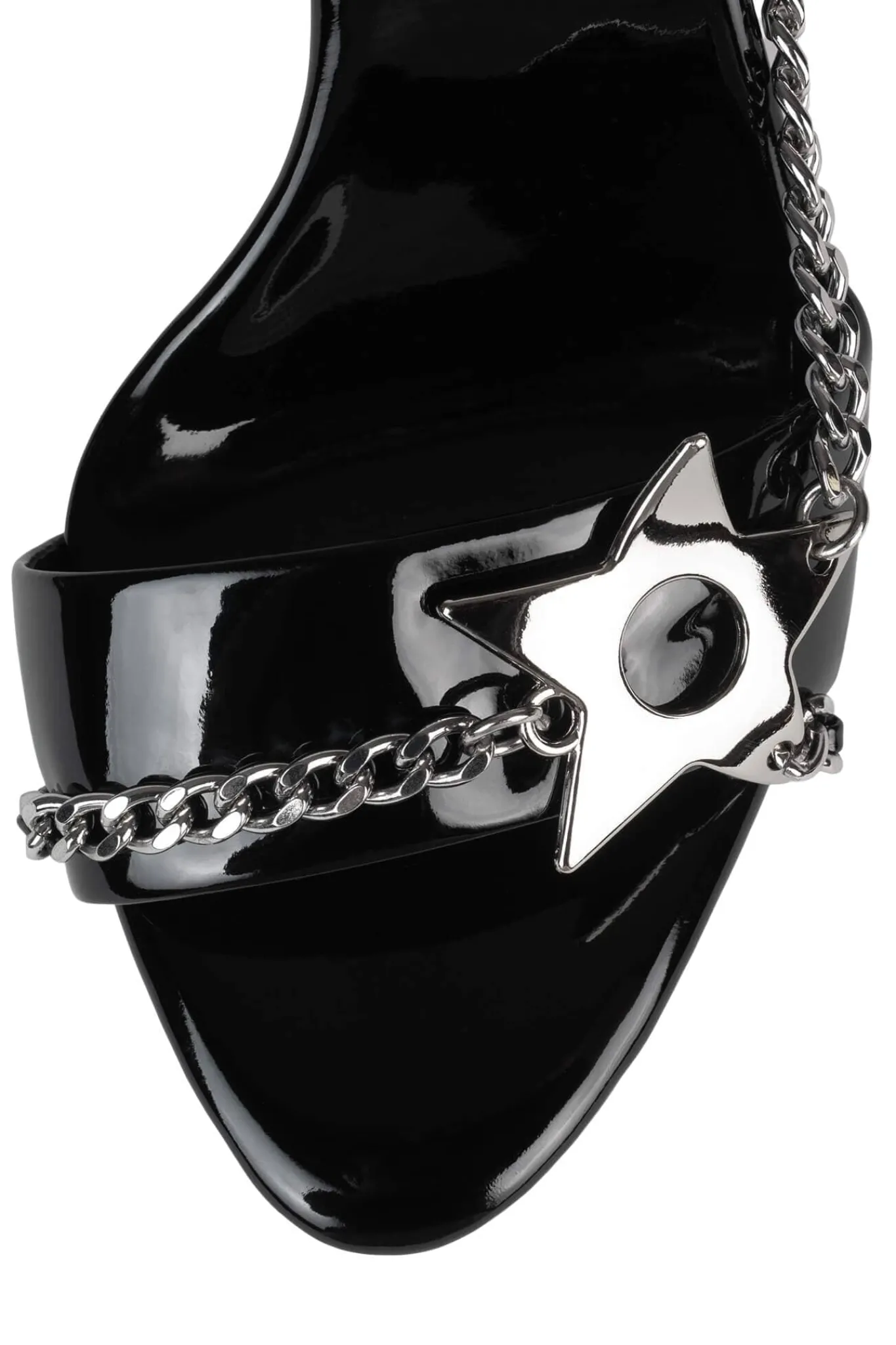 Pointed-toe stiletto sandal with metal star and chain detail Fits true to sizeMeasurements taken from a size 7 4″ Heel…