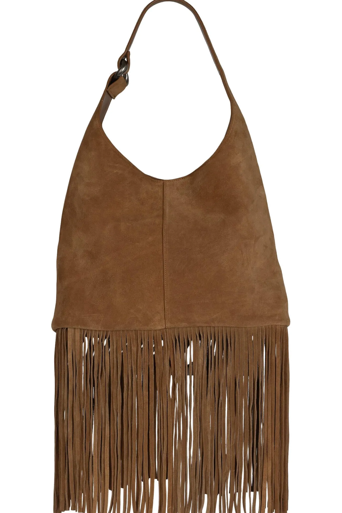 Fringe bucket bag with o-ring detail