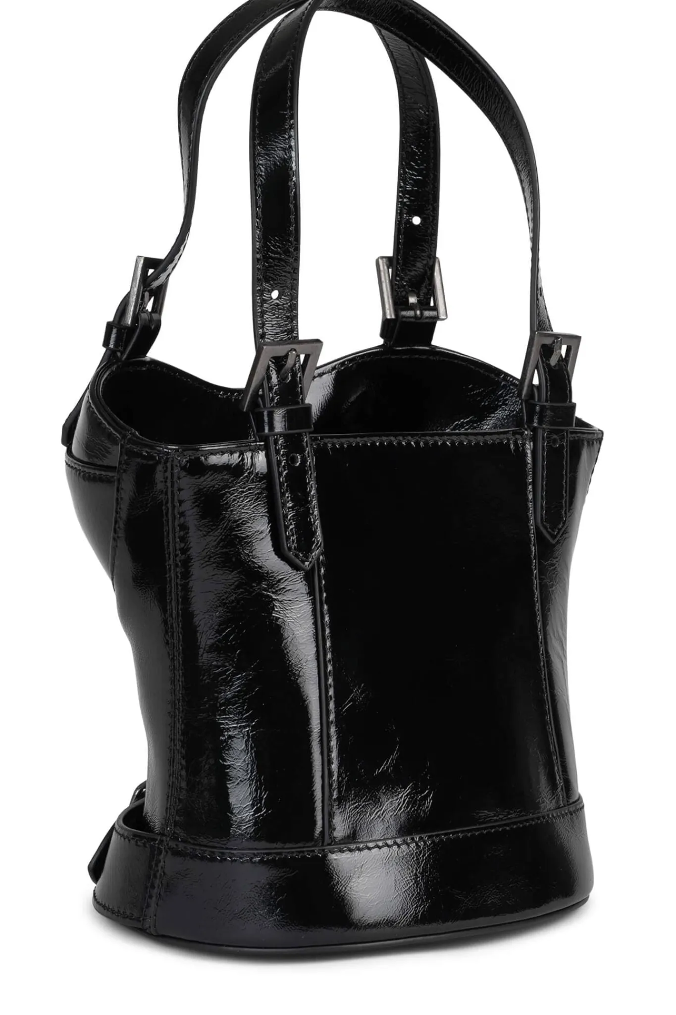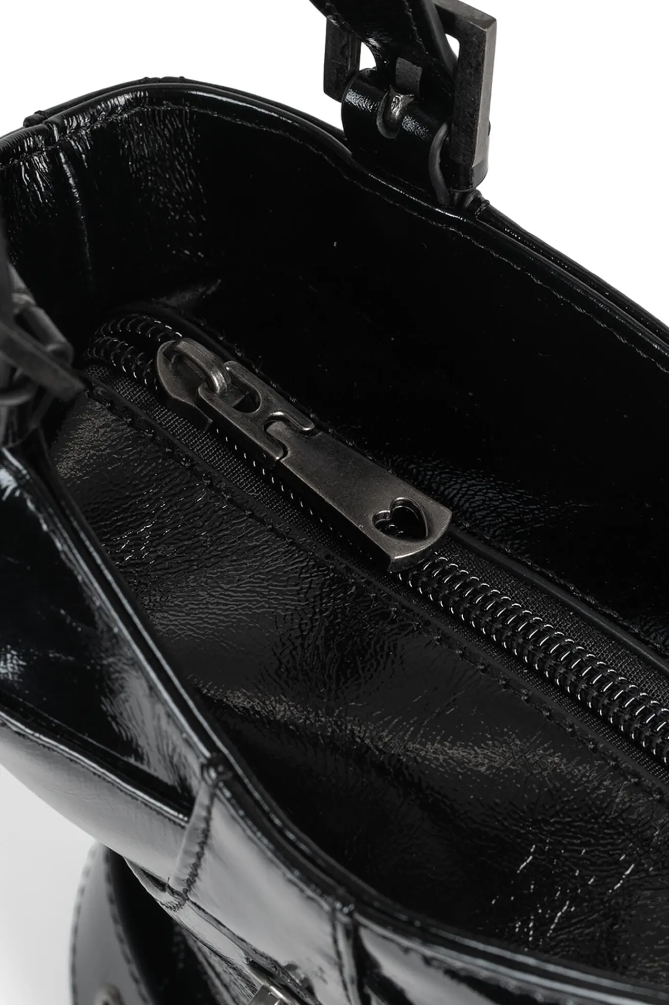 Moto-inspired bodice handbag with zipper closure.