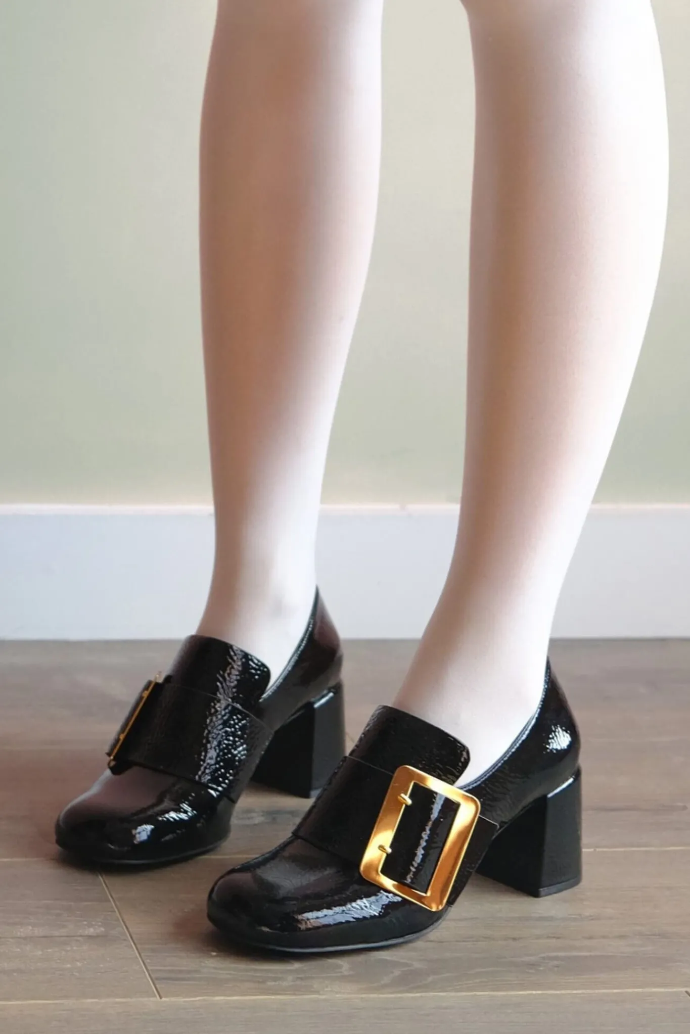 Block-heeled loafer with oversized buckle