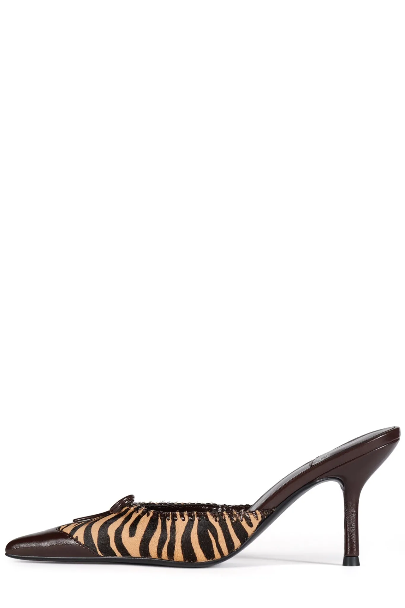 Pointed-toe heeled mule with western motif and calf-hair detail