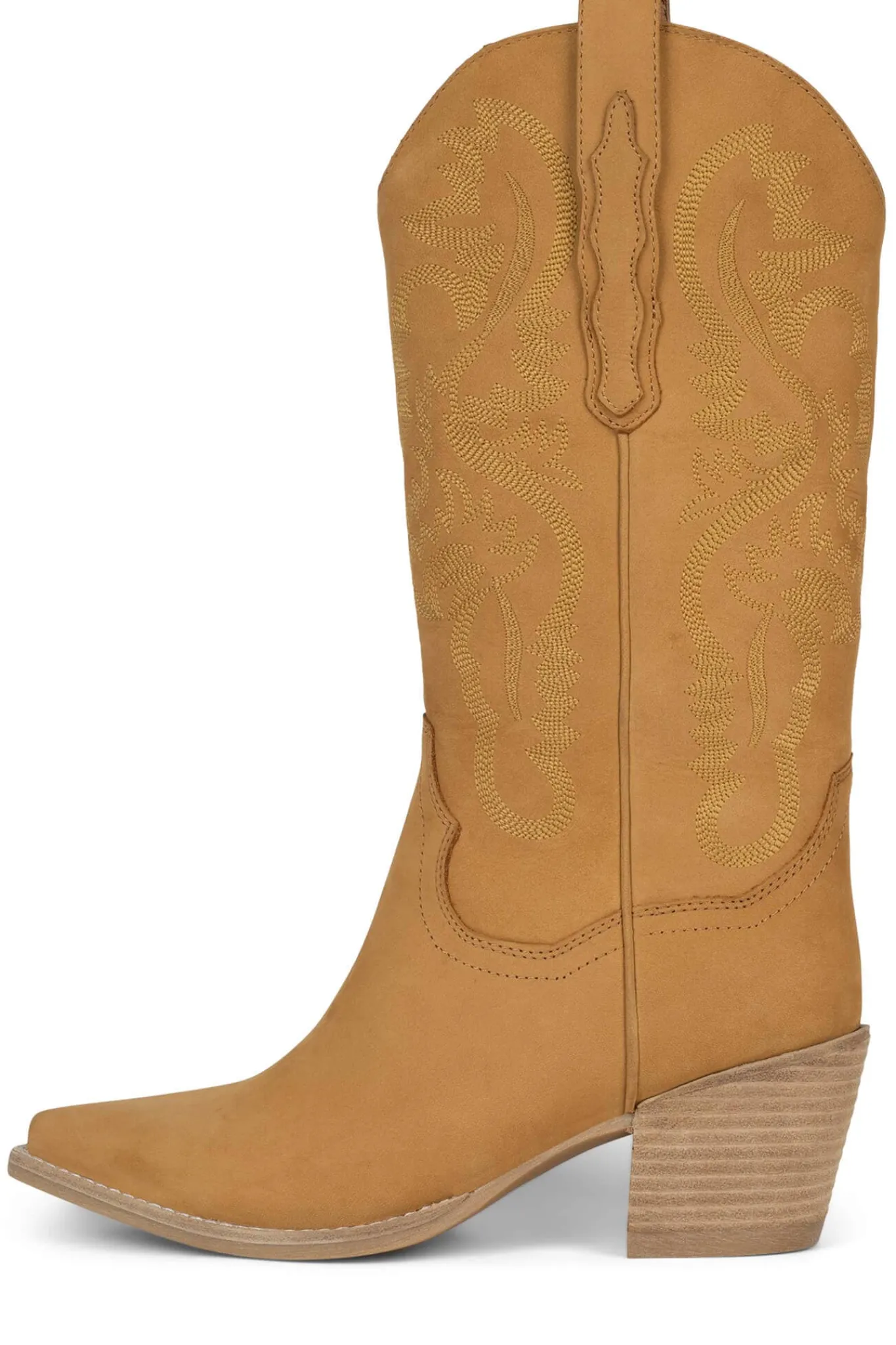Mid-calf western heeled boot.Fits true to sizeMeasurements taken from size 72.5″ heel12″ shaft, 14″ leg openingLeather u…