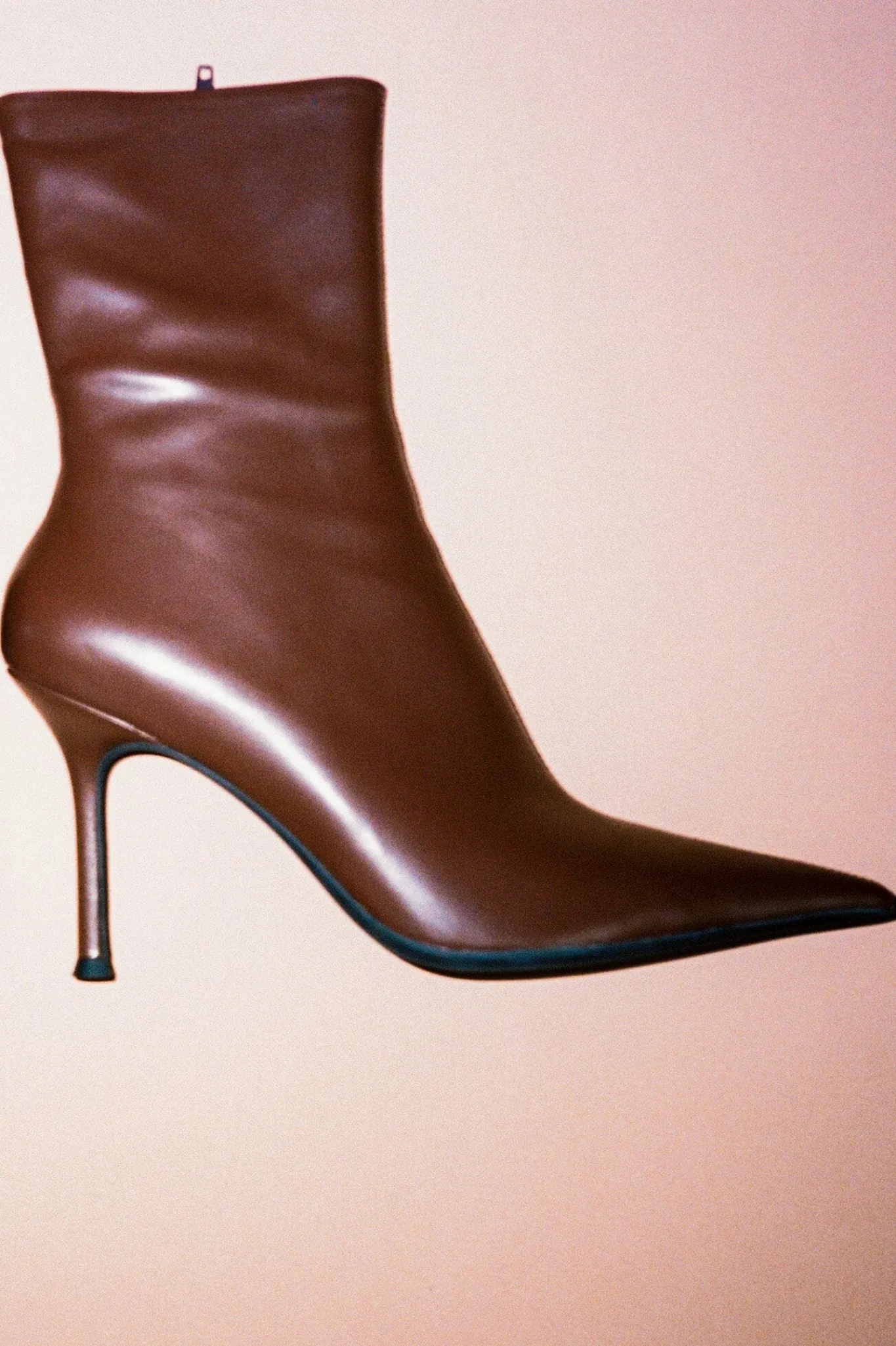 Stretch ankle stiletto bootie with elongated pointed toe.