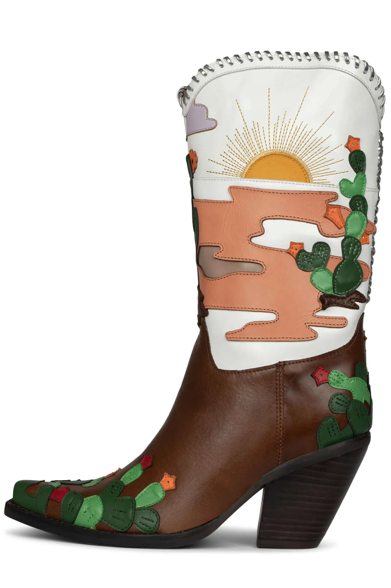 Knee-high western boot with desertscape inlay design
