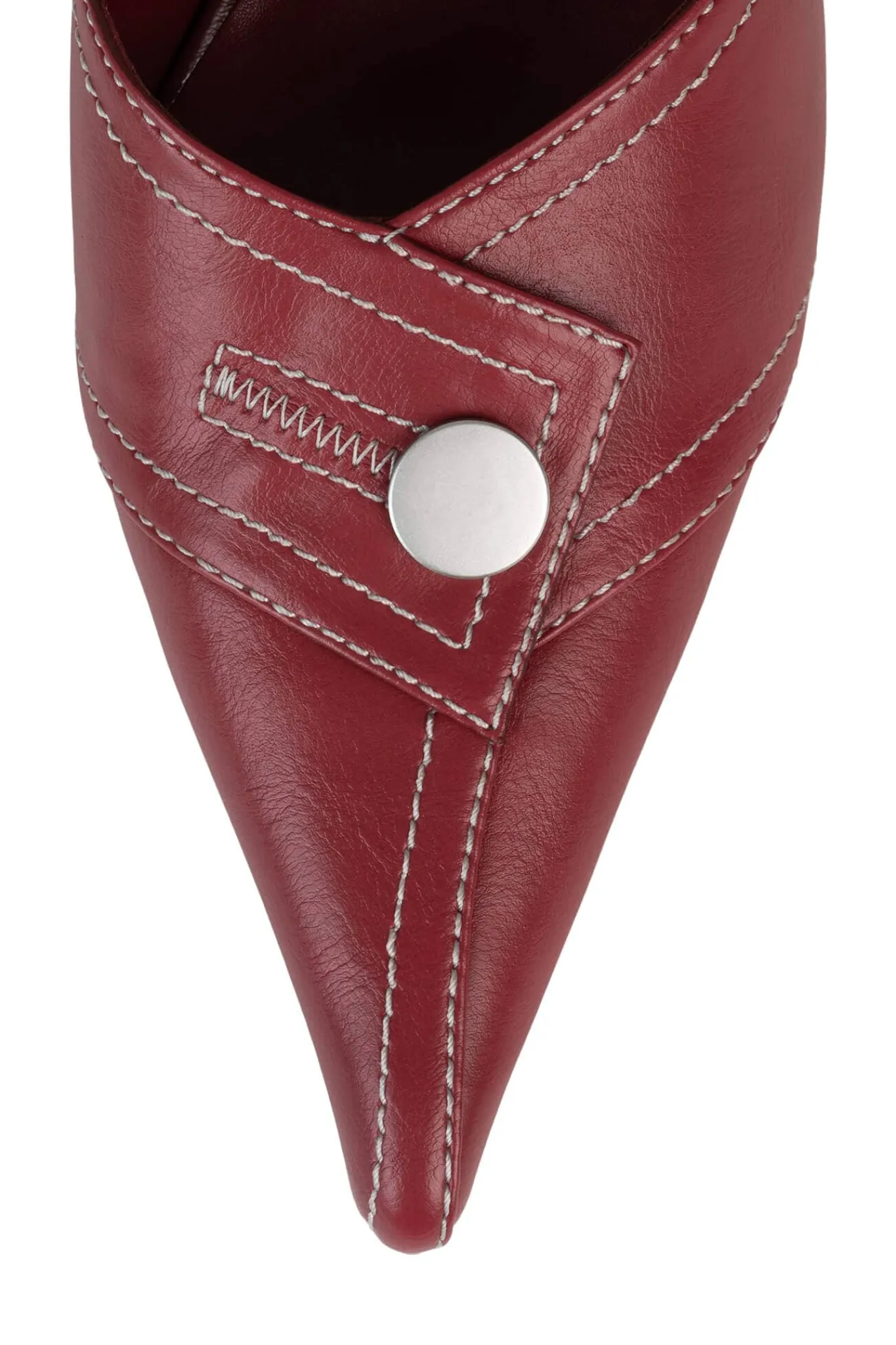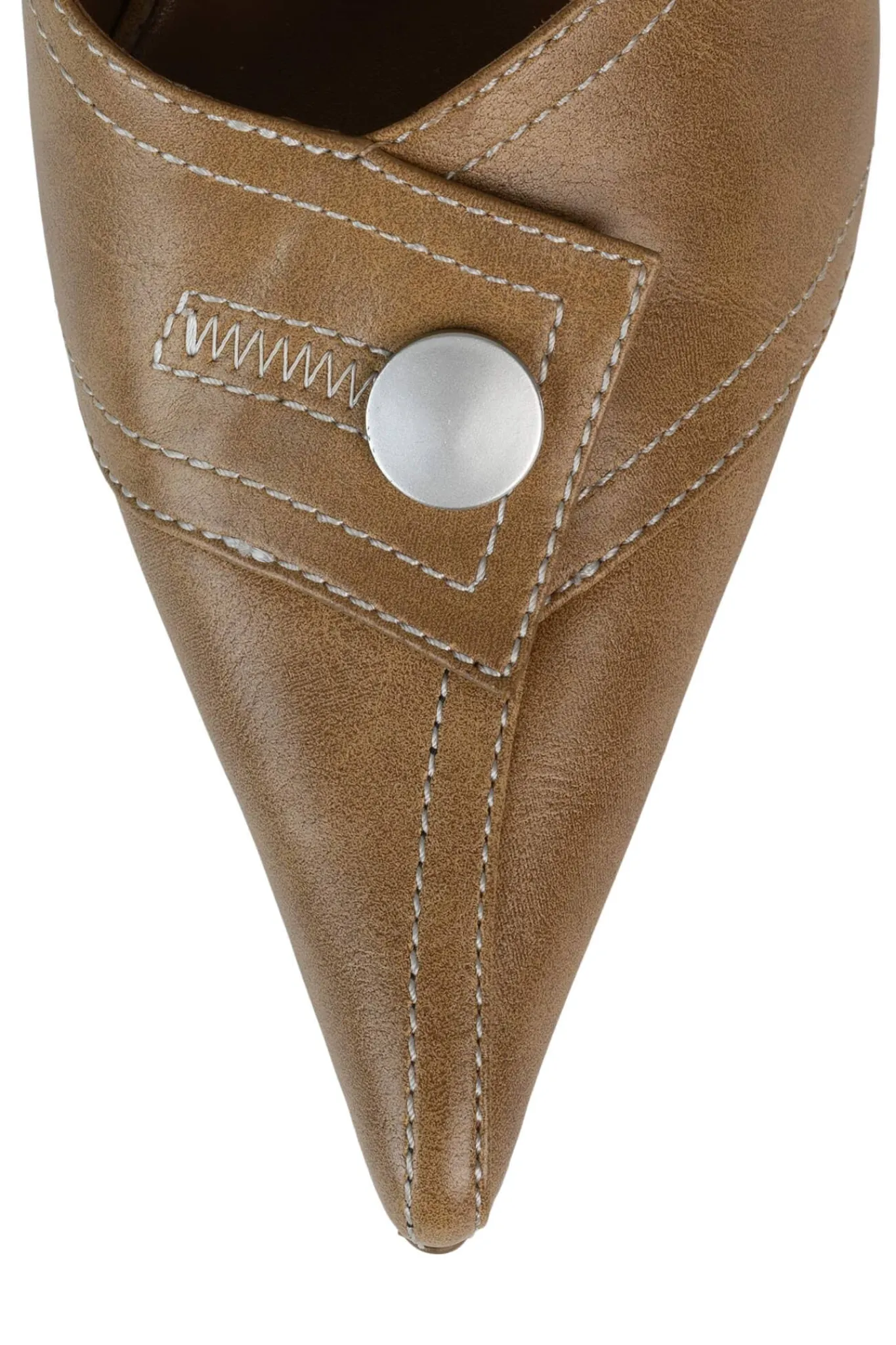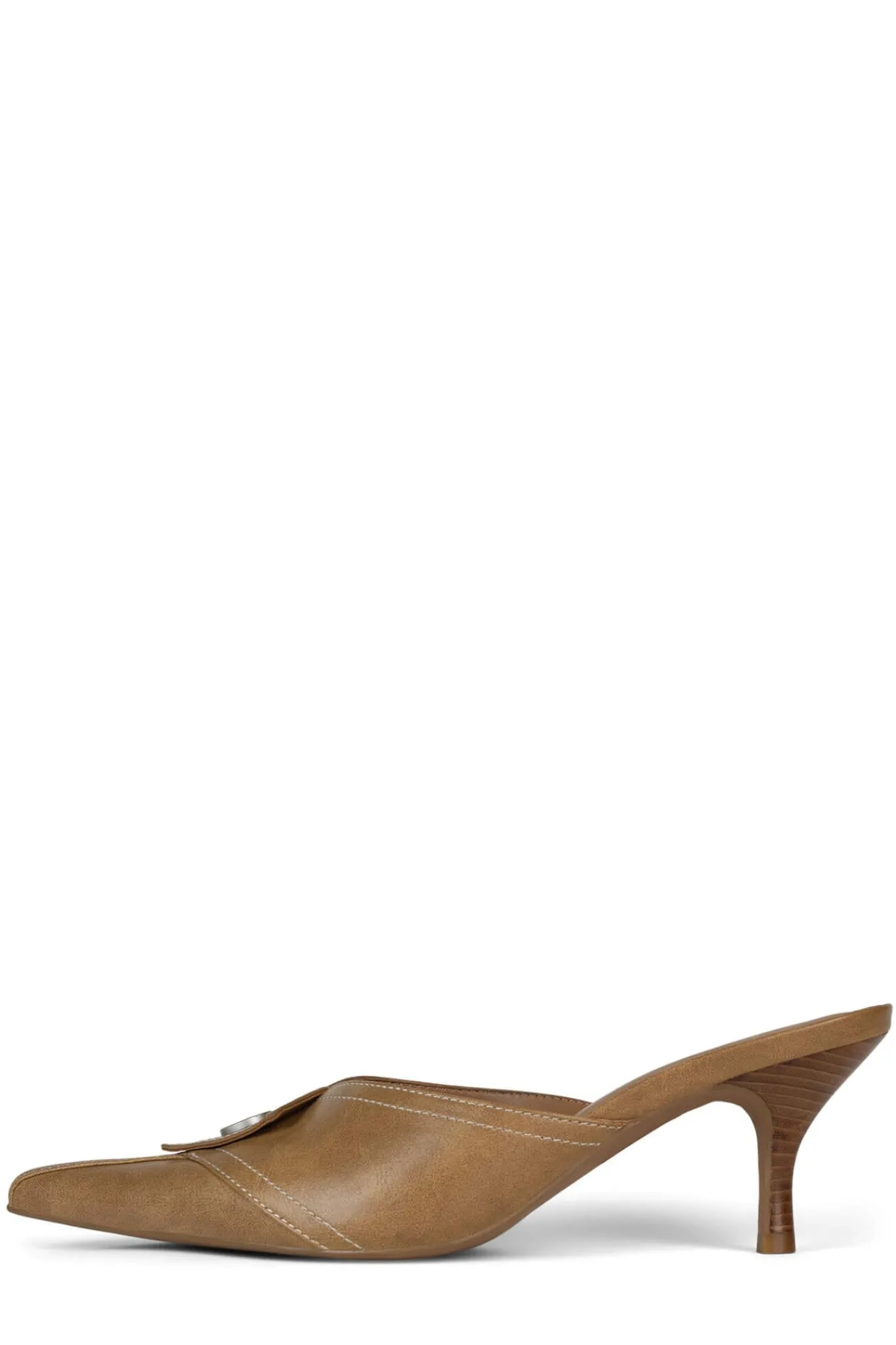 Pointed-toe kitten heel mule with snap button detail