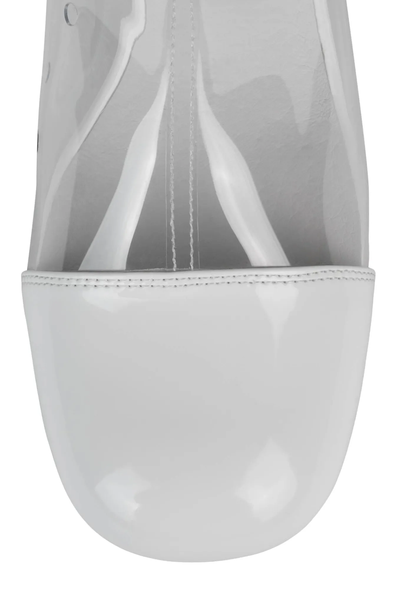 Knee-high 1960s round-toe boot with clear vinyl shaft.