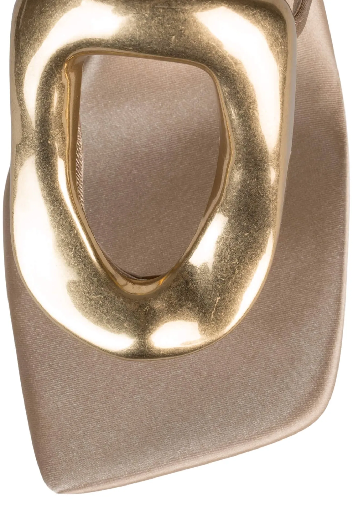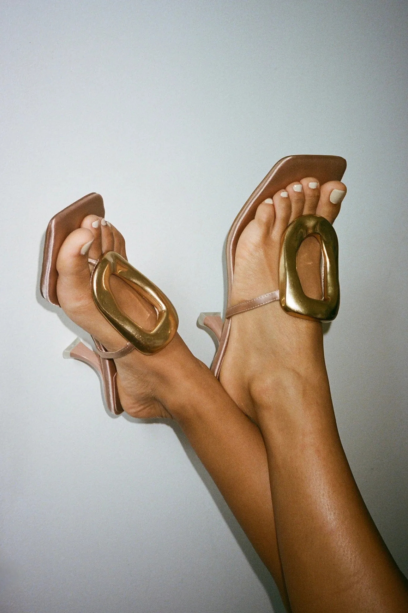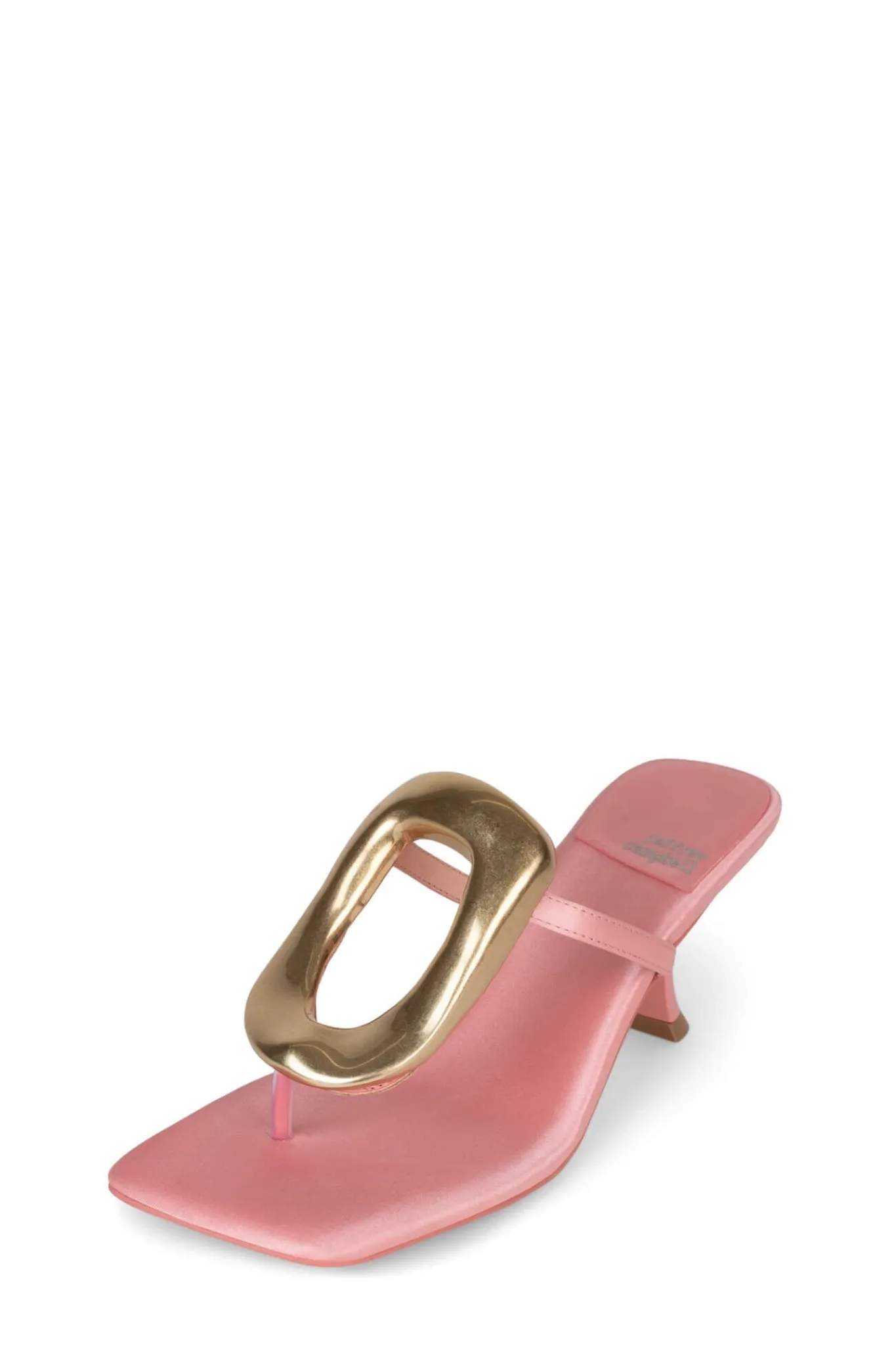 Heeled thong sandal with metal embellishmentFits true to sizeMeasurements taken from a size 7 2.75″ Heel, 0.25″ Platfor…
