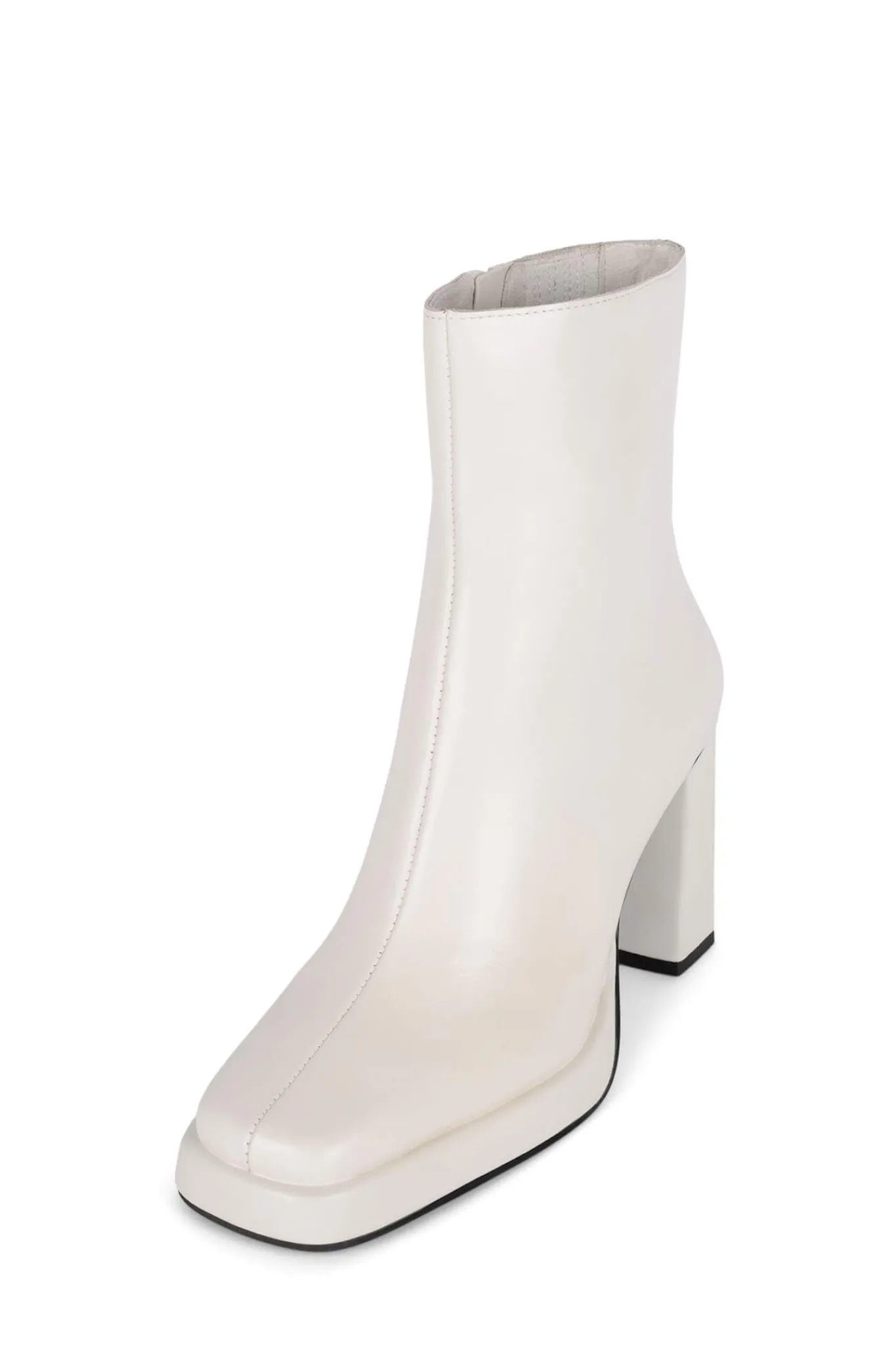 Square toe platform ankle boot with block heel.Fits true to sizeMeasurements taken from a size 73.75″ heel, 0.5″ platfor…