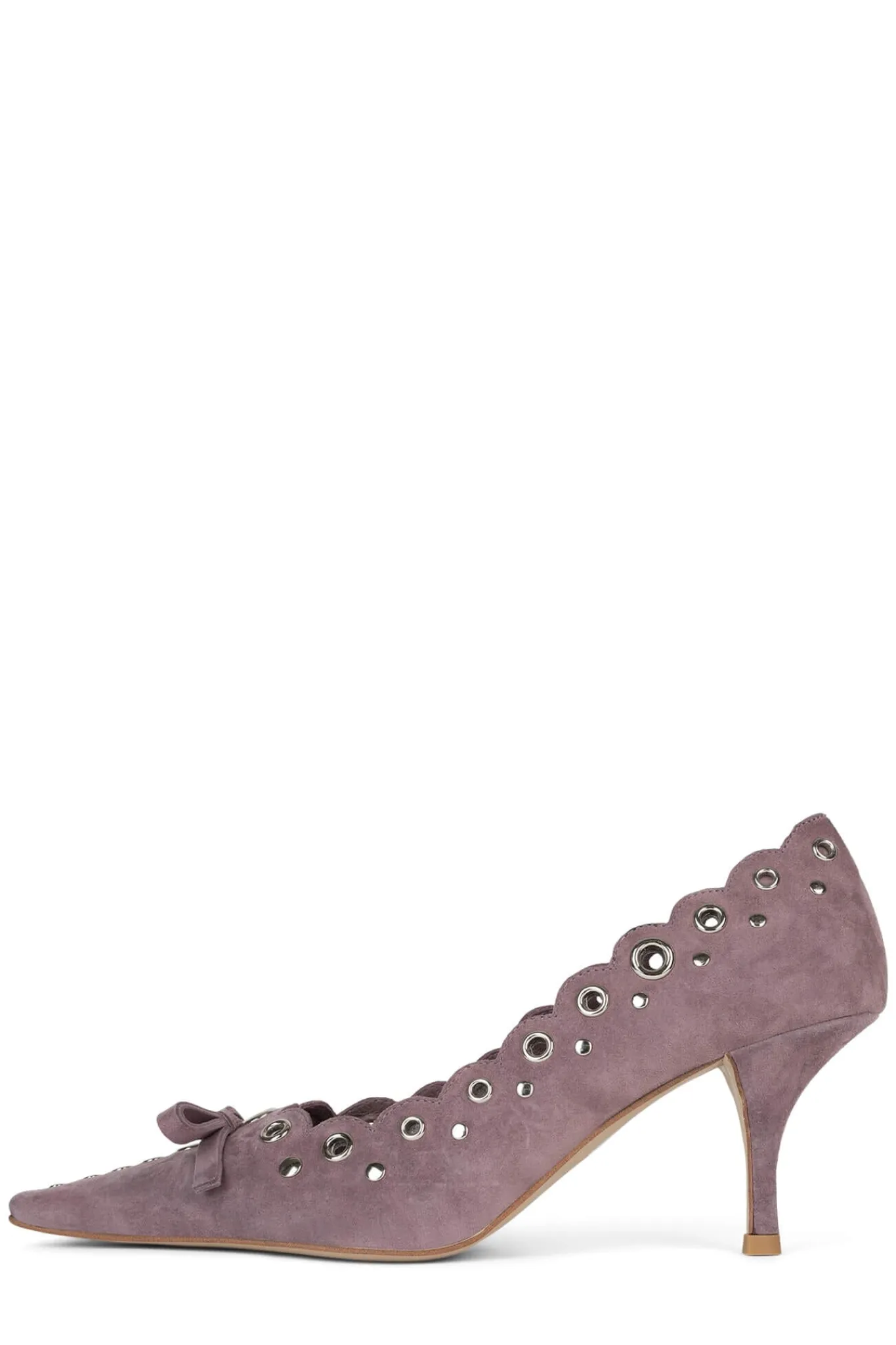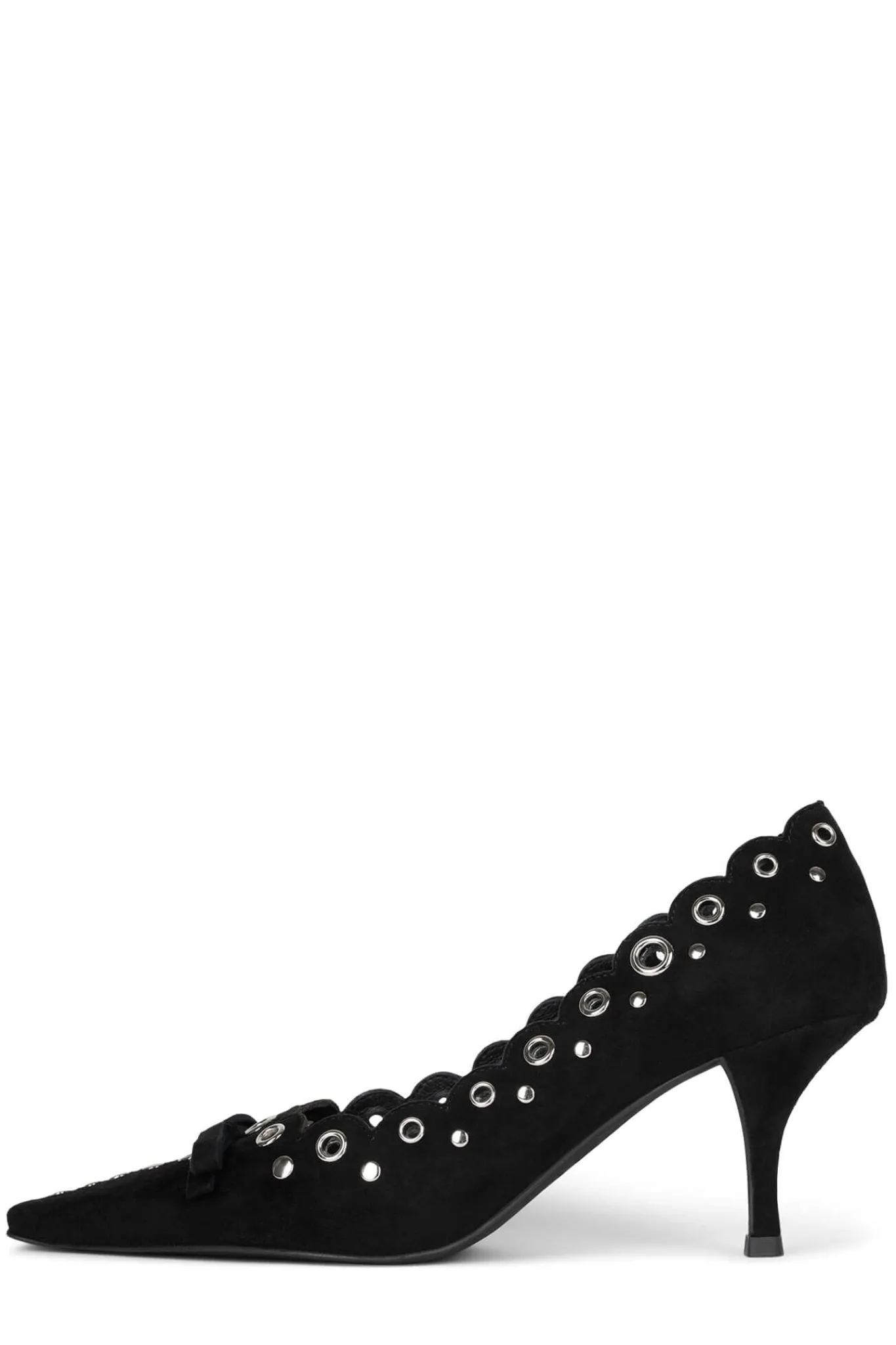 Pointed-toe pump with eyelet and bow-detail