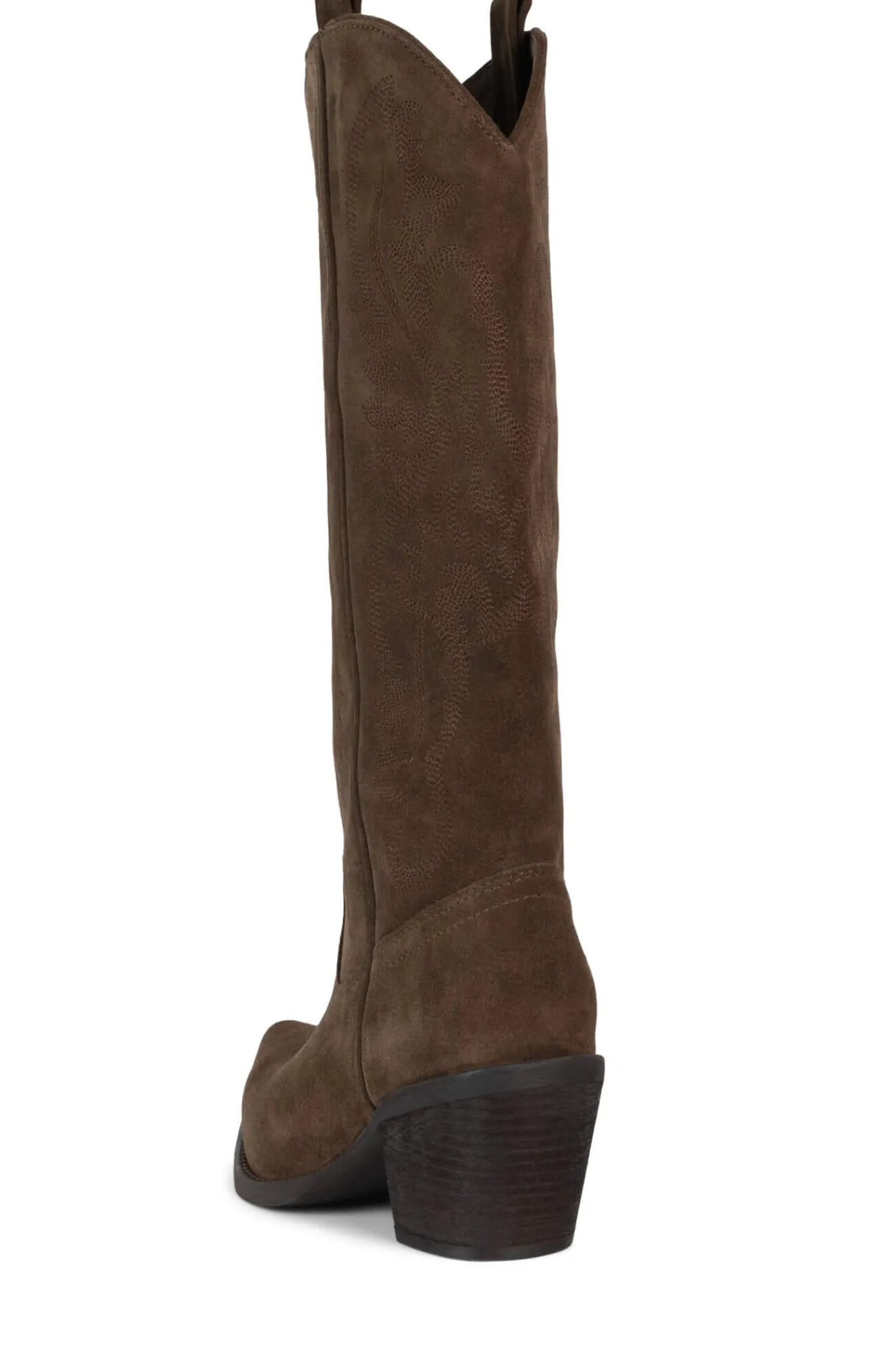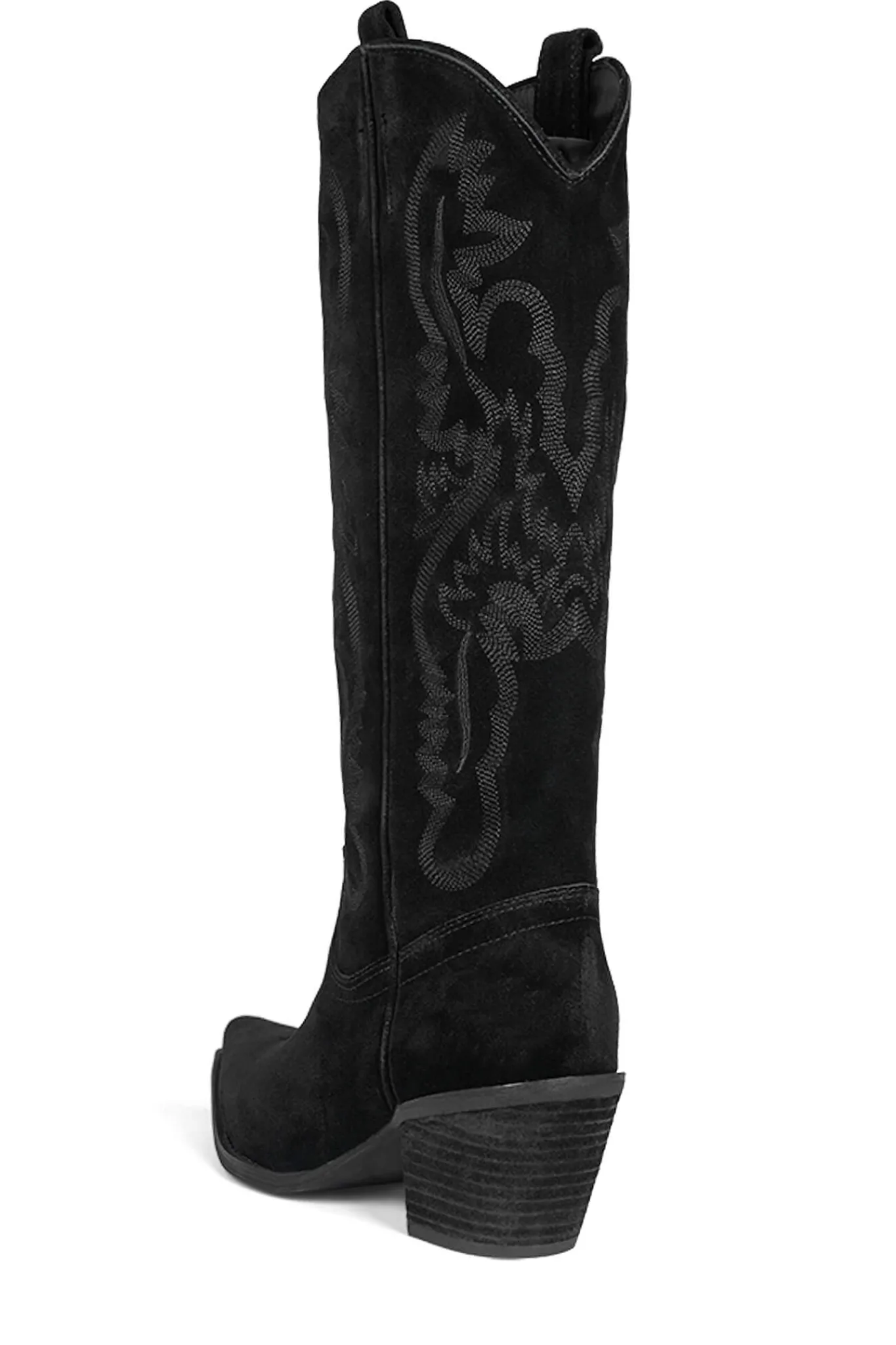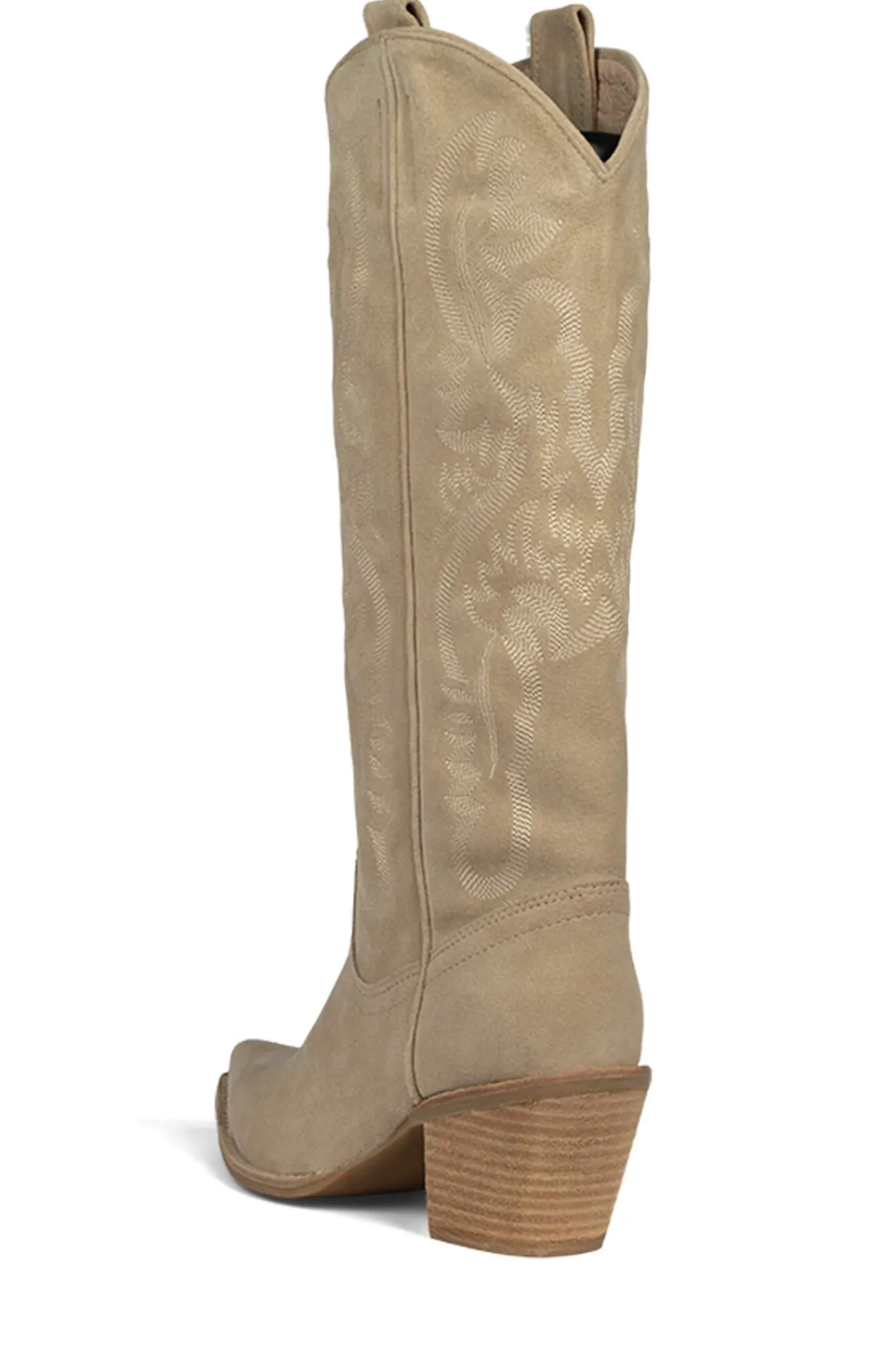 Knee-high western boot with stacked heel