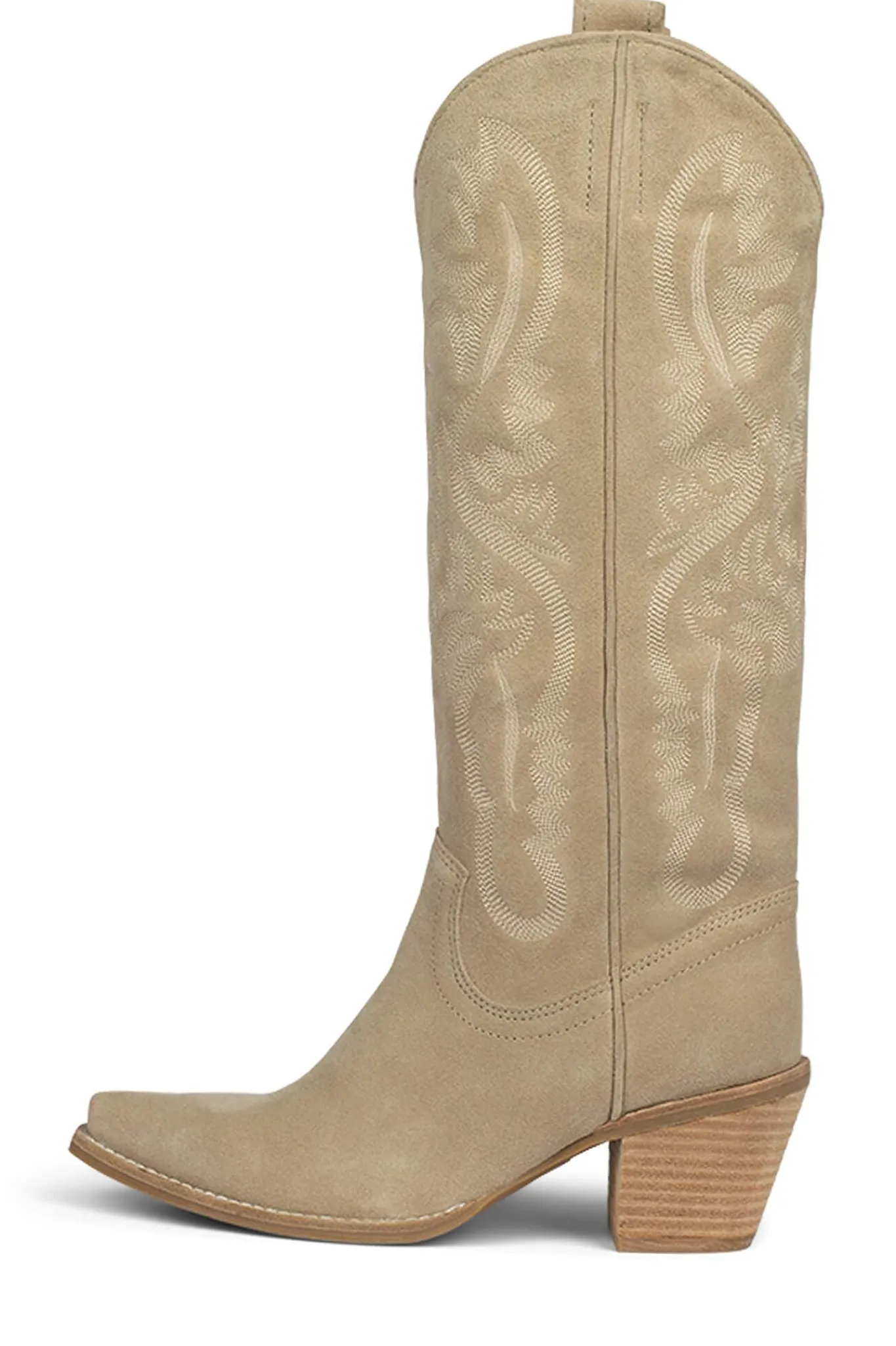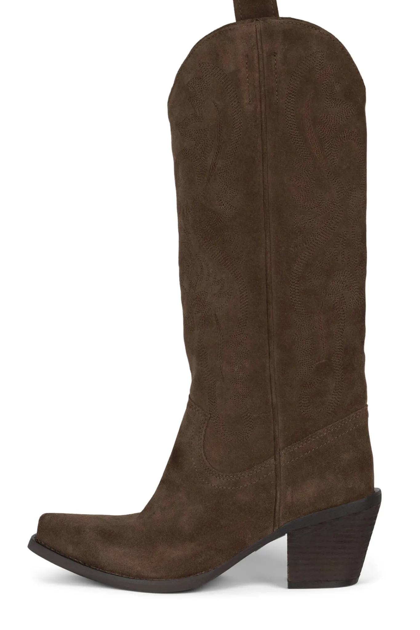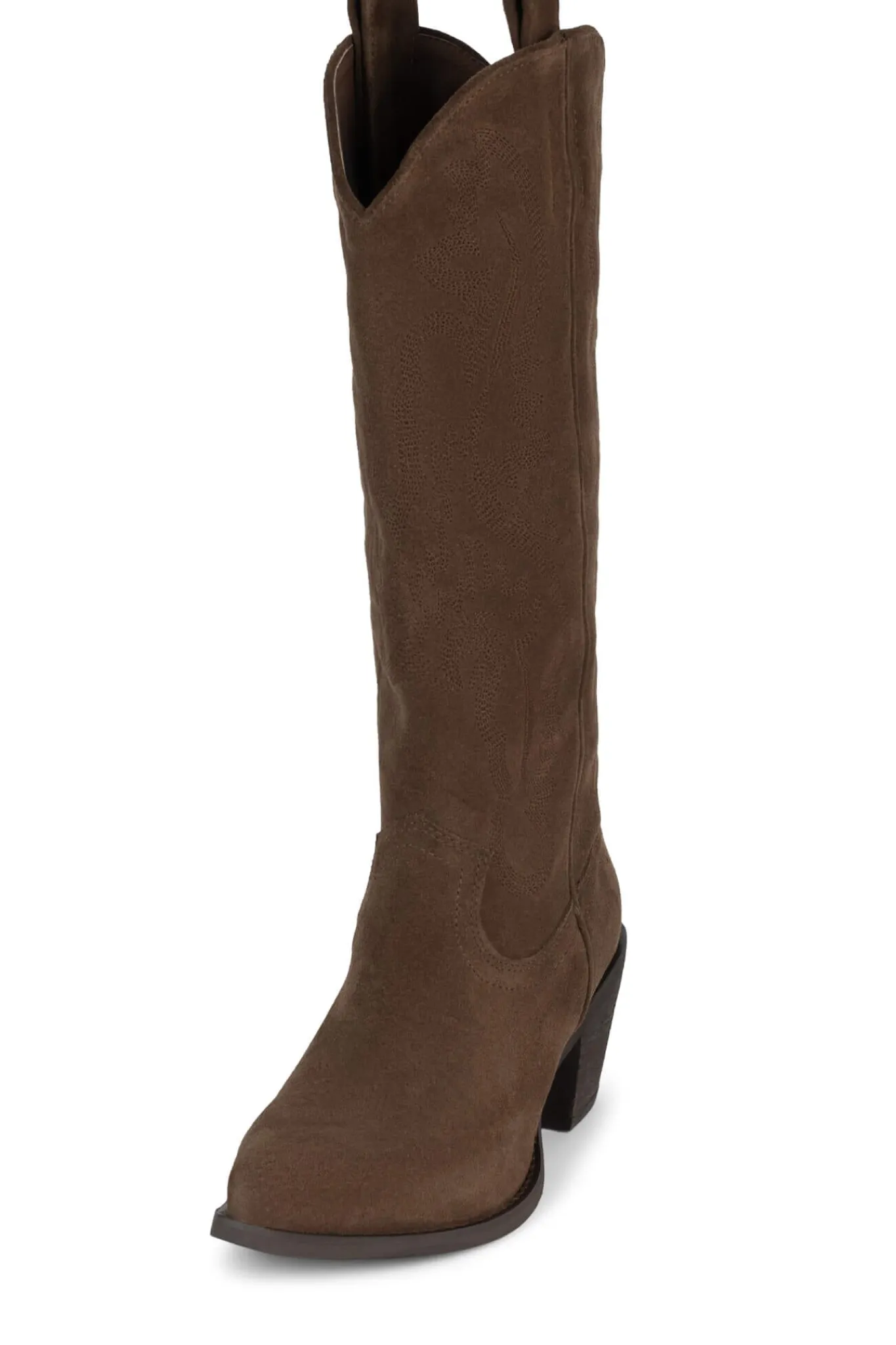 Knee-high western boot with stacked heel