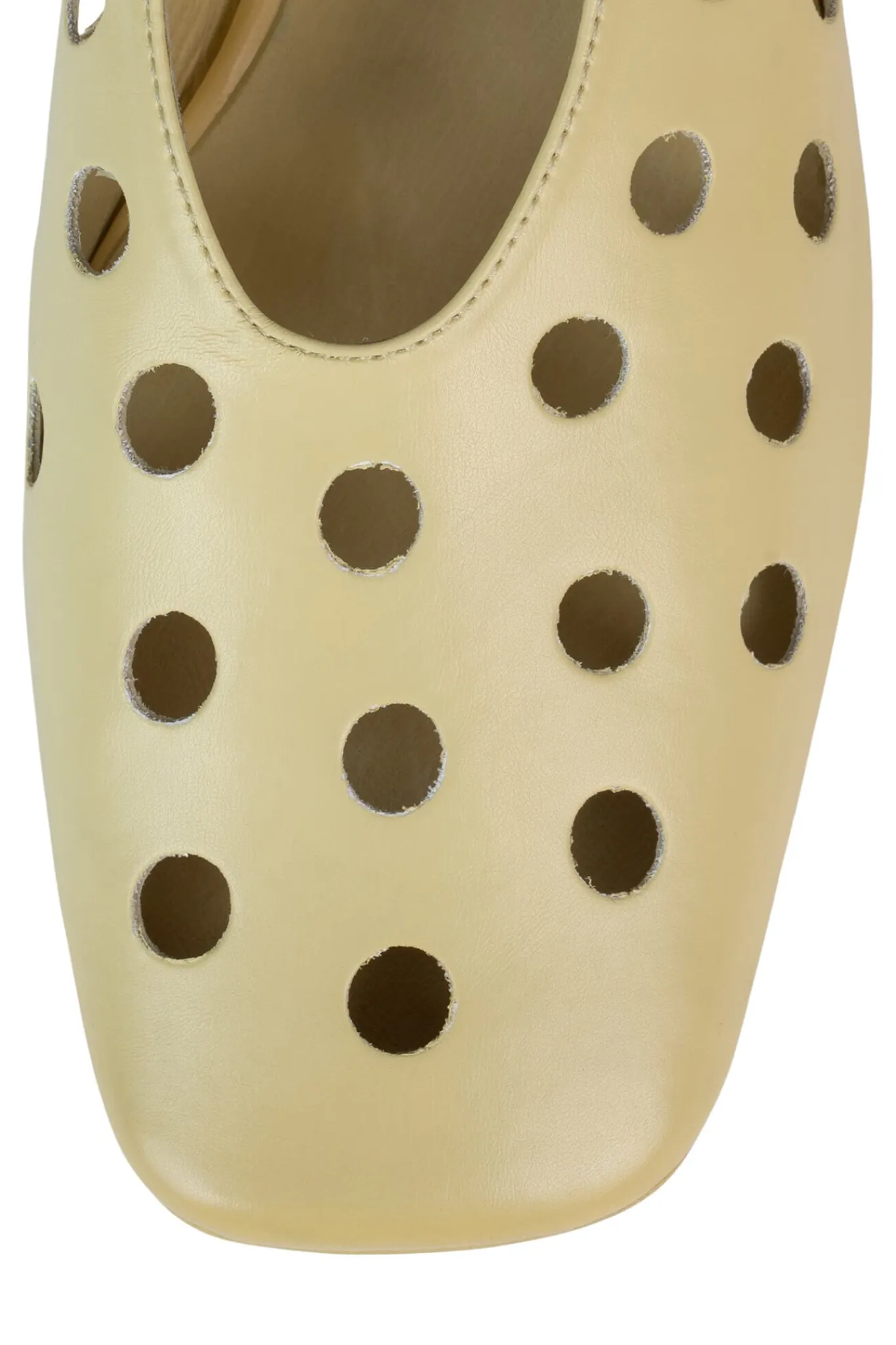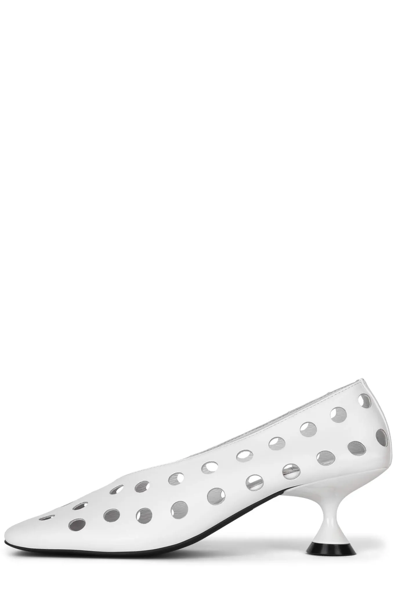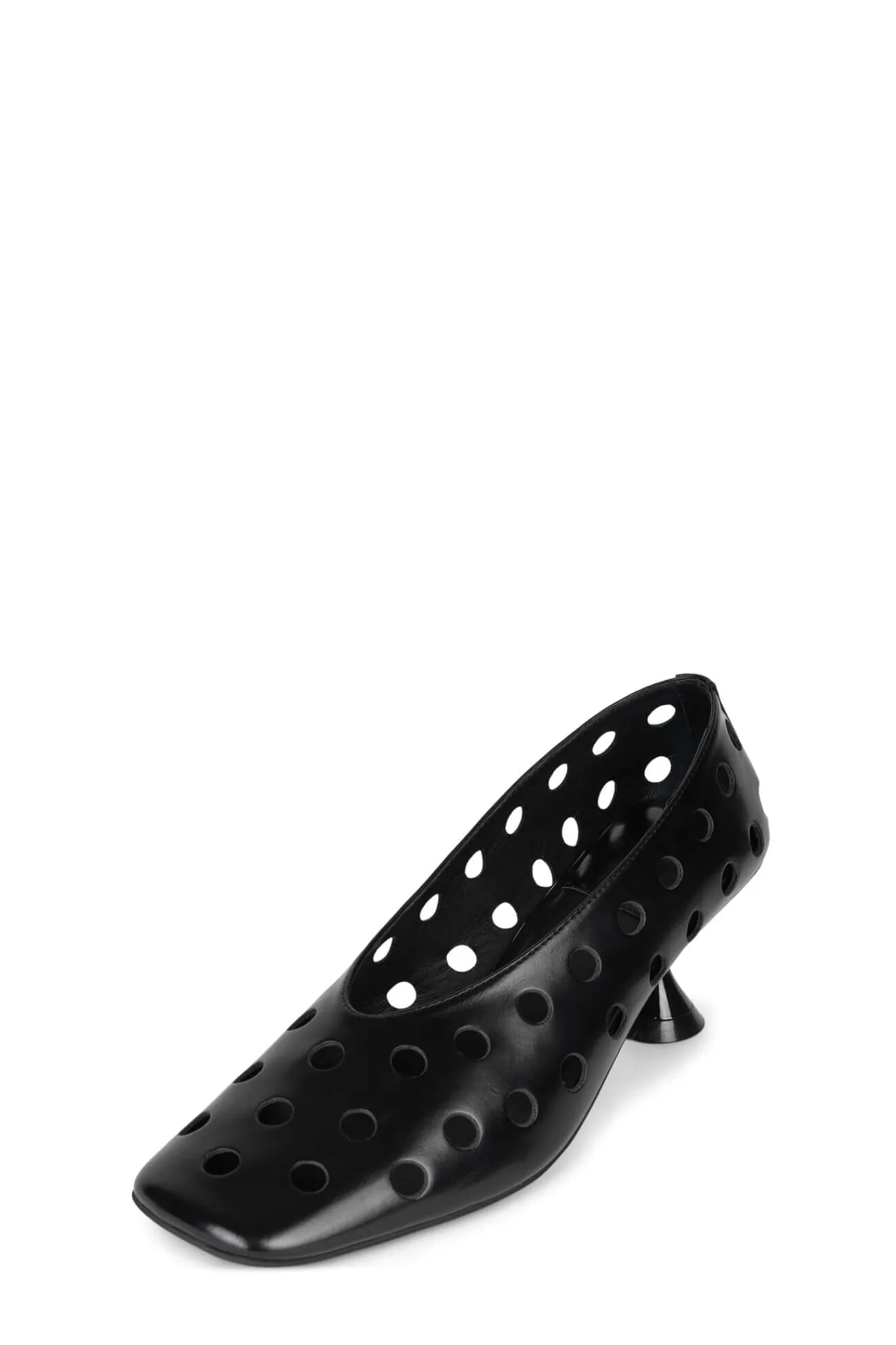 Round-toe mid-heel pump with circle cut-outs.Fits true to sizeMeasurements taken from a size 7 2″ Heel, 0.25″ PlatformS…