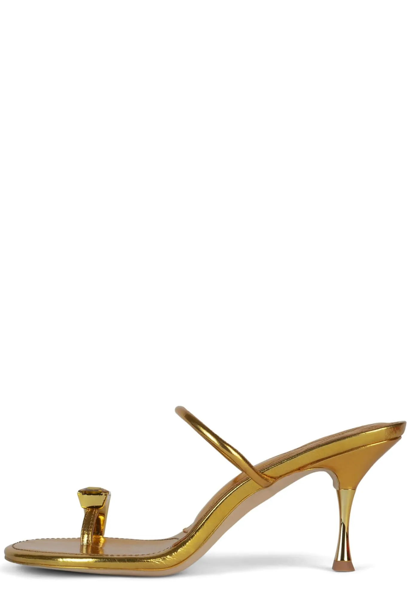 Minimalist heeled sandal with embellished toe-ring
